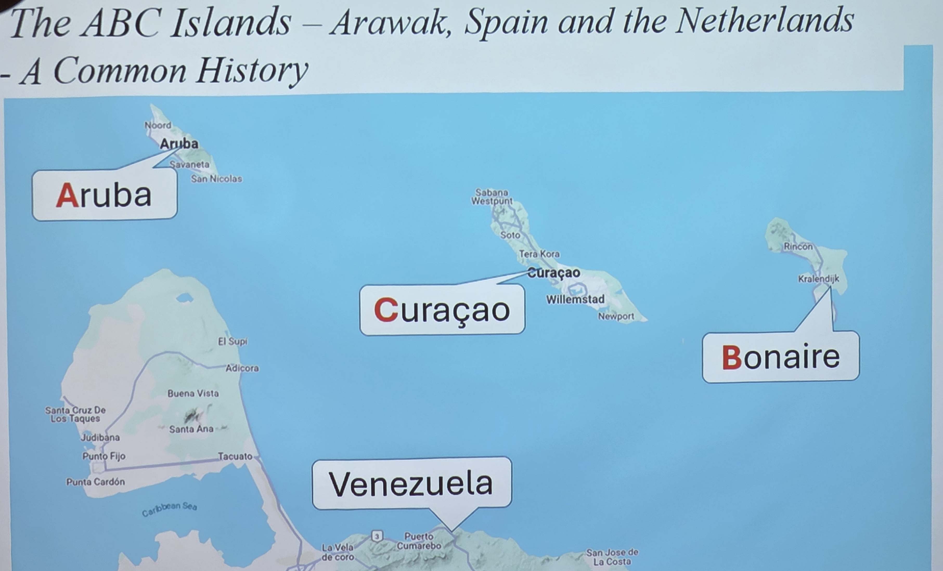 Am 10. Oktober 2010 wurden die Niederländische Antillen aufgelöst. Seitdem ist Aruba neben Curaçao selbständig und wird lediglich in außenpolitischen Angelegenheiten von den Niederlanden vertreten. Bonaire, Saint Maarten, Sint Eustatius und Saba sind unverändert Gemeinden der Niederlande. Die Amtssprache Arubas ist Niederländisch; Verkehrssprache, auch mit Ämtern, ist zusätzlich Papiamento, die auf den ABC-Inseln verbreitete Kreolsprache.