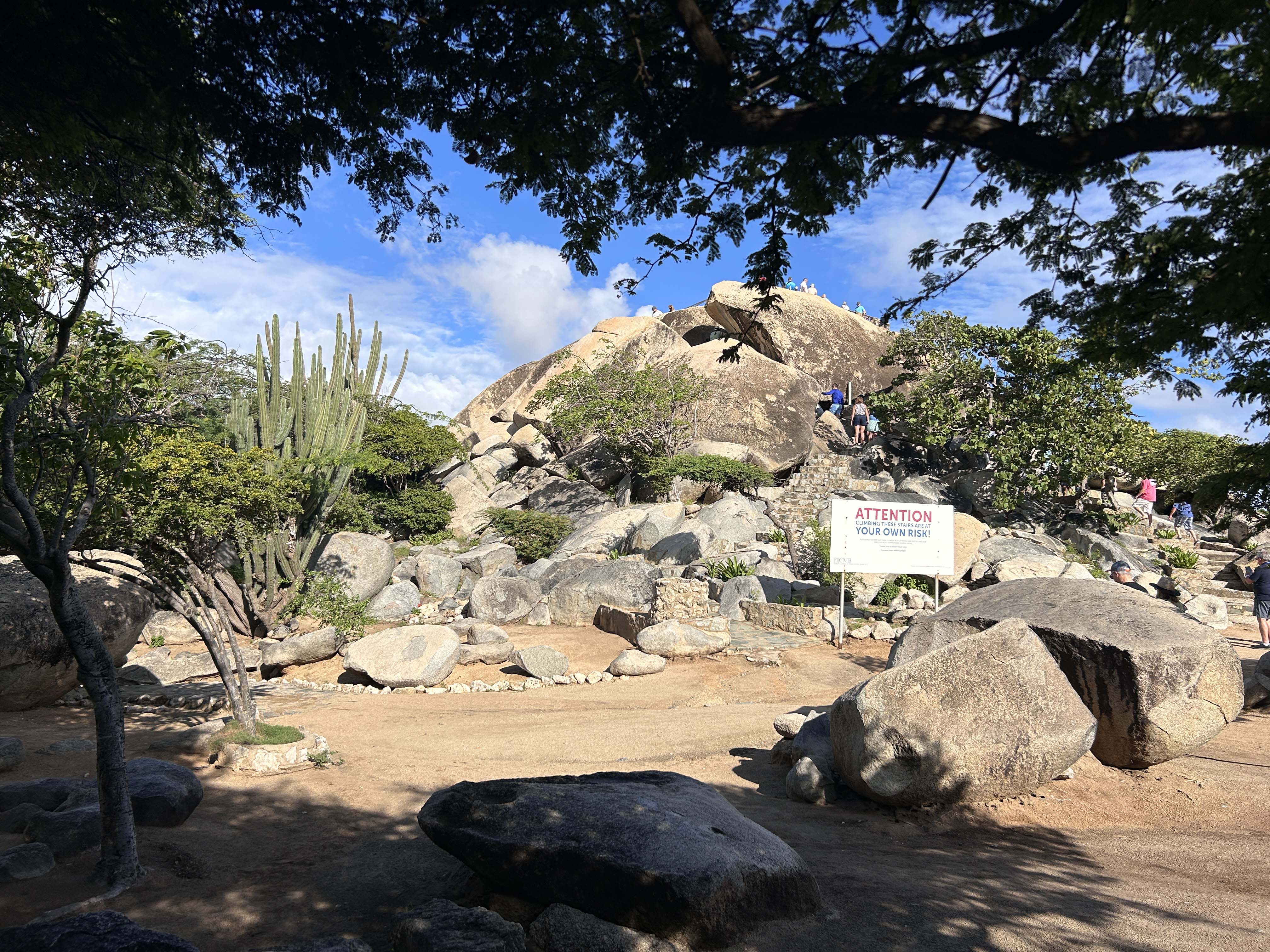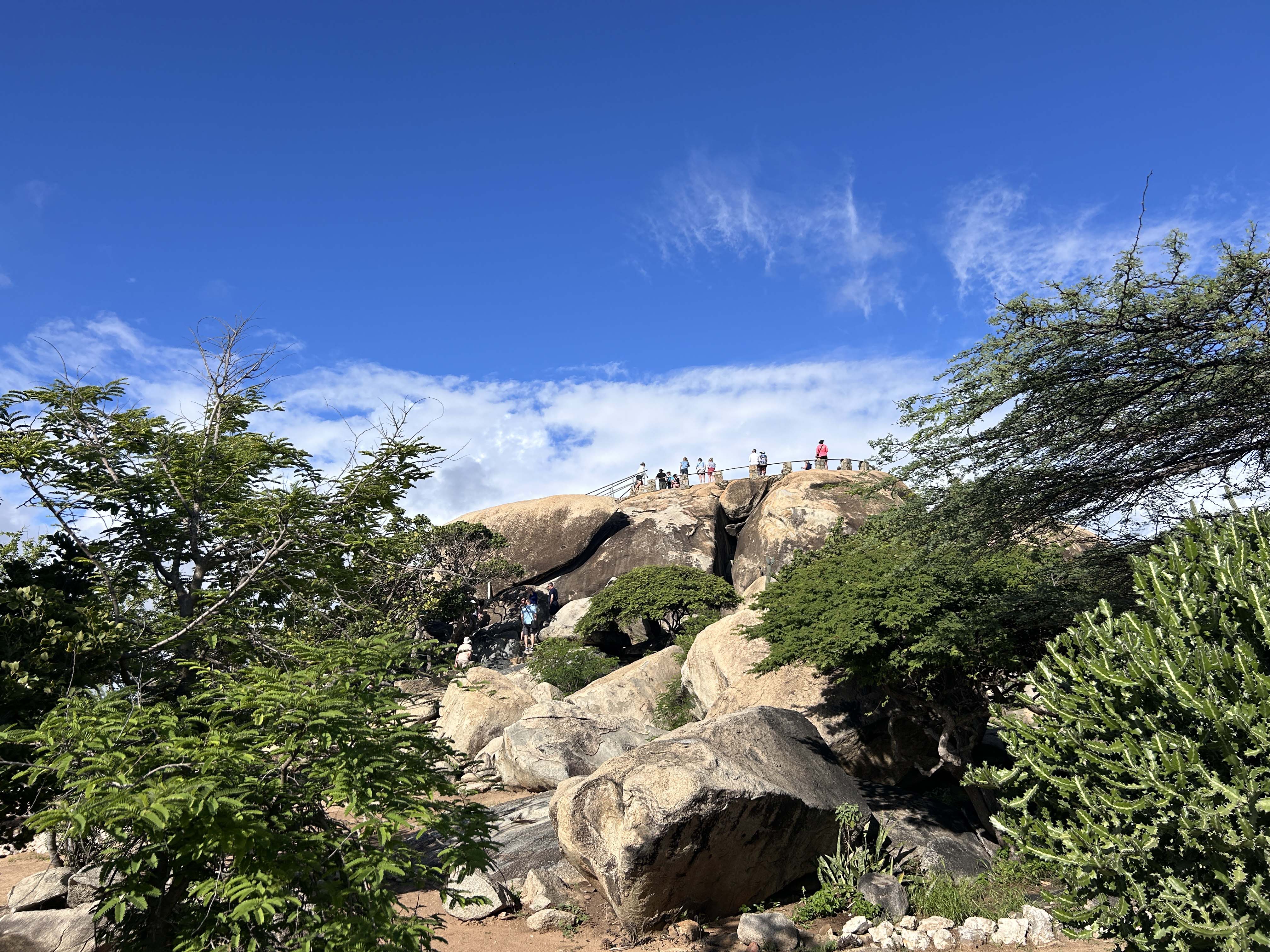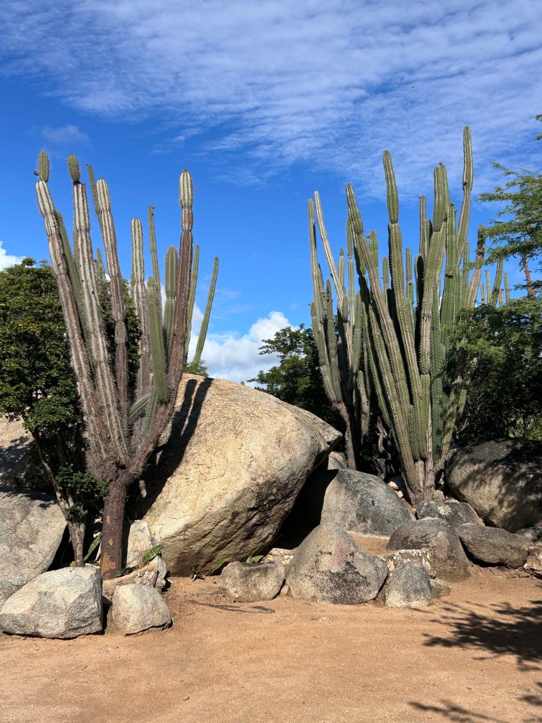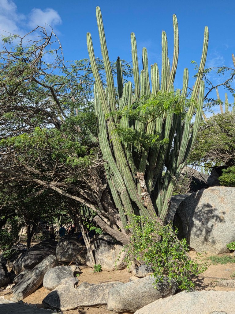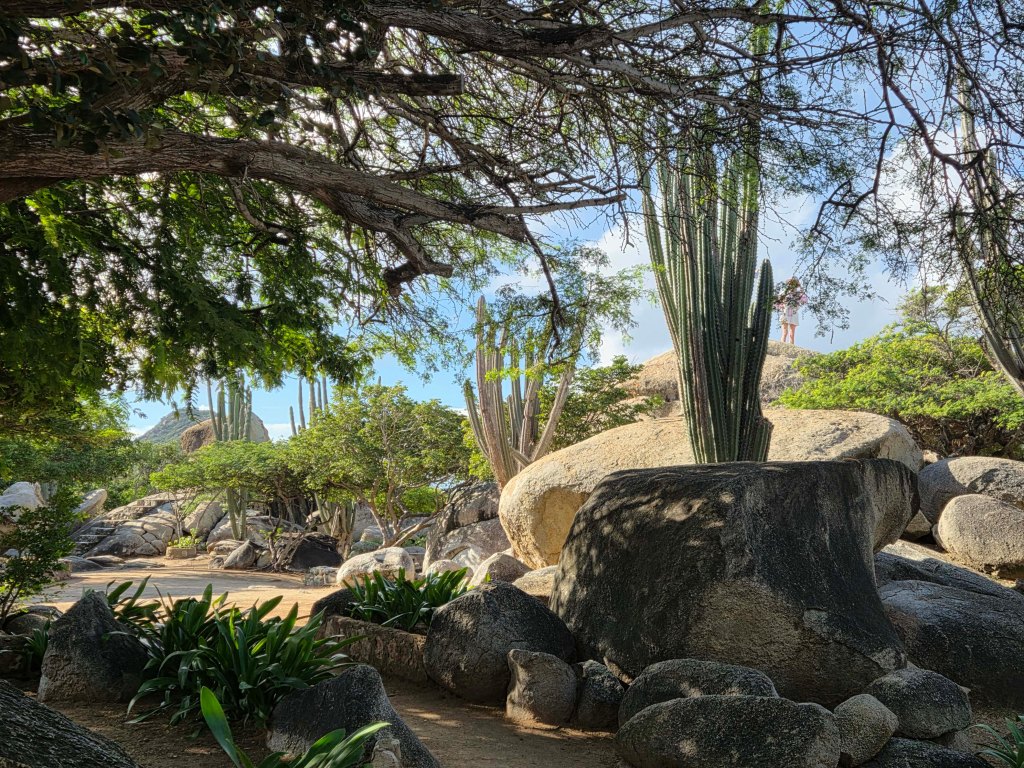 Omnipräsent sind die runden, aus sehr altem Granitstein gebildeten Felsformationen, die wir schon aus dem Tayrona Nationalpark kennen. Der einzige “Berg” der Insel, der Hooiberg, ist 165 m hoch.