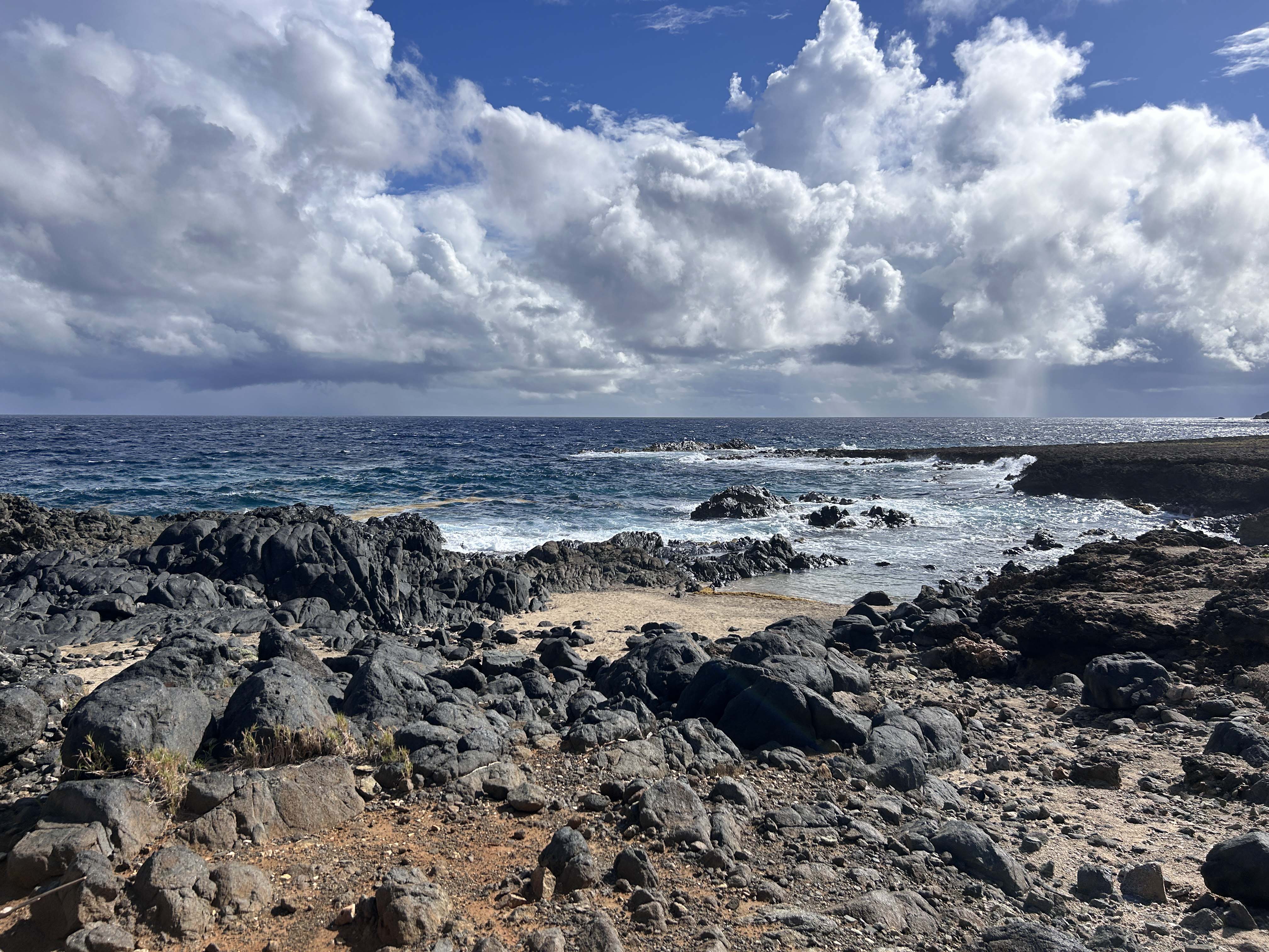 Wir gehen in Oranjestad von Bord und unternehmen eine kleine Inseltour. Die Insel ist nicht tropisch und ziemlich karg. Regen ist äußerst selten, aber heute gibt es tatsächlich ein paar kurze Schauern.