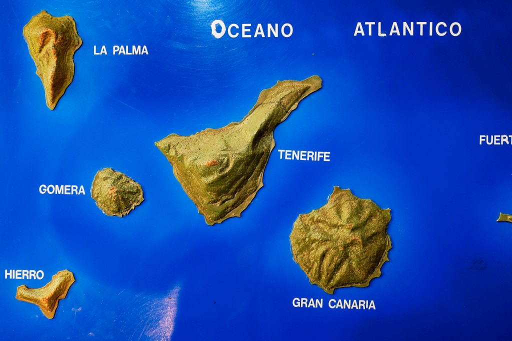 Die Kanaren vor der Nordwestküste Afrikas bestehen aus 7 größeren und 6 kleineren Inseln und bilden eine eigene spanische Region mit der Hauptstadt Las Palmas auf Gran Canaria. Bewohnt sind Teneriffa, Gran Canaria, Gomera, La Palma, Hierro, Fuerteventura, Lanzarote und Graciosa.