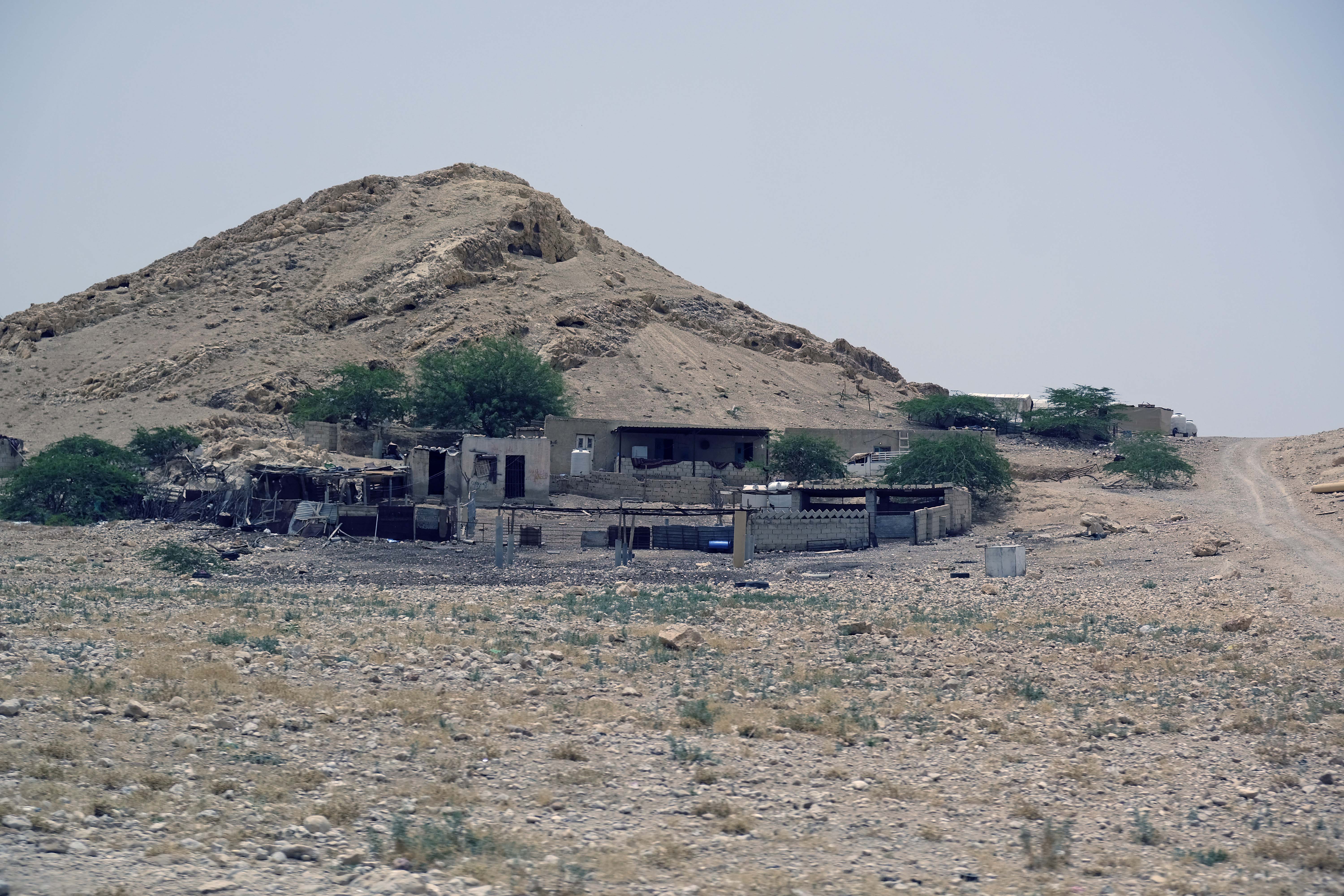 Wir verlassen die Jordanebene und fahren in die Berge. Die Gegend ist sehr trocken, aber es gibt immer wieder kleine Oasen, Häuser oder Buduinenzelte.