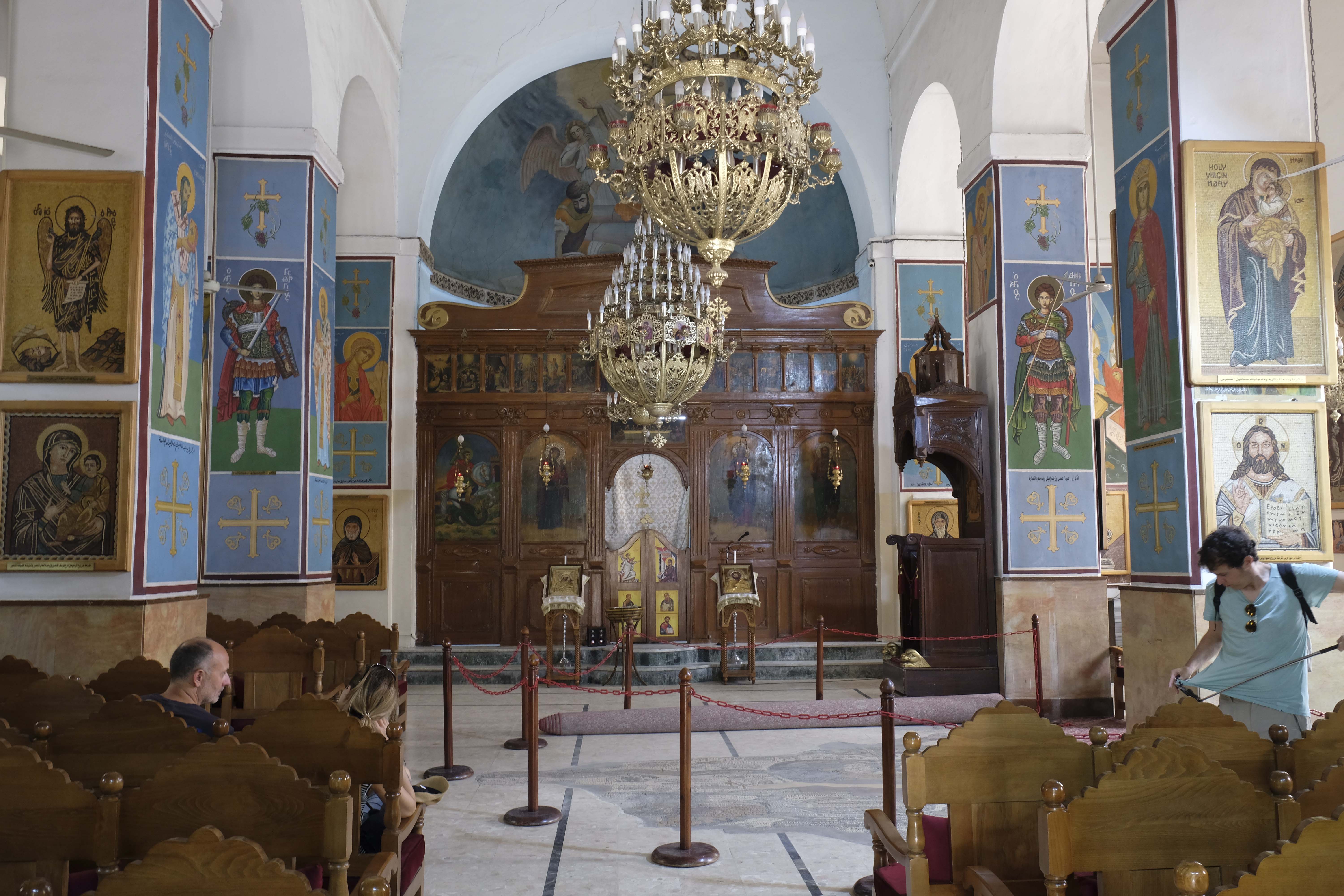 Auf dem Rückweg besichtigen wir noch kurz eine Orthodoxe Kirche. Im Inneren arbeitet eine Klimaanlage auf Hochtouren und schafft immerhin 27 Grad. Wir konnten uns kaum vorstellen, dass 27 Grad so kalt sein können, denn draußen haben wir über 40 Grad.