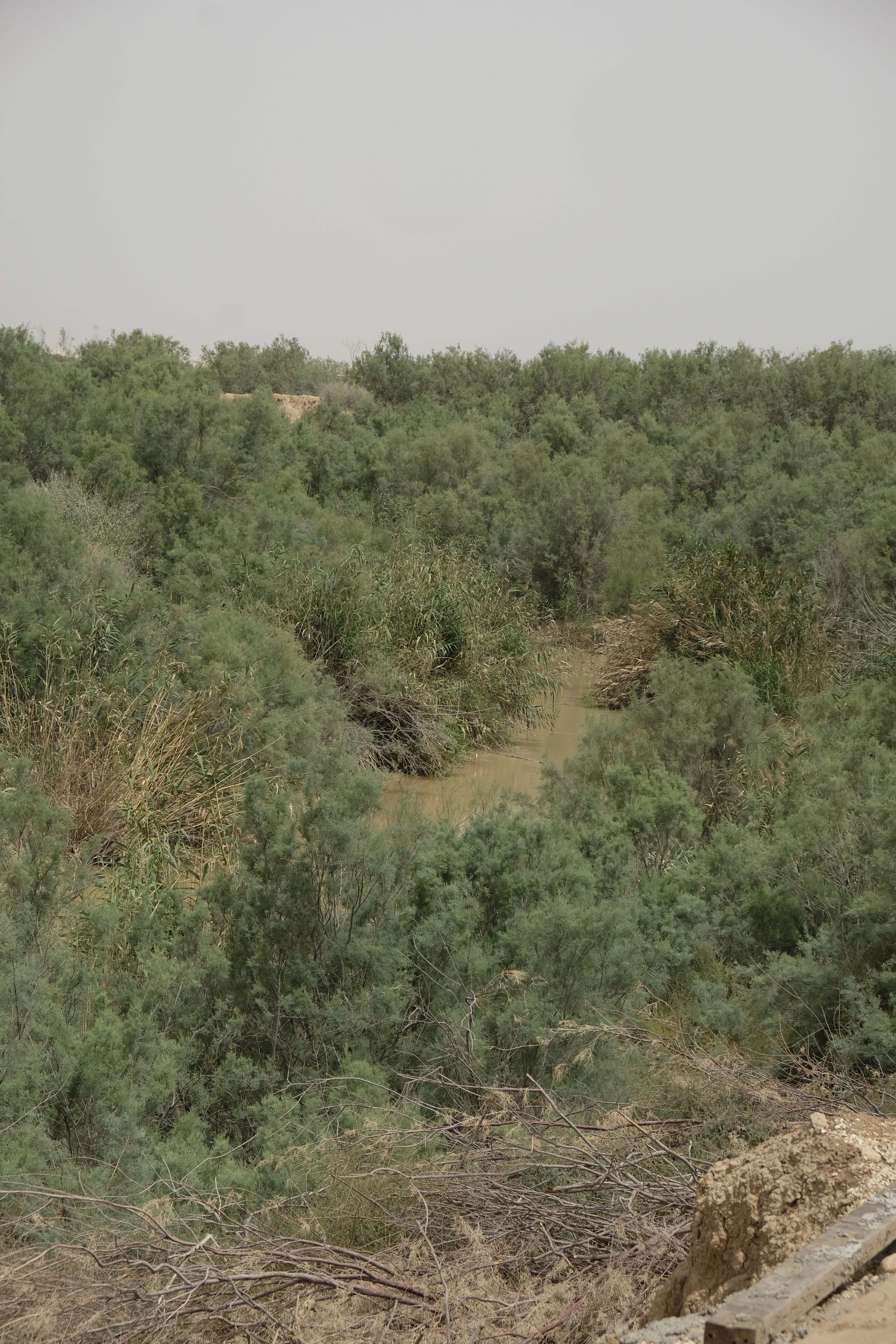 Der Jordan bildet hier die Grenze zu Israel nahe Jericho. Wir haben Glück und können auf der isrealischen Seite eine Taufzeremonie beobachten.