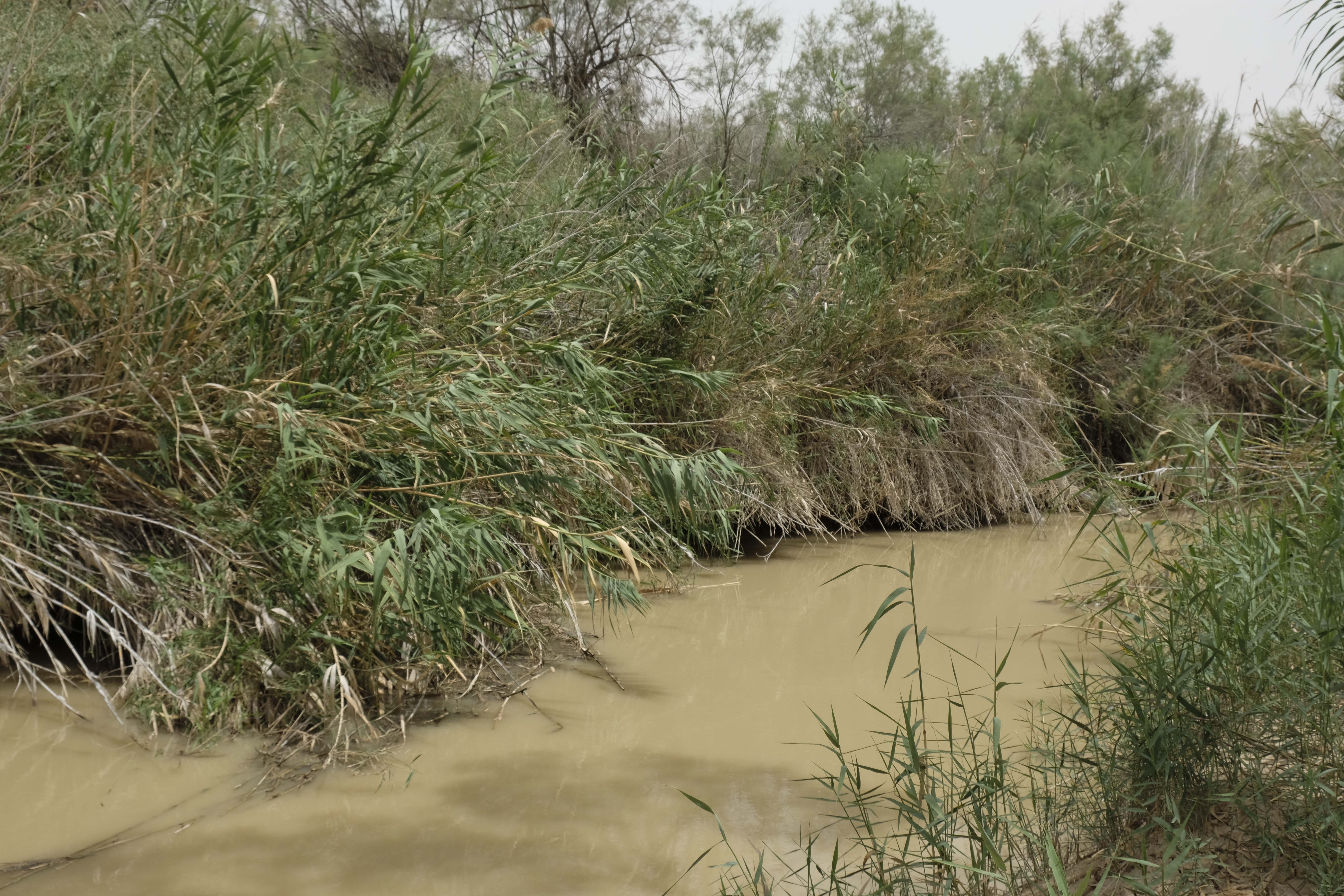 Der Jordan ist hier nur noch ein kleiner Bach. Gründe hierfür sind die Wasserentnahmen im Libanon und in Syrien und natürlich die zunehmende Trockenheit.