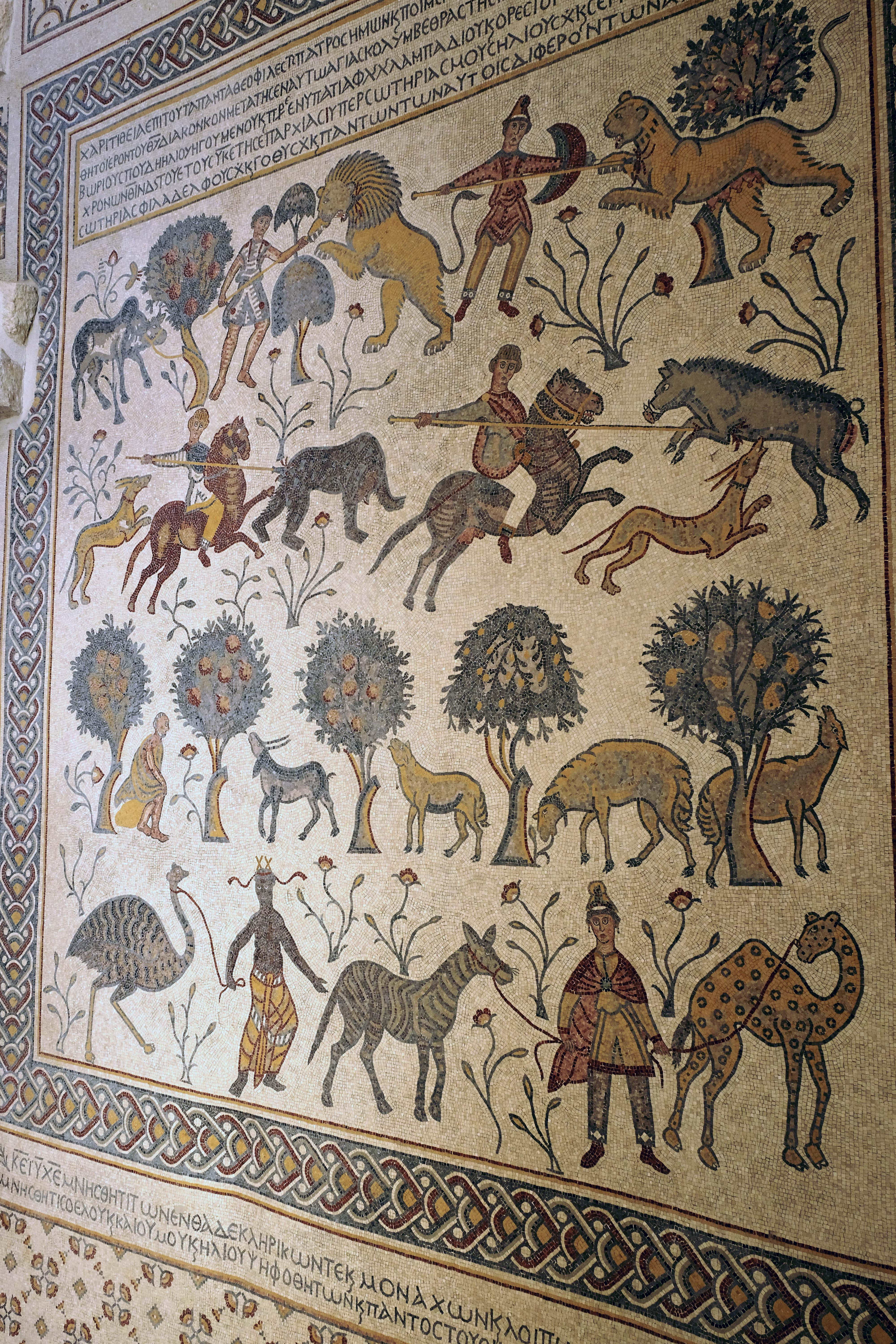 In der gesamten Umgebung vom Mount Nebo findet man viele Kirchen aus der byzantinischen Zeit. Man hat viele gut erhaltene Mosaike gefunden, eines sogar mit Tier- und Menschendarstellung. Dieses Mosaik hat man mit einem neuen überdeckt, vielleicht um es zu schützen oder weil die Darstellung von Tier und Mensch nicht mehr erlaubt/gewollt war. Die beiden Mosaike sind heute in der Franziskaner-Klosterkirche ausgestellt.