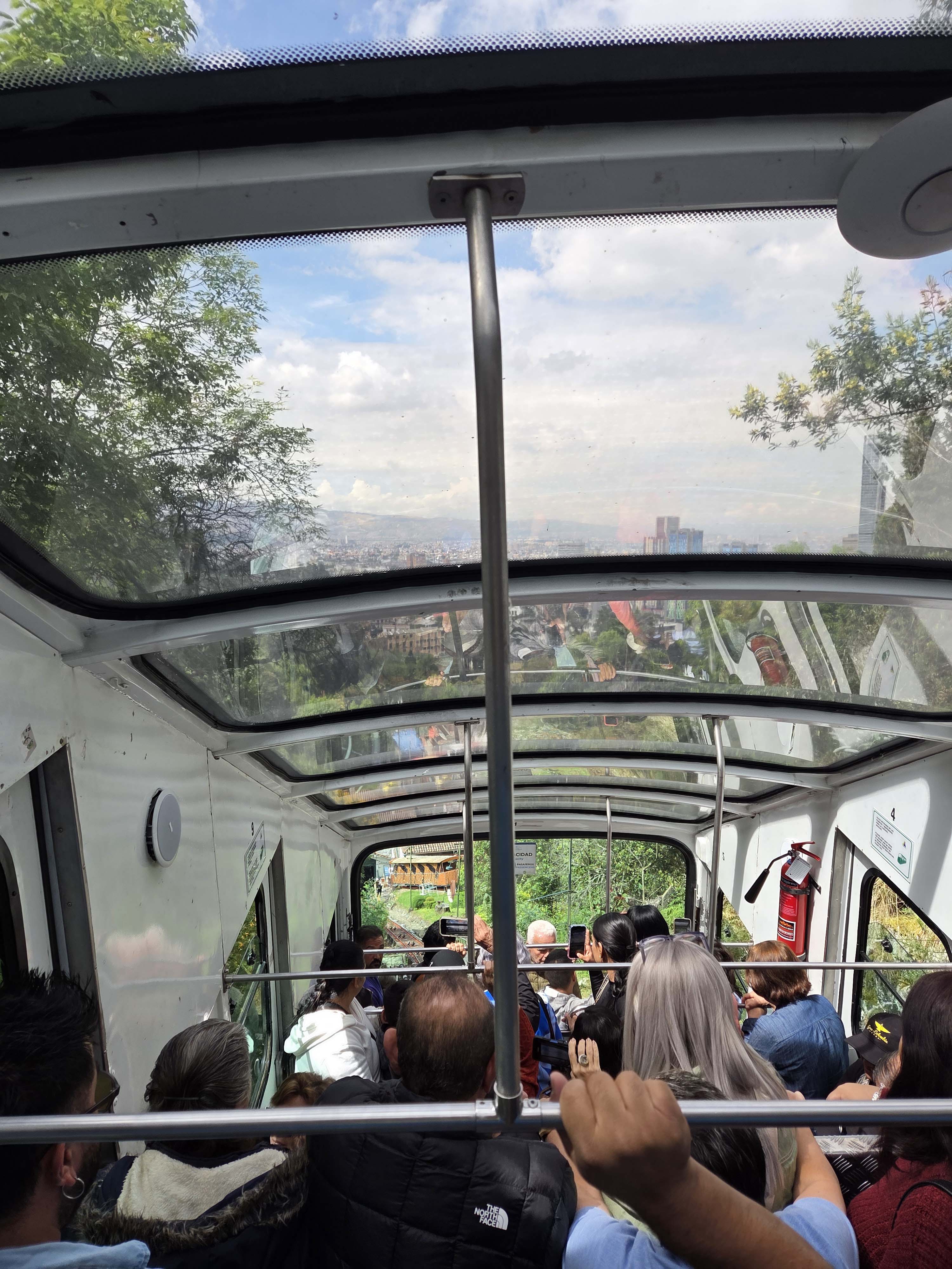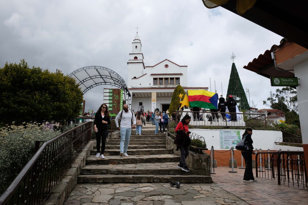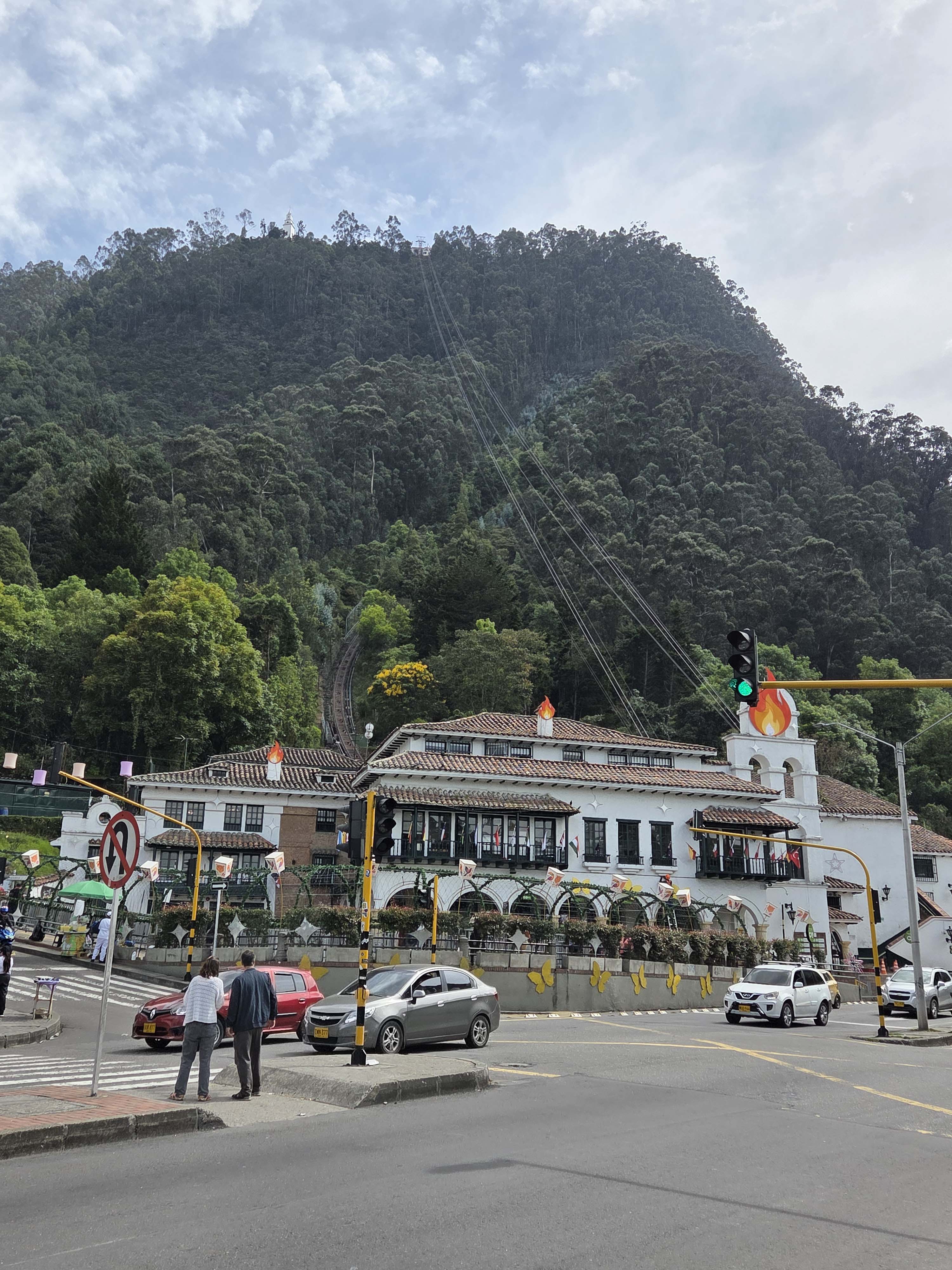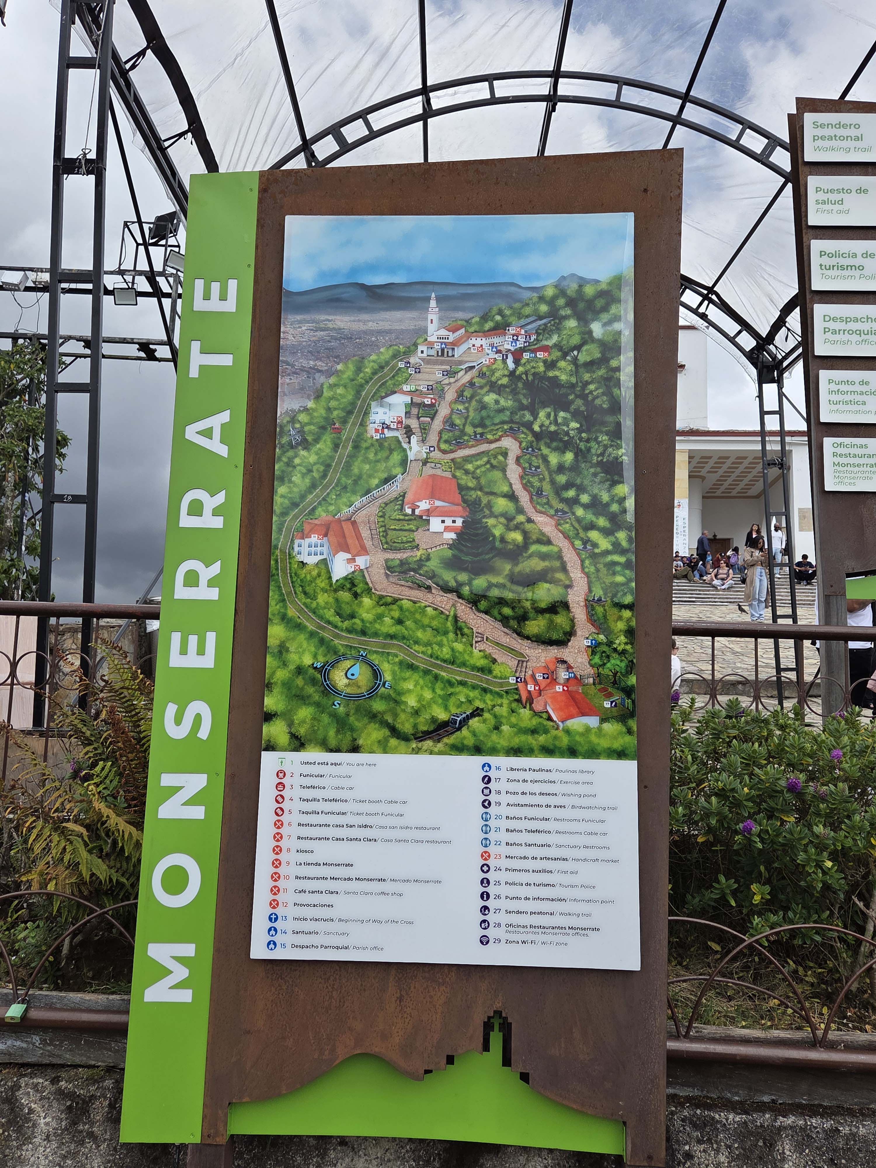 Der Monserrate ist ein Berg in Bogota, Kolumbien, neben dem Stadtzentrum von Bogota. Auf der Spitze befindet sich eine Kirche aus dem 17. Jahrhundert, Restaurants und ein Geschäft. Der Berg liegt auf 3152 Metern über dem Meeresspiegel. Die Wallfahrtskirche auf dem Berg Monserrate kann zu Fuß, mit der Seilbahn oder einer Zahnradbahn erreicht werden. Wir fahren mit der Zahnradbahn hoch.