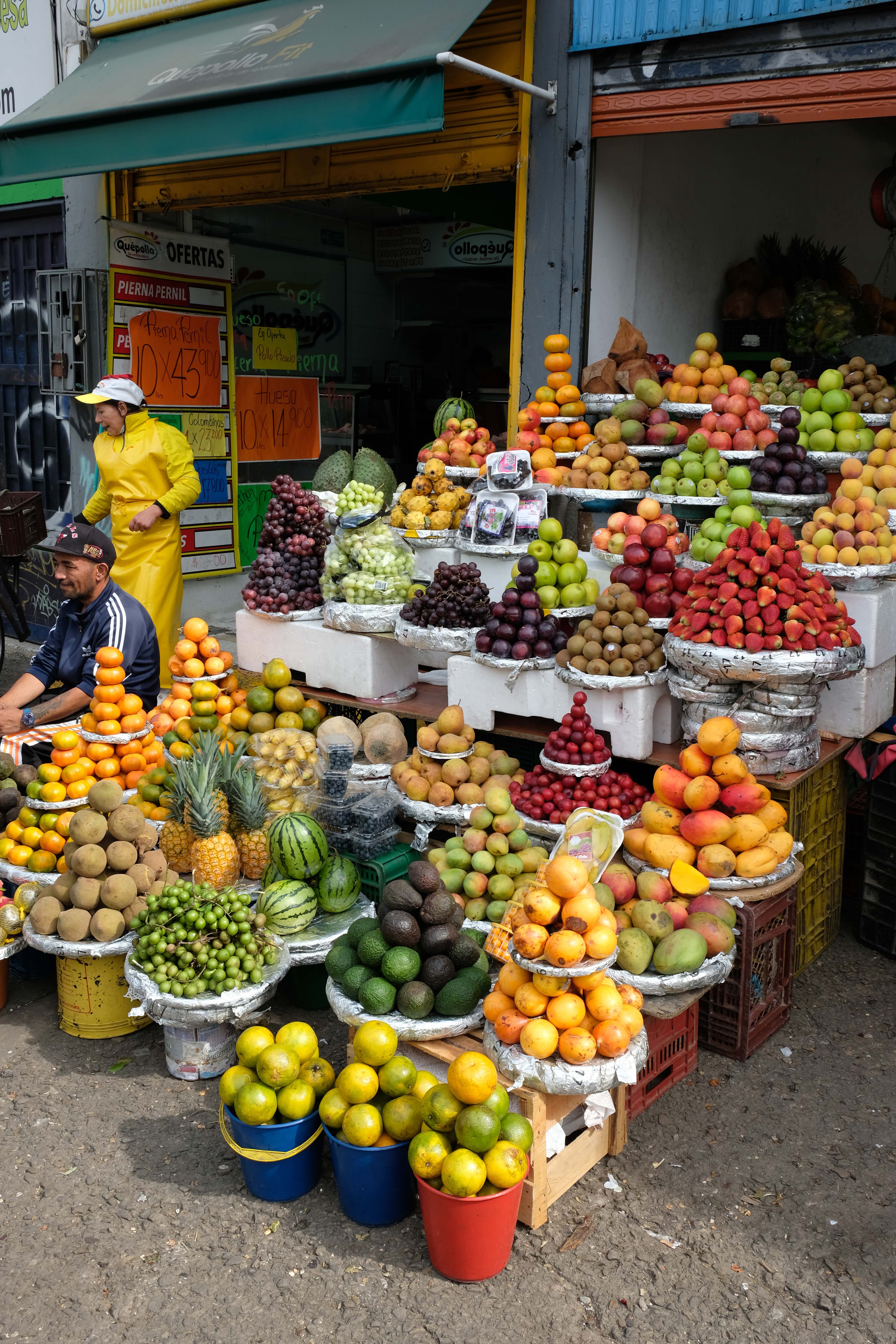 Der Paloquemao-Markt beeindruckte uns durch die Vielfalt an Waren und die ausserordentliche Sauberkeit und einzigartige Darbietung der Produkte. Lokale Produkte werden aus dem ganzen Land hergebracht und dazu verwendet, einige der lokalen Köstlichkeiten zuzubereiten, die Touristen in bekannten Restaurants nicht finden werden. Der Markt ist in vier Abschnitte unterteilt: Fleisch, verpackte Lebensmittel, Fisch, Gemüse und Obst. Kein anderer Markt der Welt hat uns derart beeindruckt.