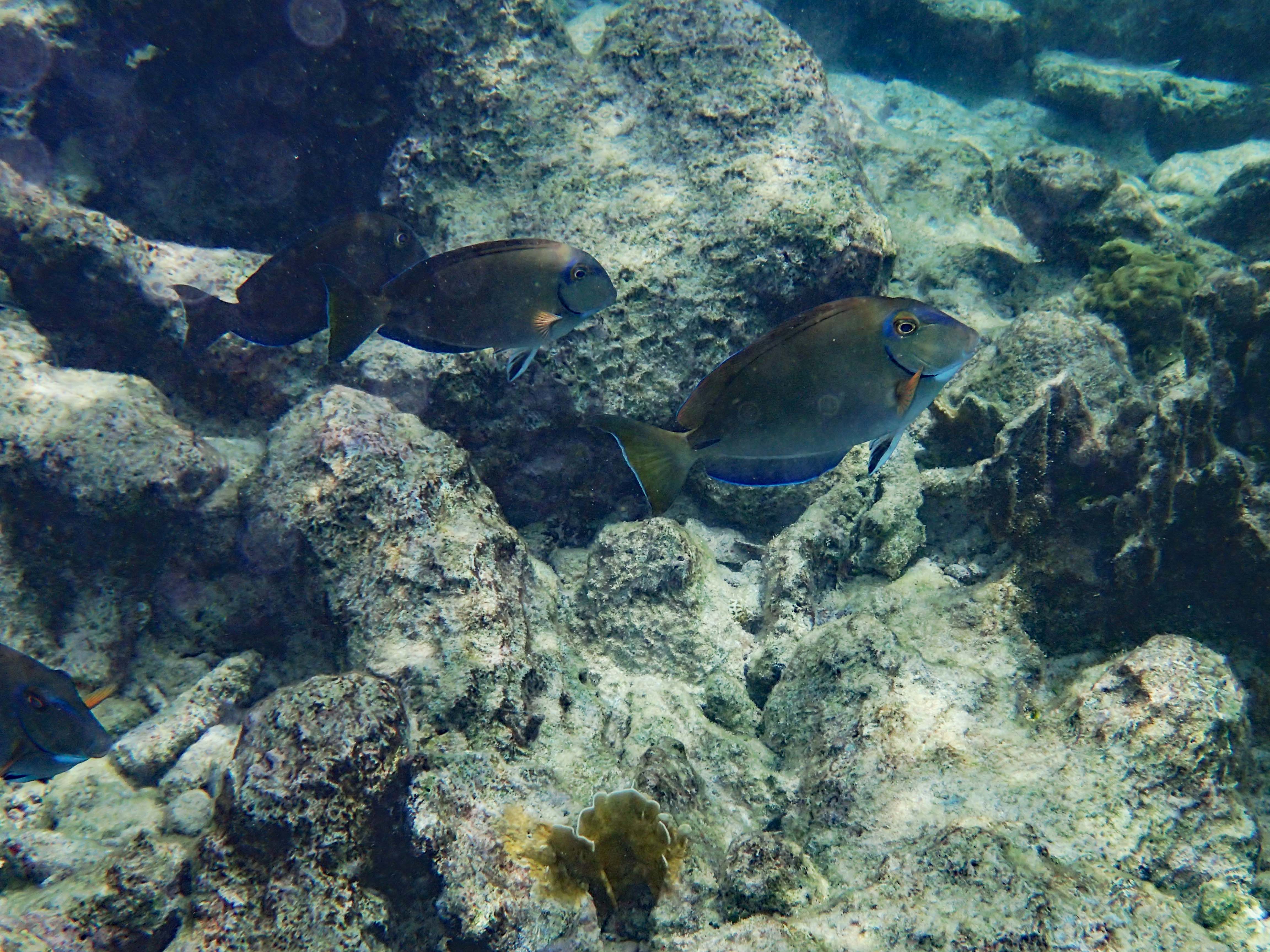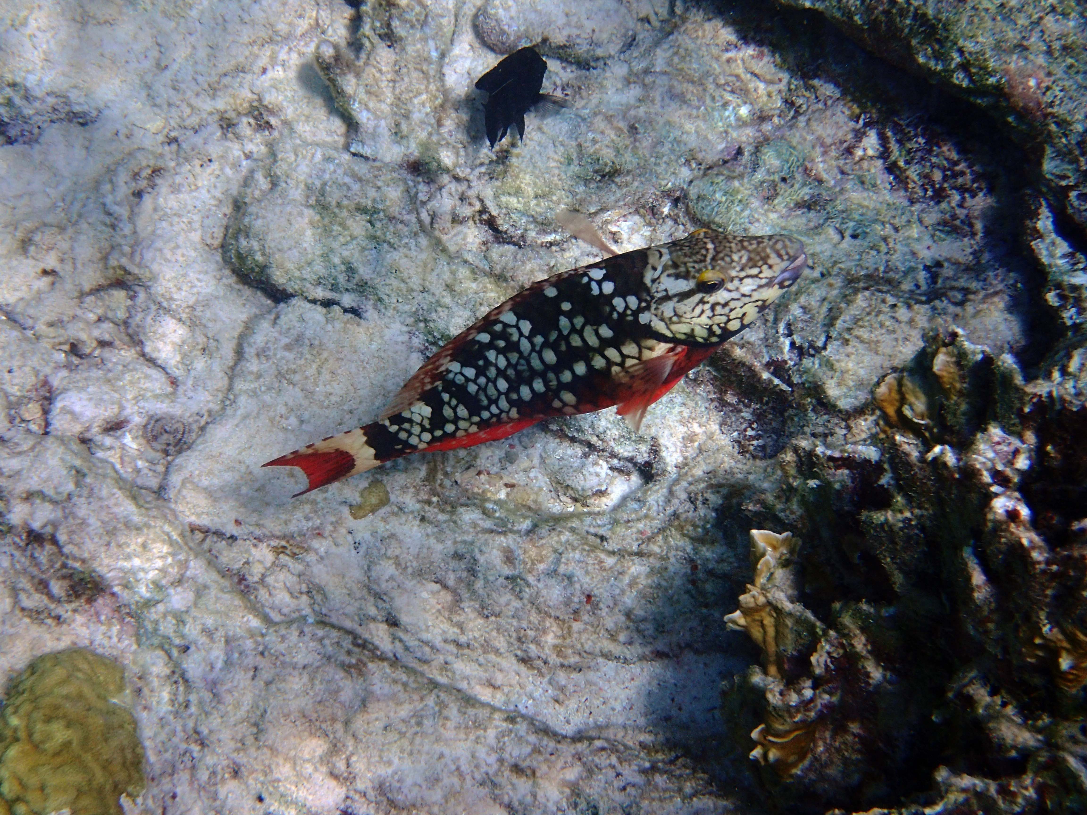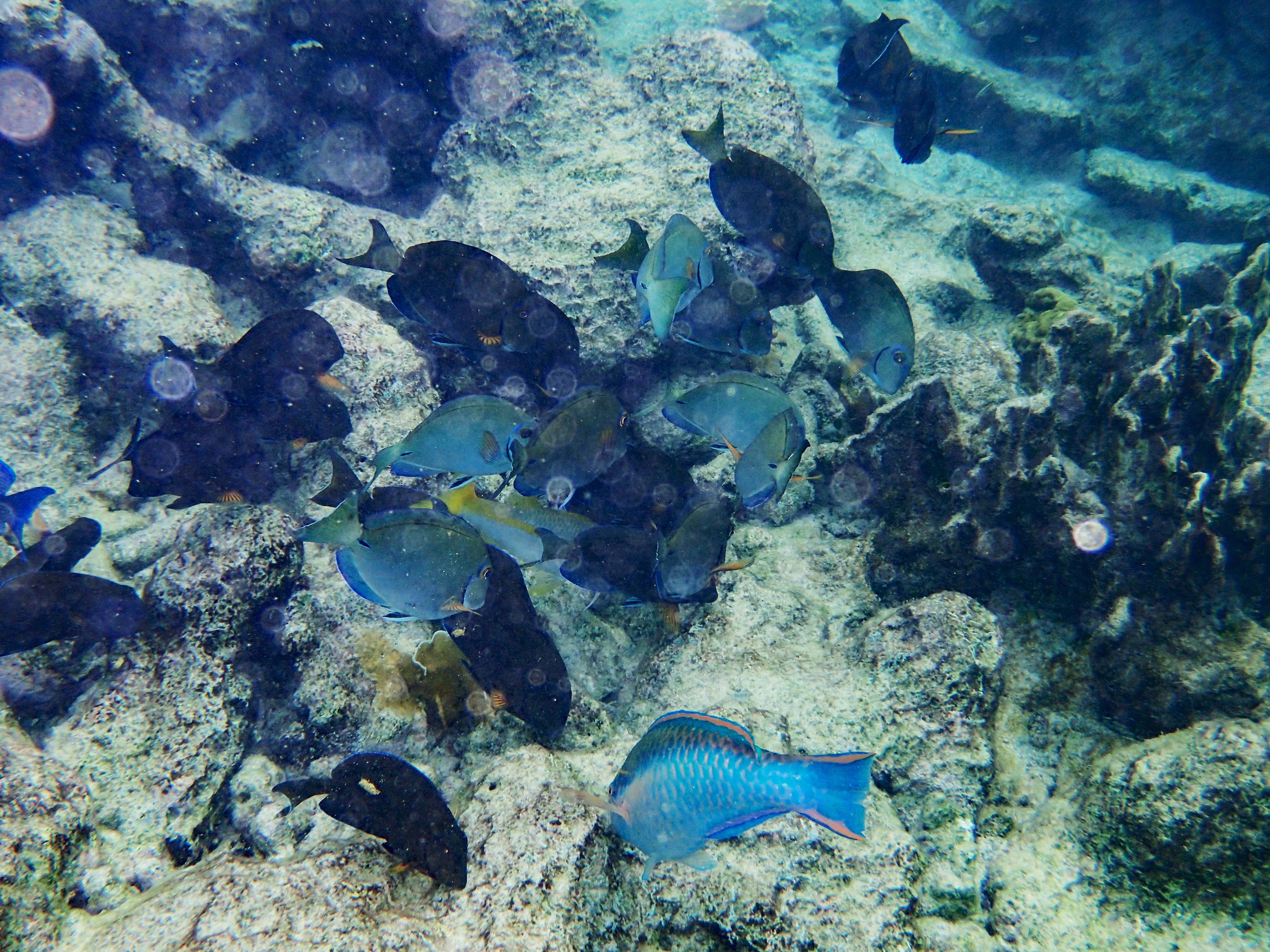 Rüdiger hat alternativ den Schnorchelausflug mit dem Katamaran gewählt und, wie üblich, 1000 Unterwasserfotos gemacht. Das Riff wimmelt nur so von Doktorfischen, Papageienfische, Angelfische, Filefische (Fadenfische) und Plongées (Trunkfish oder Kugelfisch)