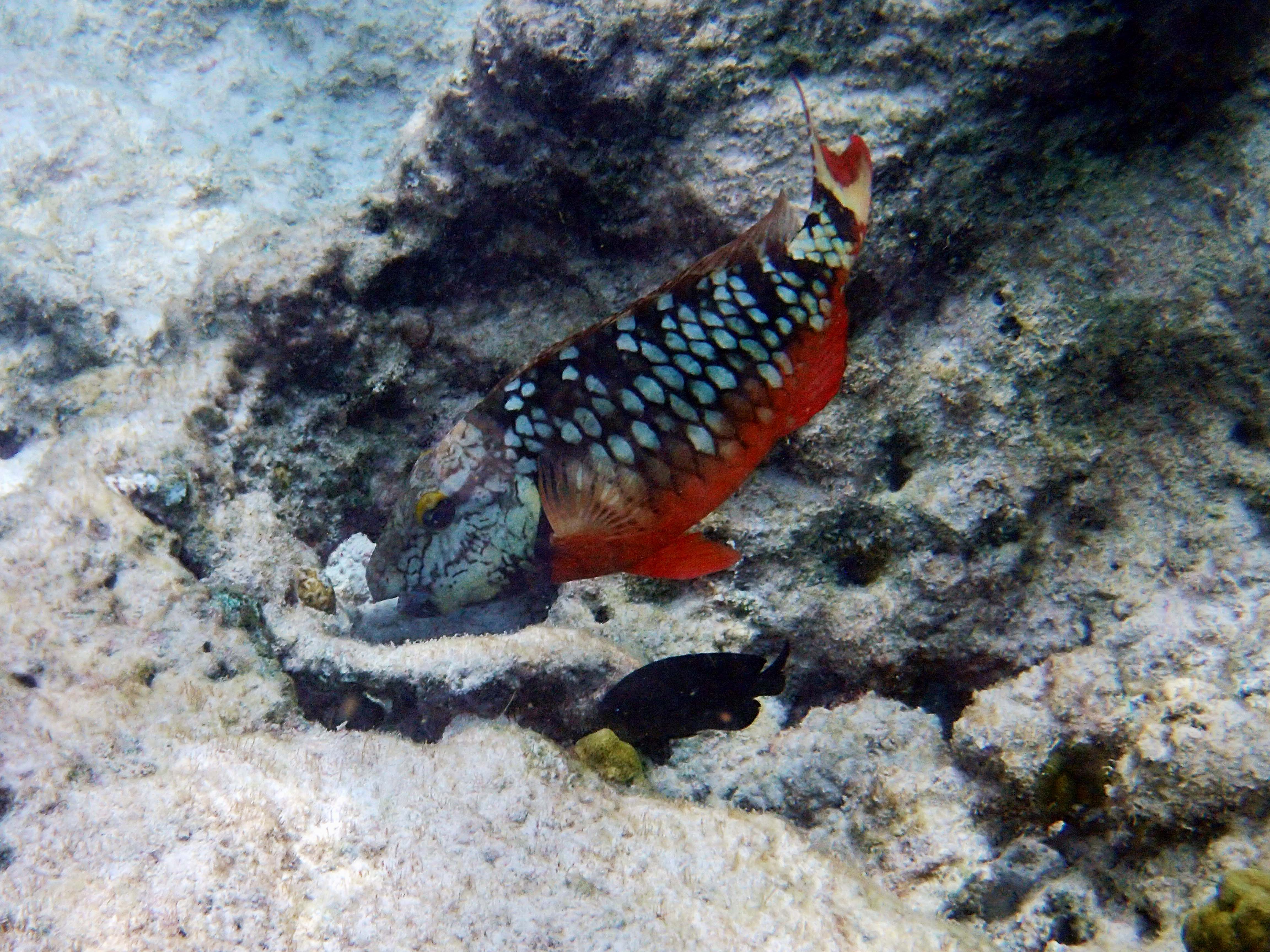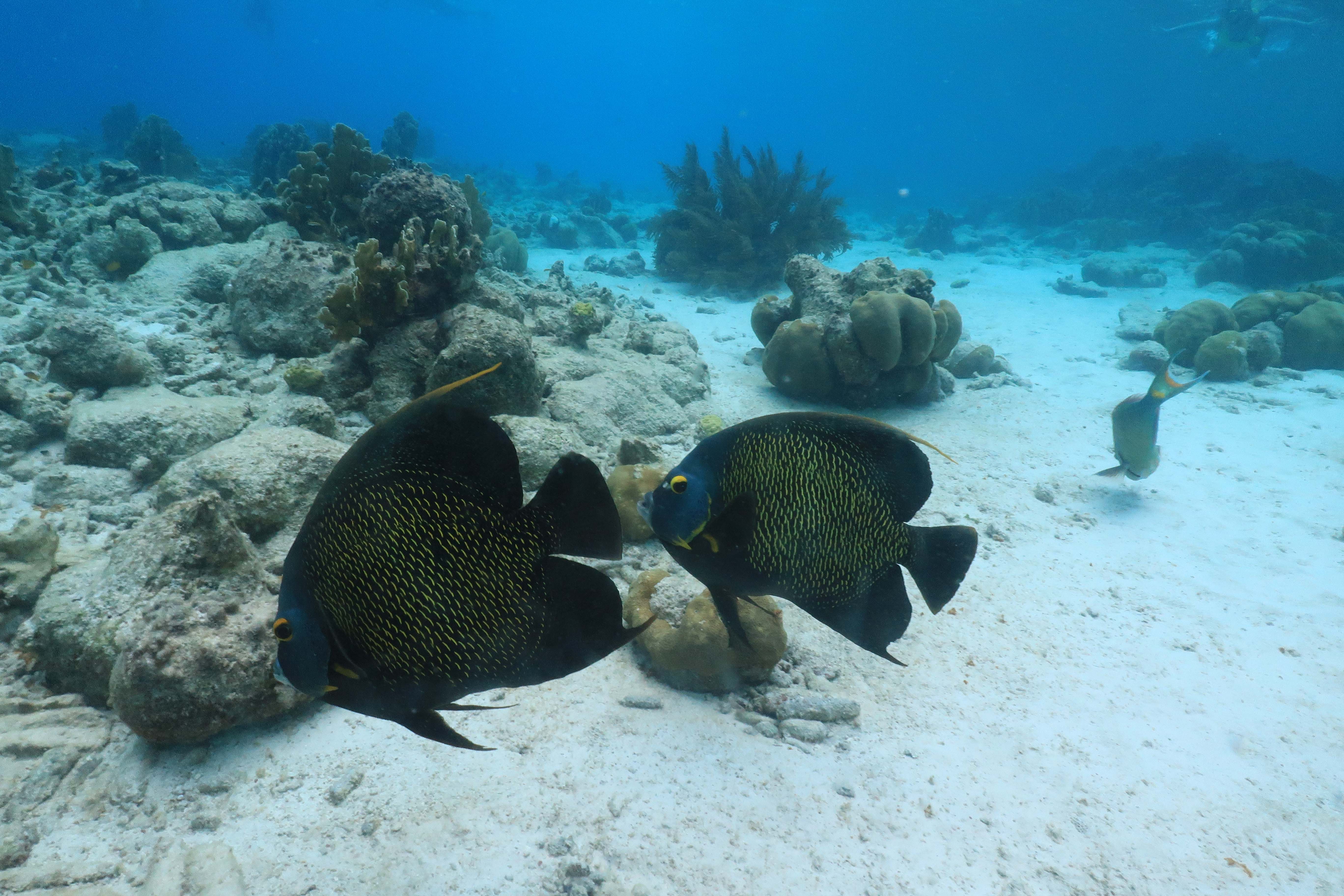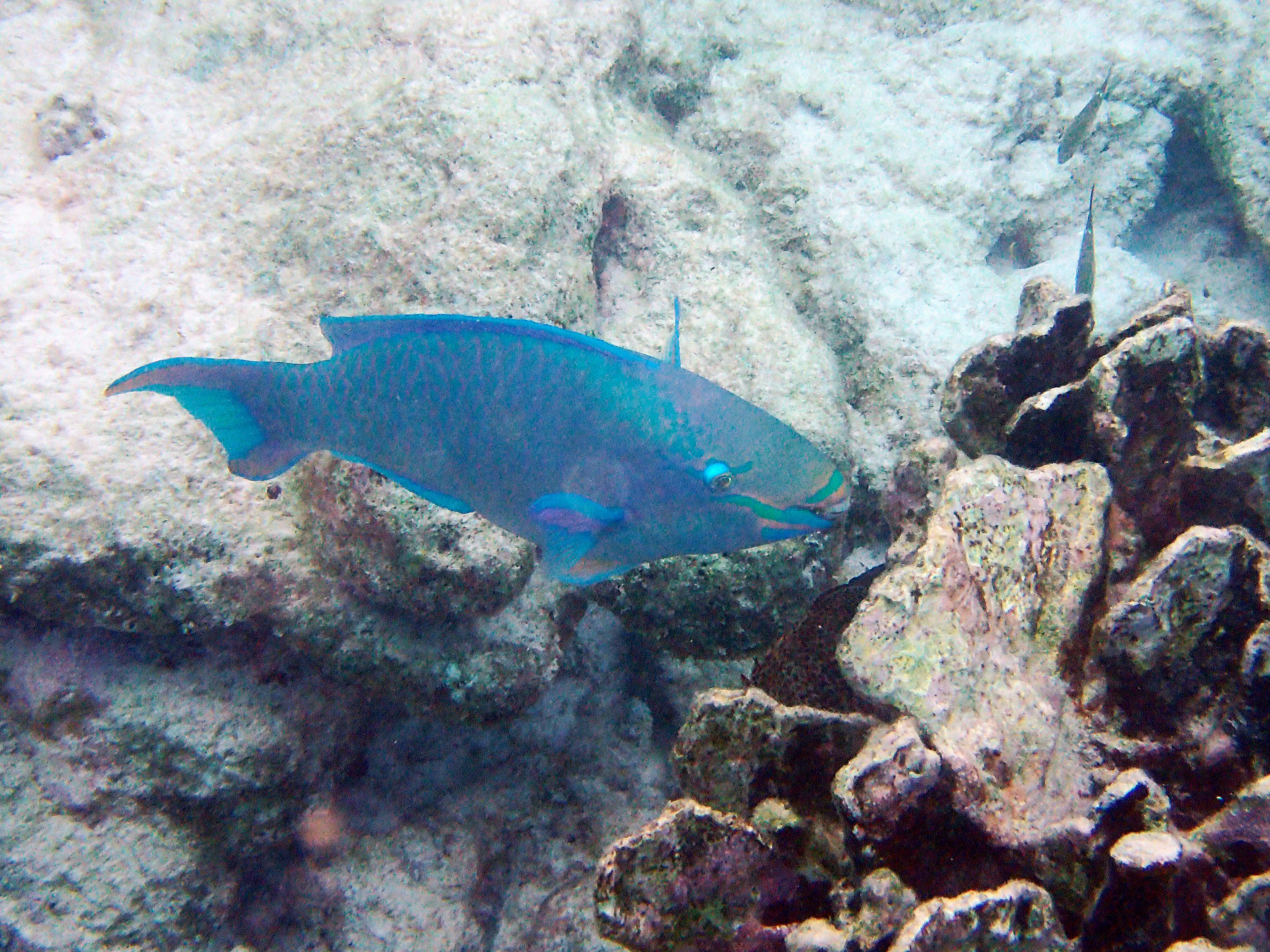 Rüdiger hat alternativ den Schnorchelausflug mit dem Katamaran gewählt und, wie üblich, 1000 Unterwasserfotos gemacht. Das Riff wimmelt nur so von Doktorfischen, Papageienfische, Angelfische, Filefische (Fadenfische) und Plongées (Trunkfish oder Kugelfisch)