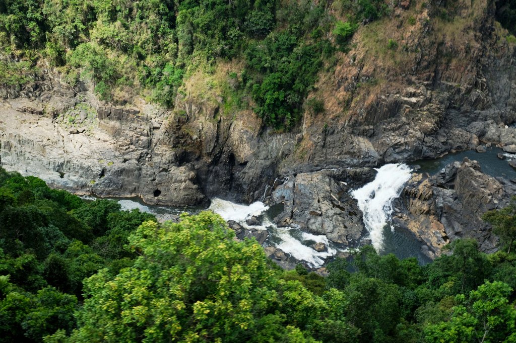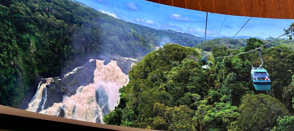 Der tropische Ort Kuranda liegt inmitten der Tiefen des Regenwaldes oberhalb von Cairns und kann mit einer Seilbahn oder mit einem historischen Zug erreicht werden. Wir nehmen die Seilbahn und gleiten über den Regenwald und den Barron River, in dem zahlreiche Krokodile auf fette Beute lauern.