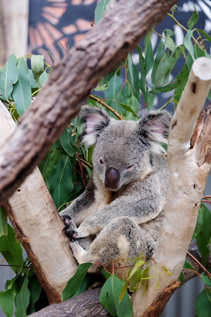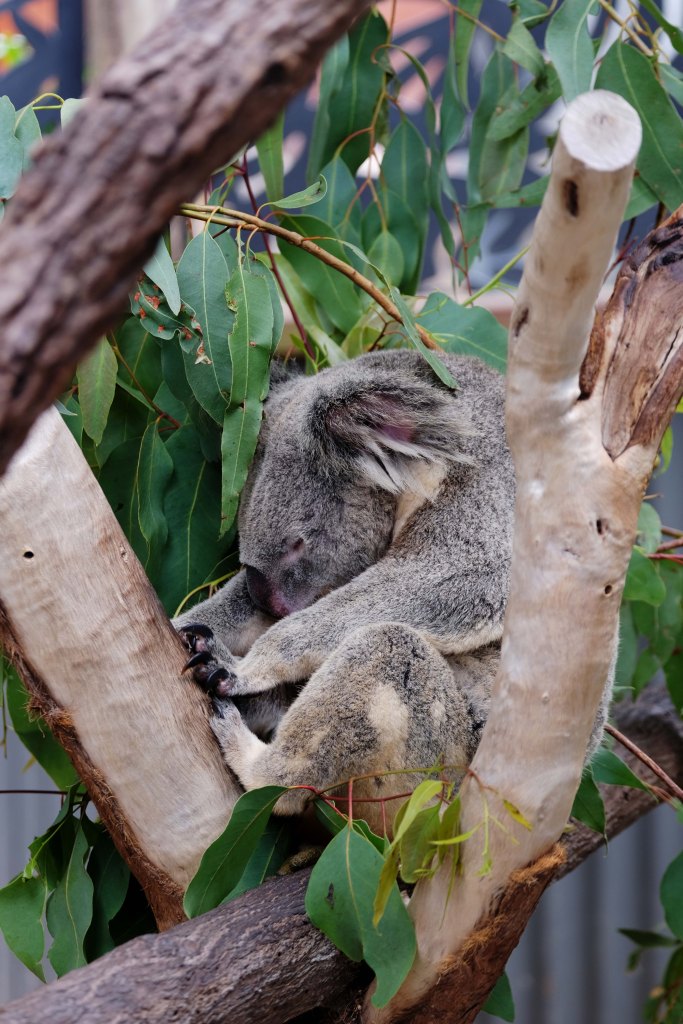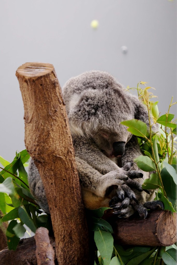 Da uns noch etwas Zeit bleibt, besuchen wir auch noch den Koala Garden. Wir haben Glück und ein Koala ist aufgewacht und zeigt sich.