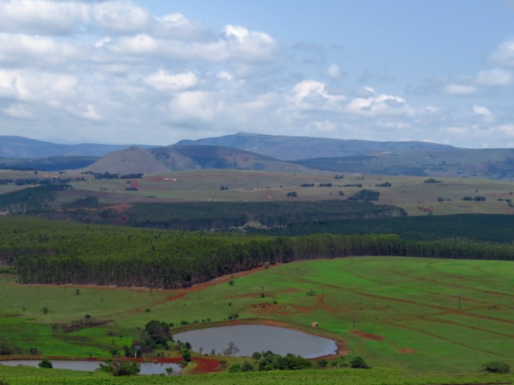 Auf dem Weg nach Vryheid wechselt die Landschaft in Farmland: Rinderzucht und intensive Landwirtschaft mit riesigen Ackerflächen. Nach einem kurzen Stop in der Junction hinter Vryheid ging es dann ungebremst (Bärbel fährt) nach Dundee, wo man den Schildern zu wichtigen Schlachtfeldern („Battlefields“) der Buren, Zulus und Engländern nicht ausweichen kann.