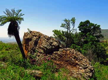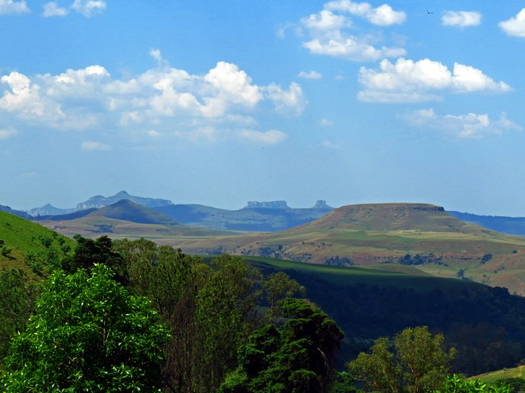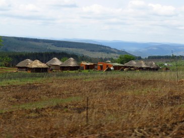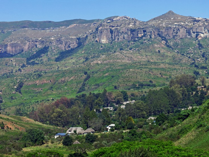 Die erste Wegstrecke führt zunächst durch das uns bereits gut bekannte Buschland. Immer wieder fanden wir Hinweise und Wegweiser zu Lodgen und Game Farms für die Jagd-Touristen. Dann passieren wir das Ithala Reserve mit seiner beeindruckenden Bergszenerie.