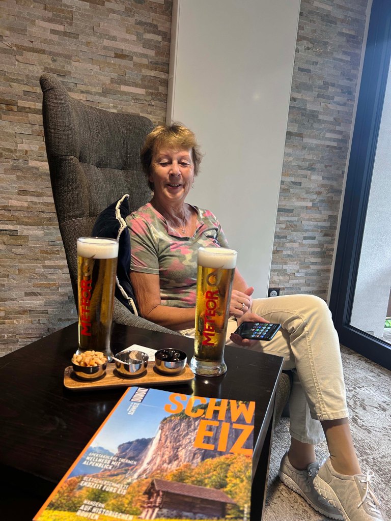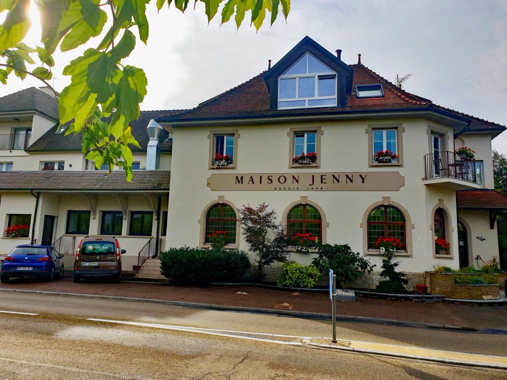 Unser Ziel ist Jenny, ein kleines, sehr schönes Hotel in Hegenheim in der Höhe von Basel, aber noch in Frankreich. Es hat ein gutes Restaurant mit einer großen Auswahl ausgesuchter Weine. Wir freuen uns nach 6 Stunden Fahrt erst einmal über das leckere Willkommensbier.