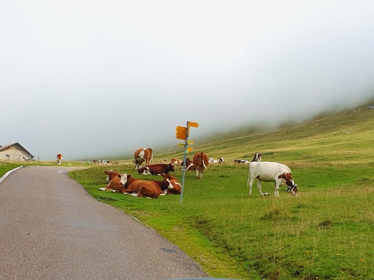 Von der Passhöhe soll sich bei klarer Sicht ein herrlicher Blick auf die gesamte Alpenkette vom Säntis im Osten bis zum Mont Blanc im Westen eröffnen. Leider hatten wir keine gute Sicht, aber dafür viele Fans.