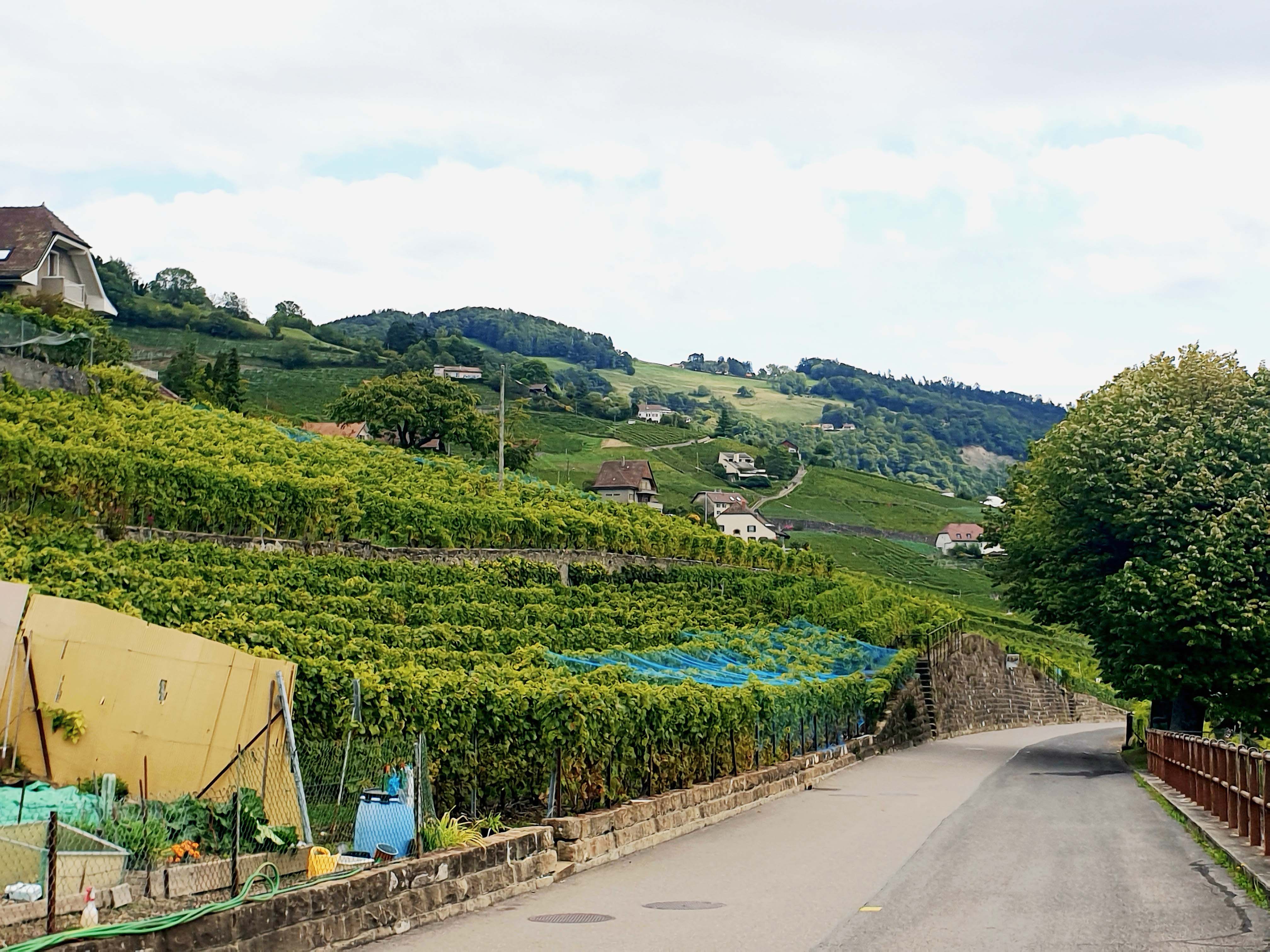 Das Lavaux ist das größte zusammenhängende Weinanbaugebiet der Schweiz und UNESCO-Weltnaturerbe. Es liegt an den steilen Hängen der Nordseite des Genfer Sees zwischen Lausanne und Montreux und wurde von Mönchen in Terrassenbauweise angelegt. Steile Hänge und im Hintergrund verschneite Berge prägen das Bild.