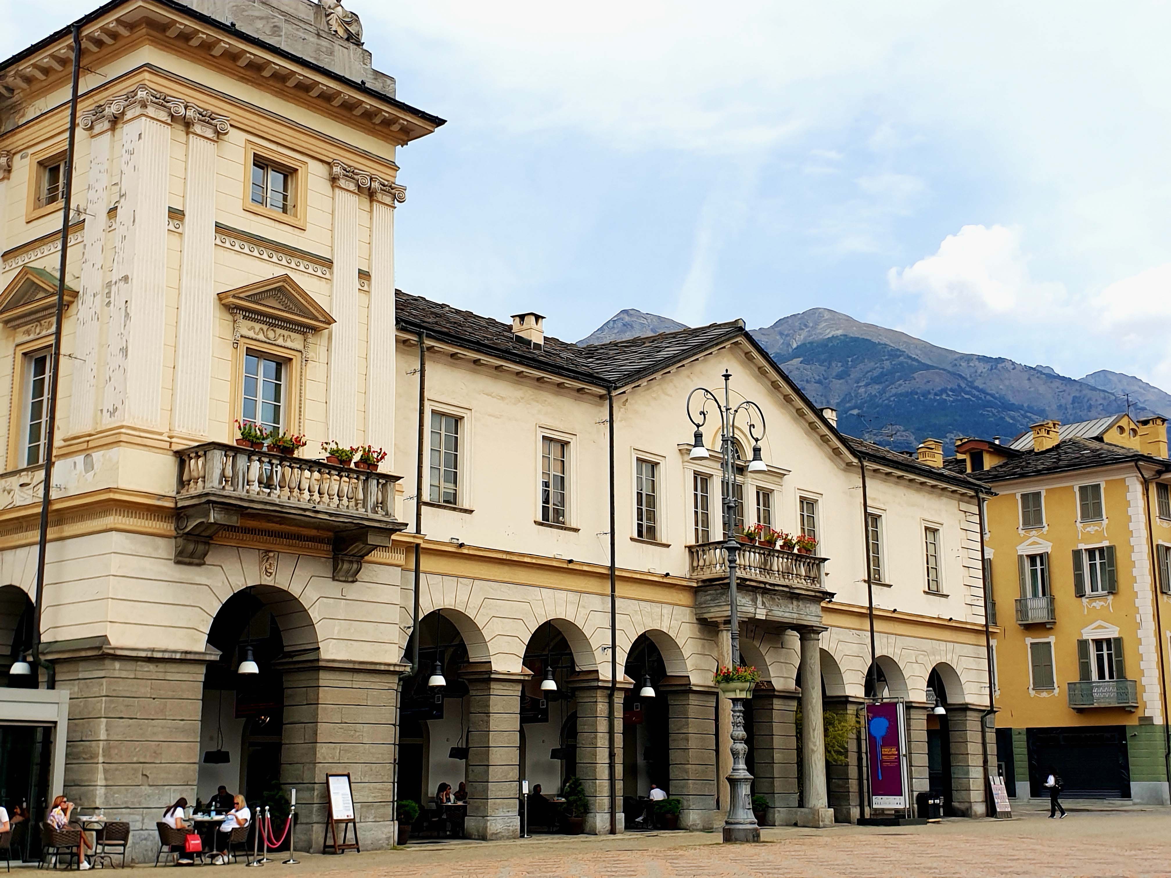 Die Abfahrt geht durch das schöne Aostatal. In Aosta selbst machen wir erst einmal eine verdiente Pause.