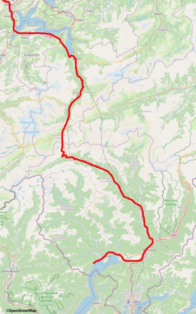 Unsere 3. Etappe führt uns über den großen St. Bernhard nach Italien. Die Strecke ist sehr lang und deshalb fahren wir bis Martigny Autobahn. Dann geht hoch auf 2473m.