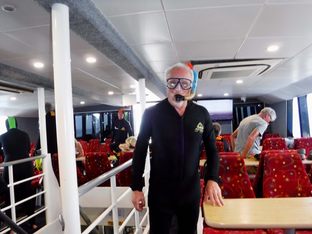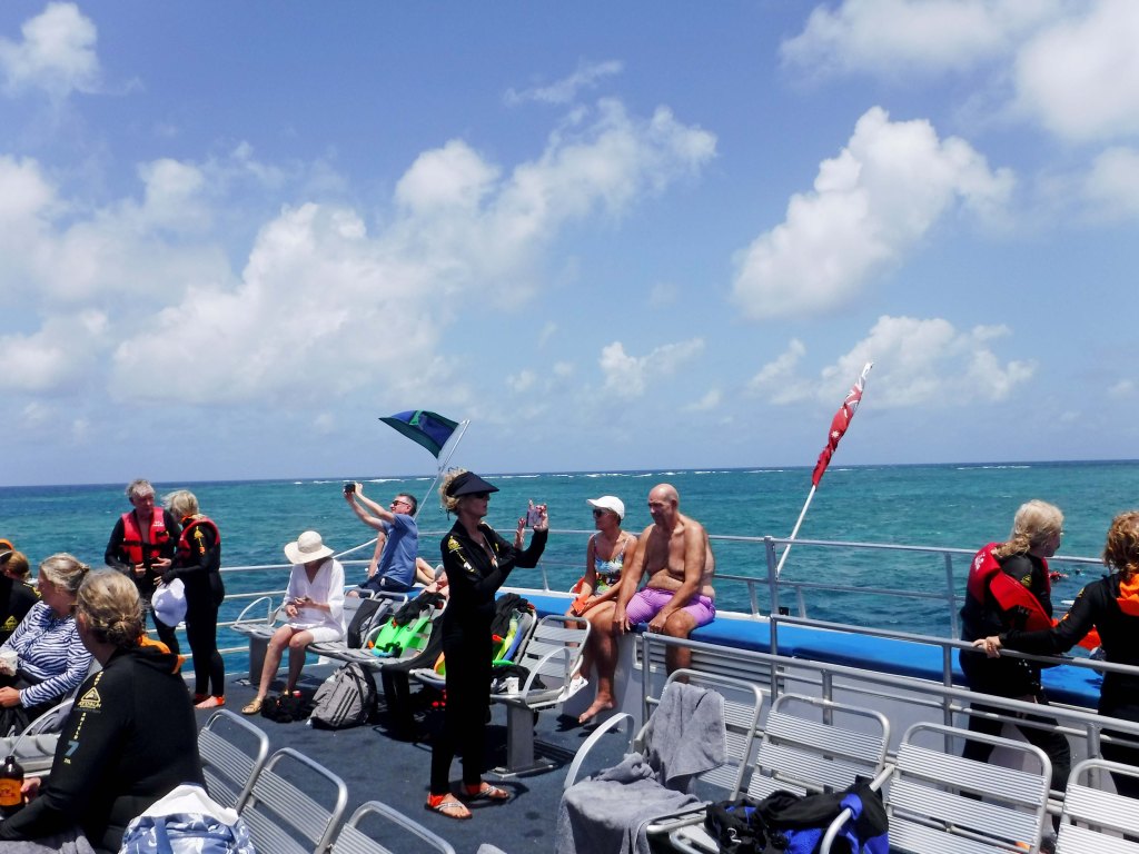 Es ist der letzte Ausflug unserer diesjährigen Tour, aber dafür bestimmt einer der interessantesten. Mit den Tauchboot geht es in einer etwa 90 Minuten Fahrt zum Great Barrier Reef, einem der großen Naturwunder der Welt und UNESCO-Weltkulturerbe. Das Great Barrier Reef ist mit einer Länge von 2 km das größte Korallenriff der Welt und Heimat einer Fülle von Fischen und Meereslebewesen. Es besteht aus über 3.000 einzelnen Riffsystemen und Koralleninseln sowie Hunderten von malerischen tropischen Inseln.