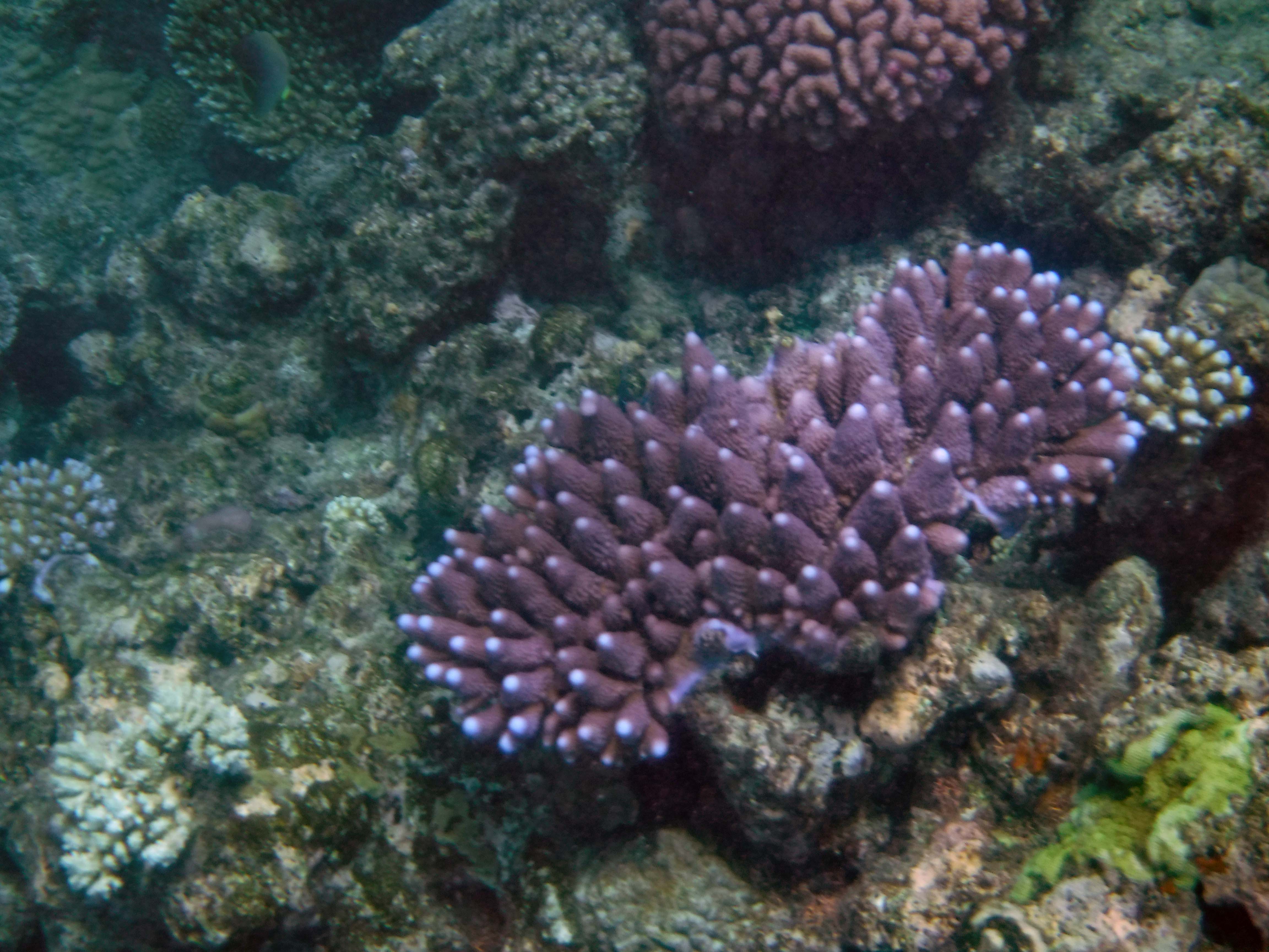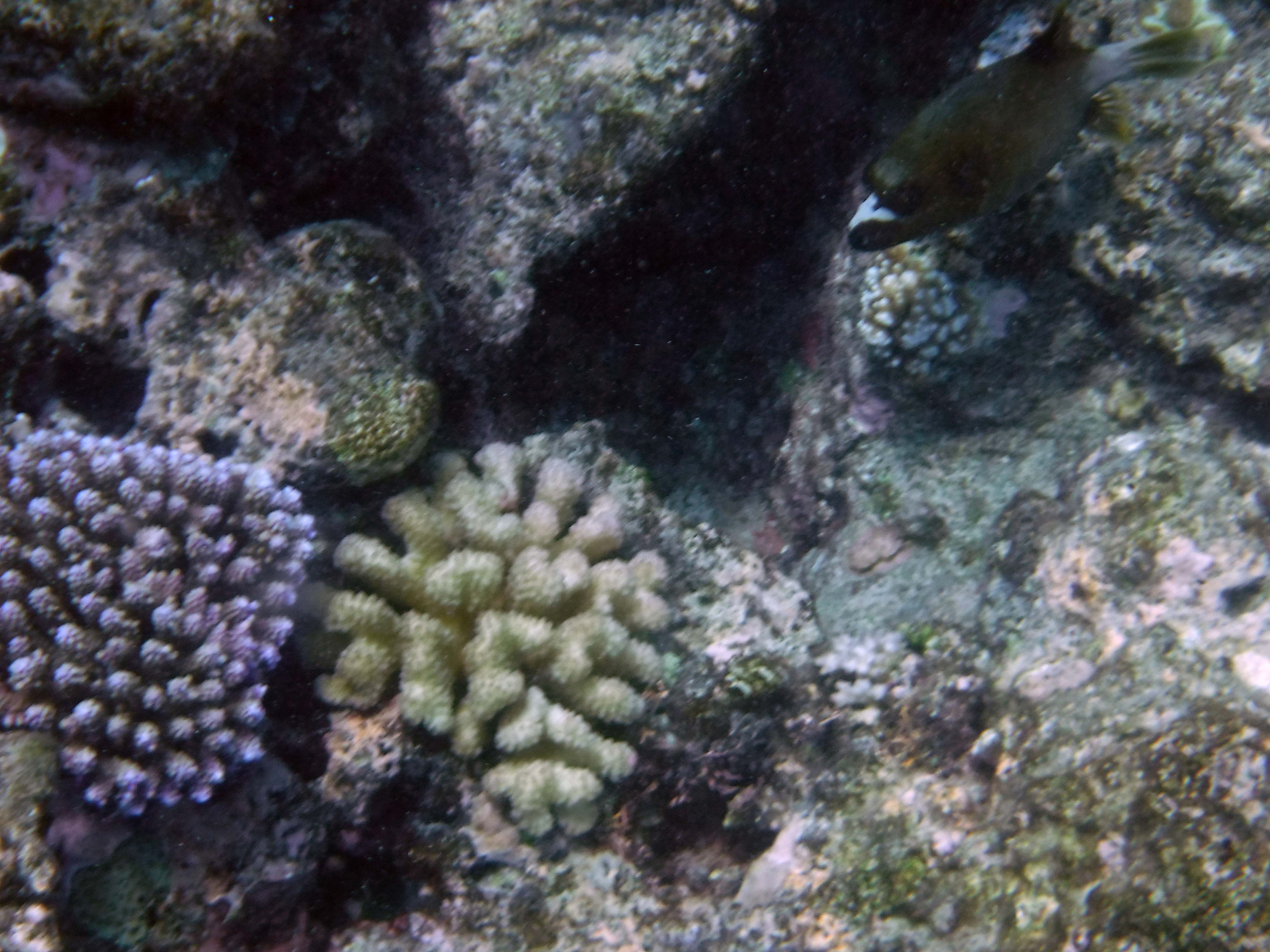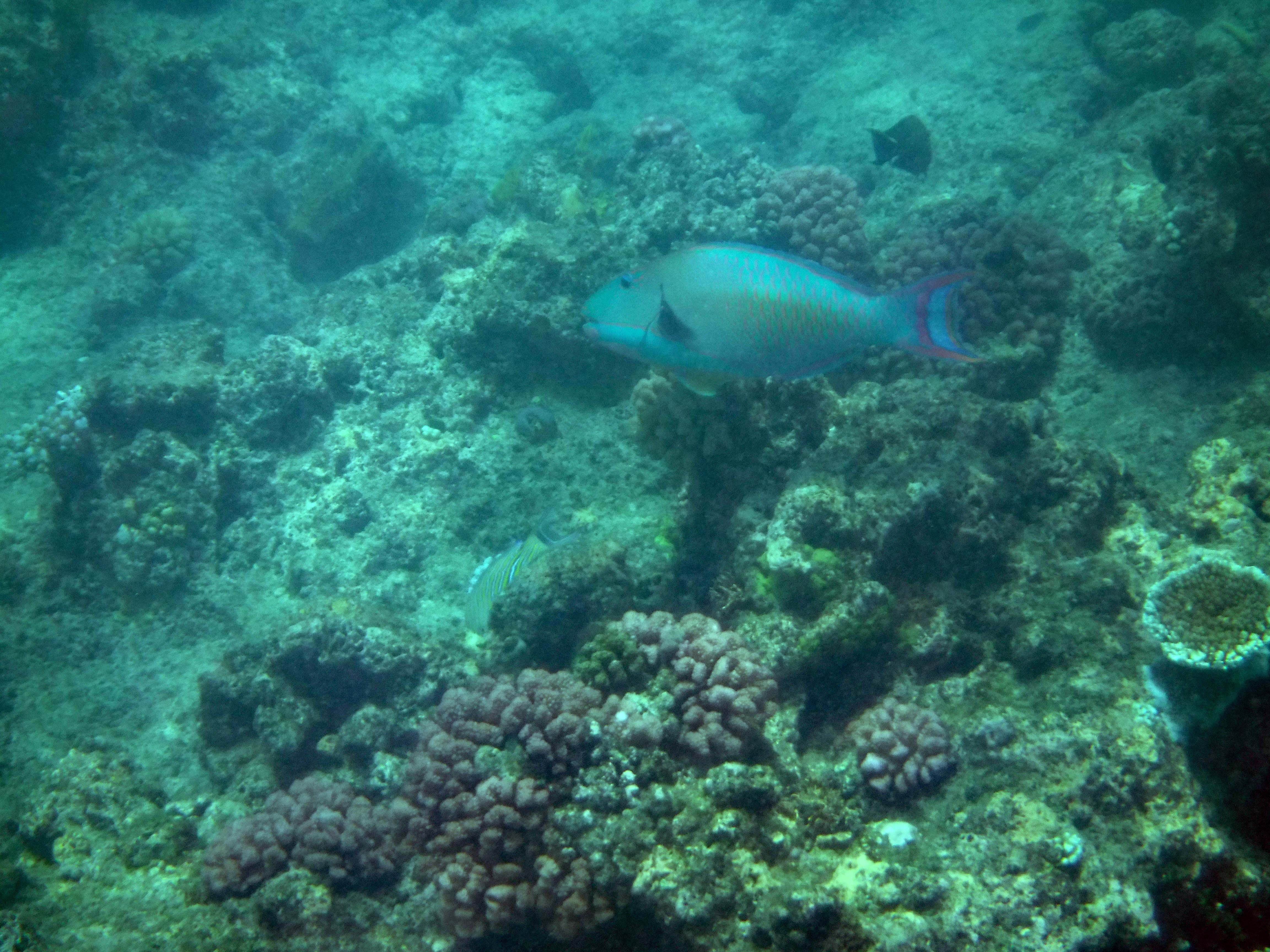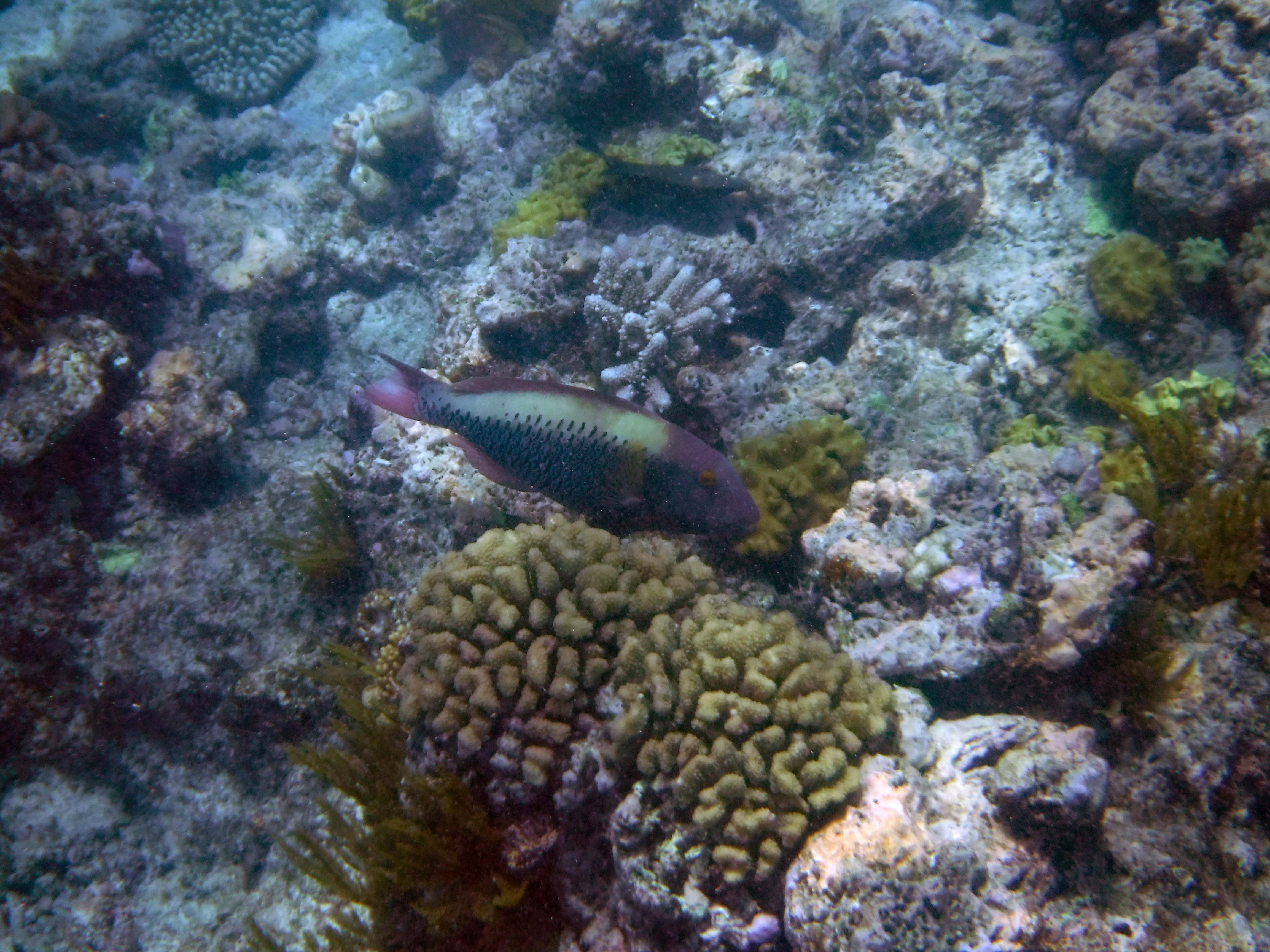 Nur 100m weiter erwartet uns eine fantastische, sehr farbenprächtige Korallenlandschaft, die schönste, die ich bisher gesehen habe. Leider ist das Wasser durch den starken Wellengang nicht so klar wie erhofft.