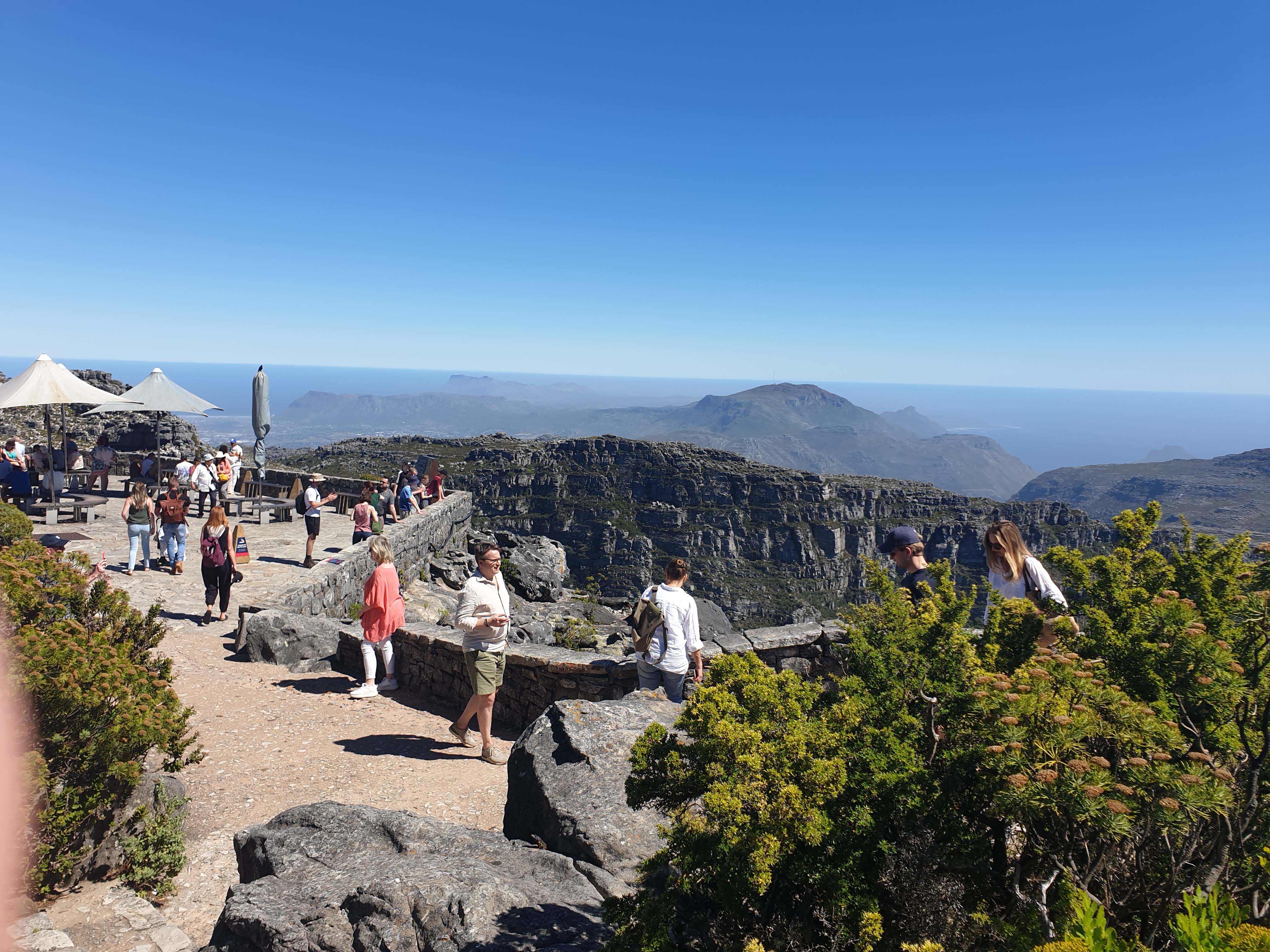 Wir sind jetzt drei Tage in Kapstadt und haben jeden Tag den Tafelberg ohne Wolken gesehen. Heute, an unserem letzten Tag in Kapstadt ist es sogar fast windstill. Also ab zur Seilbahn und hoch auf den Berg und die Aussicht genießen.