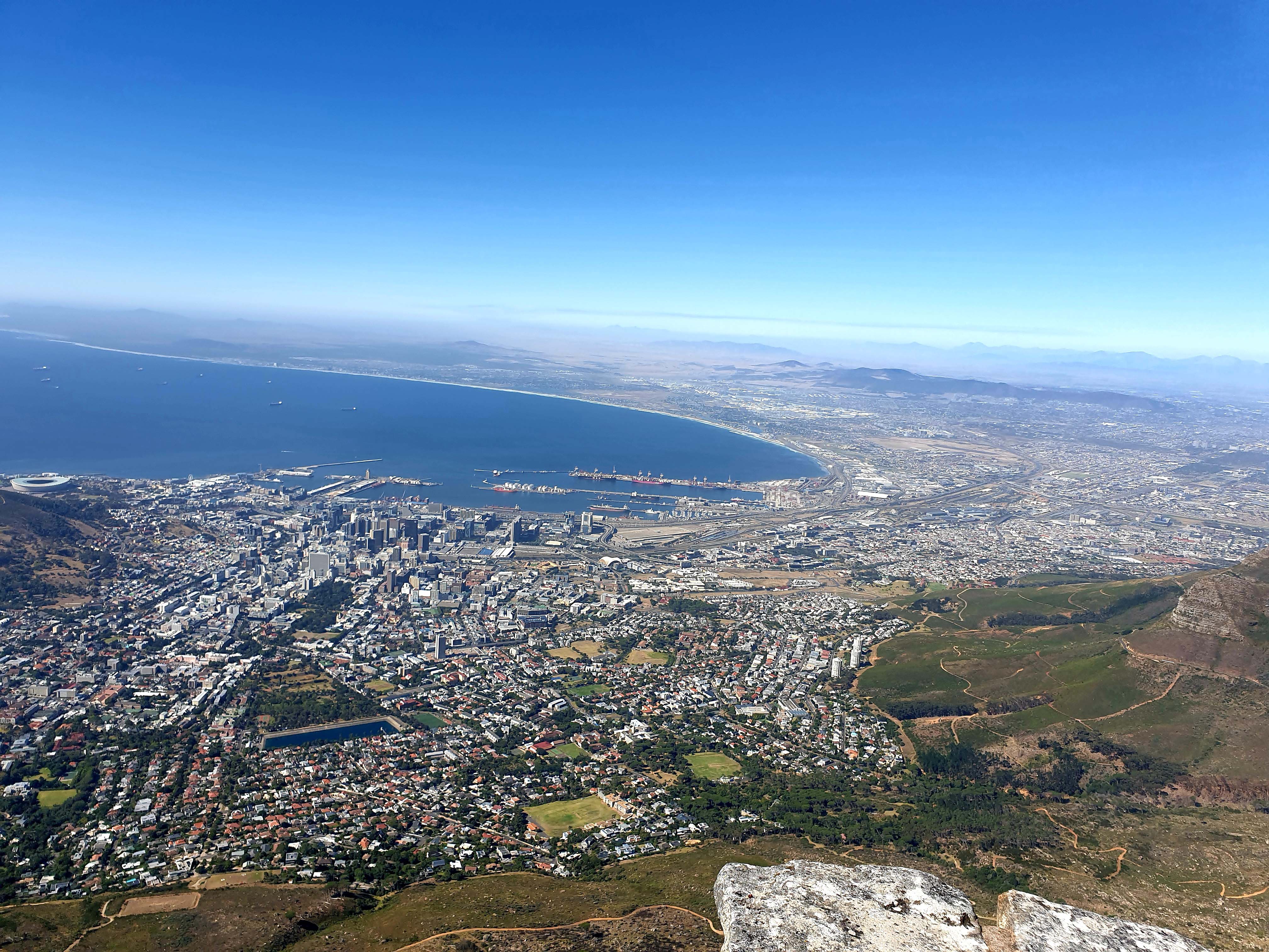 Uns begrüßt Kapstadt mit wunderschönem Sommerwetter: 28 Grad, trockene Luft und eine fantastischen Sicht.