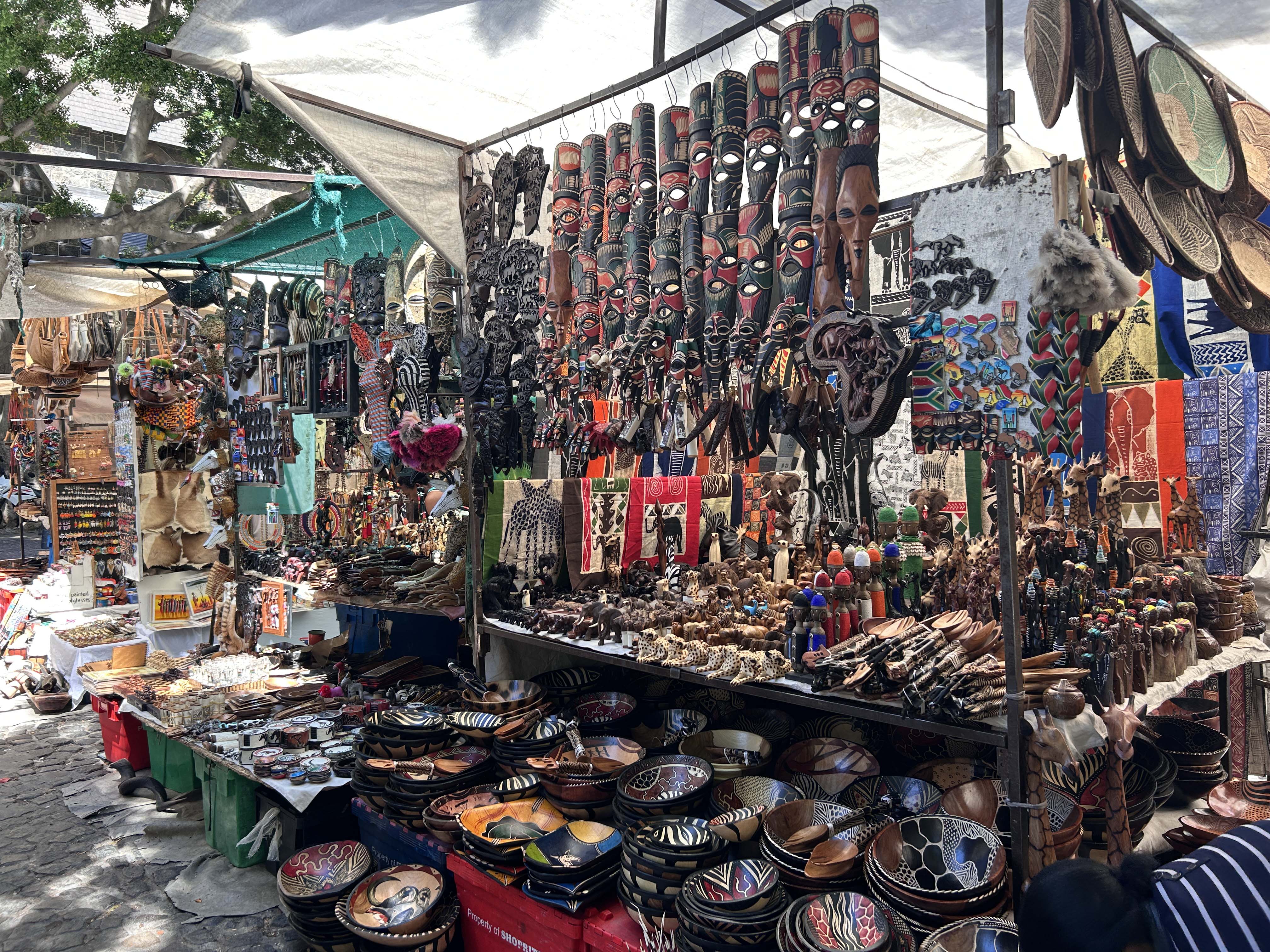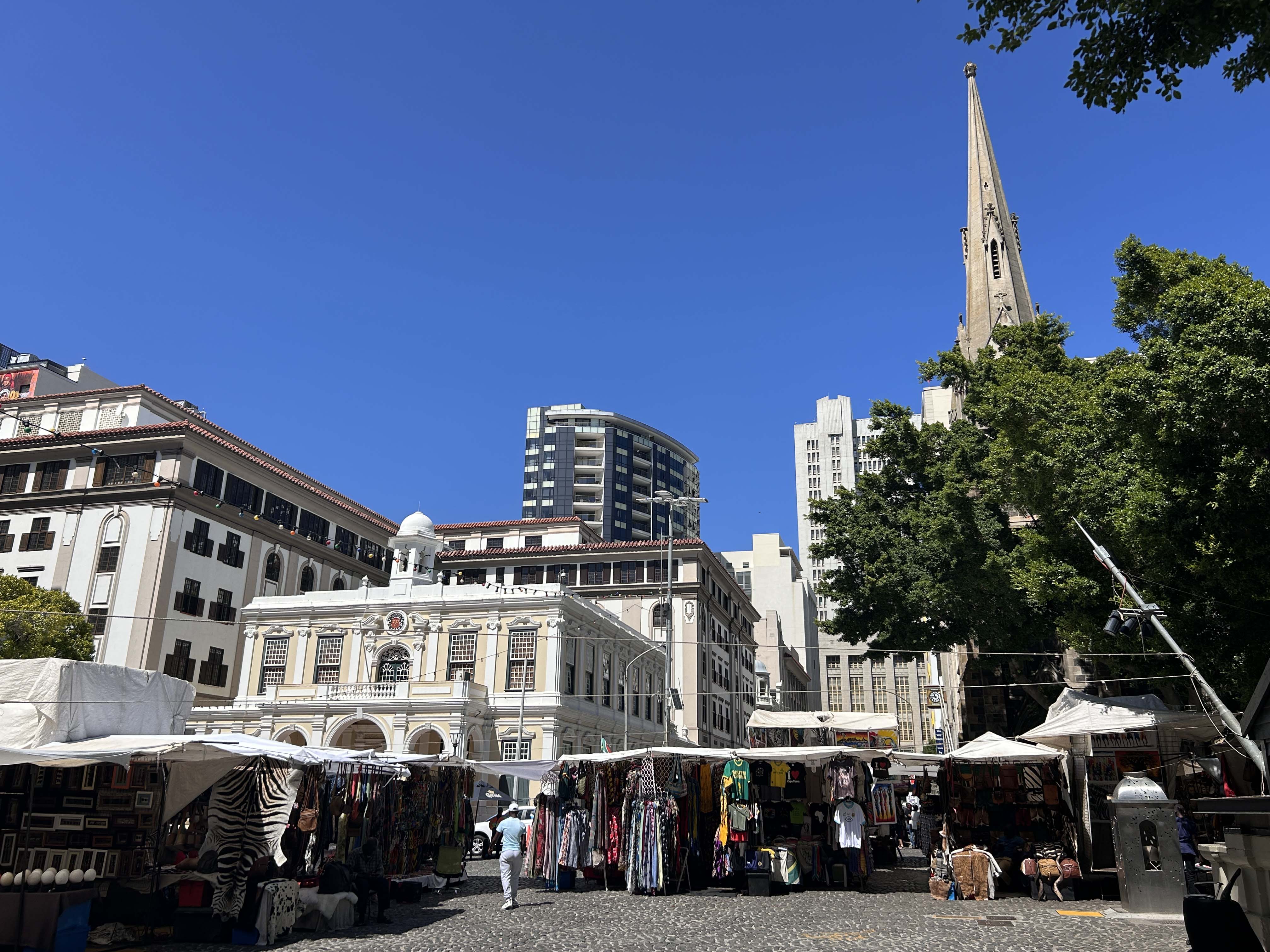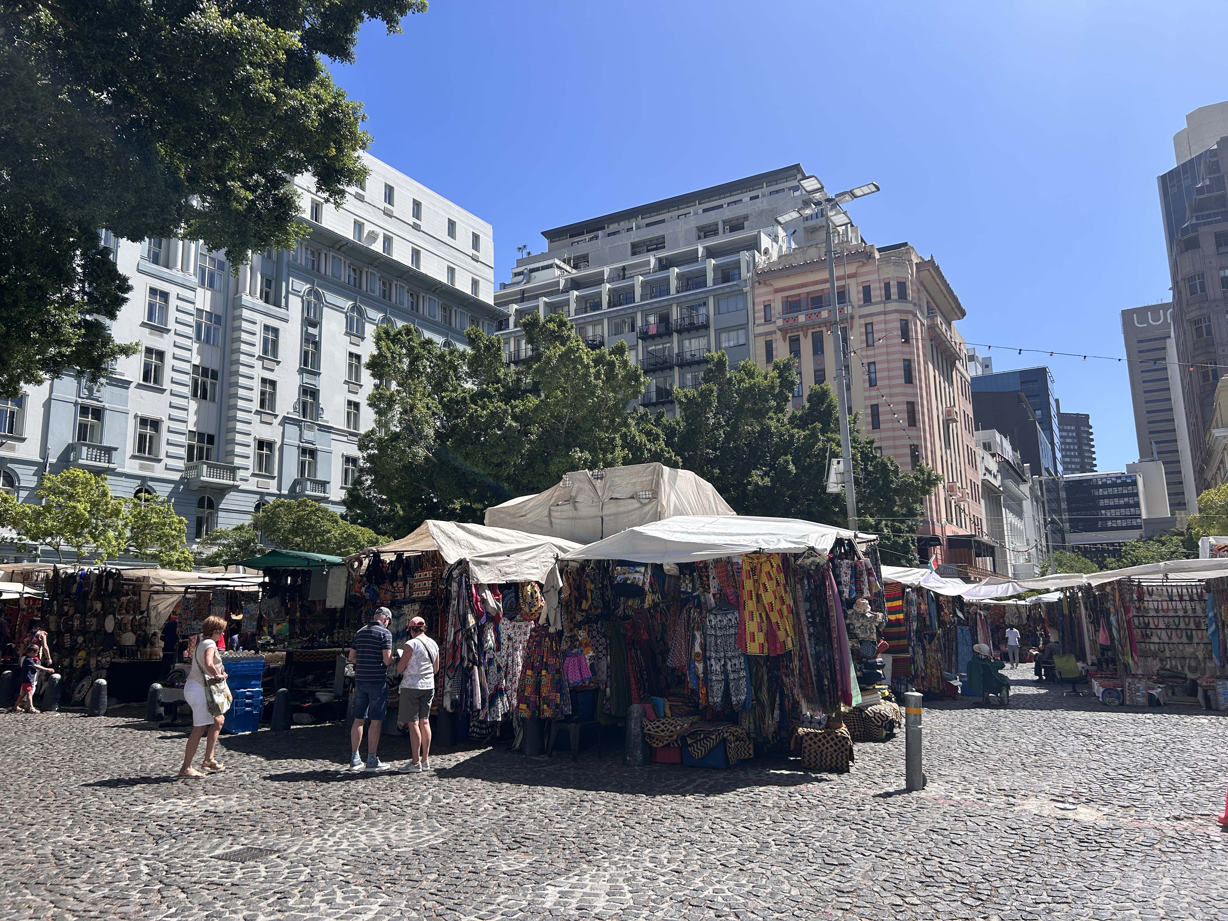 Wir starten unsere Tour durch Kapstadt Downtown am Green Market, dem berühmten Souvenirmarkt.