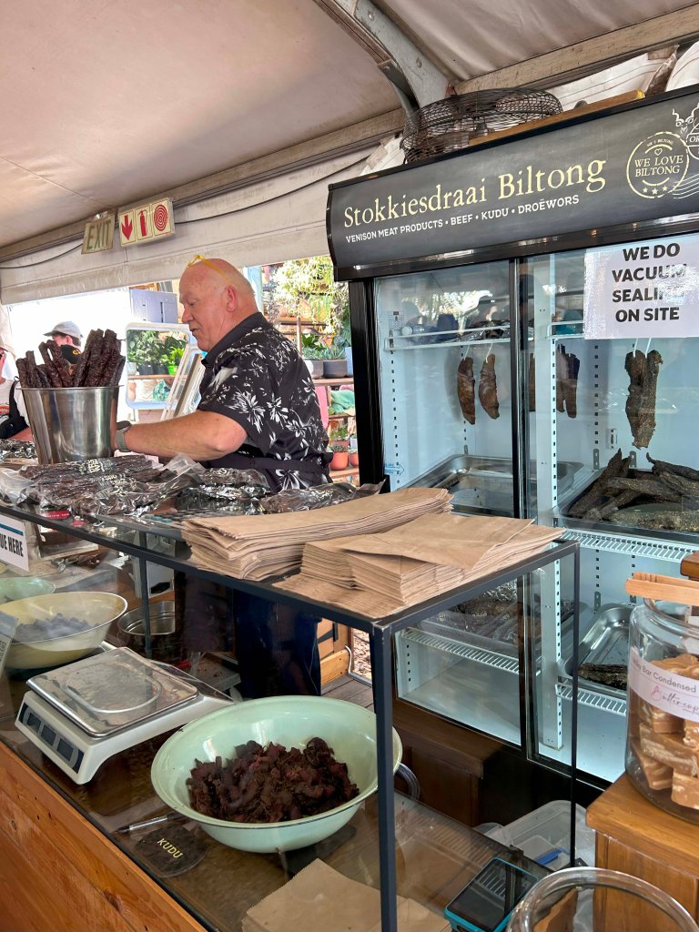 Hier kann man alles Notwendige für den täglichen Bedarf kaufen, allerdings zu entsprechenden Preisen. Biltong, das Dörrfleisch, kennen wir schon aus Namibia.