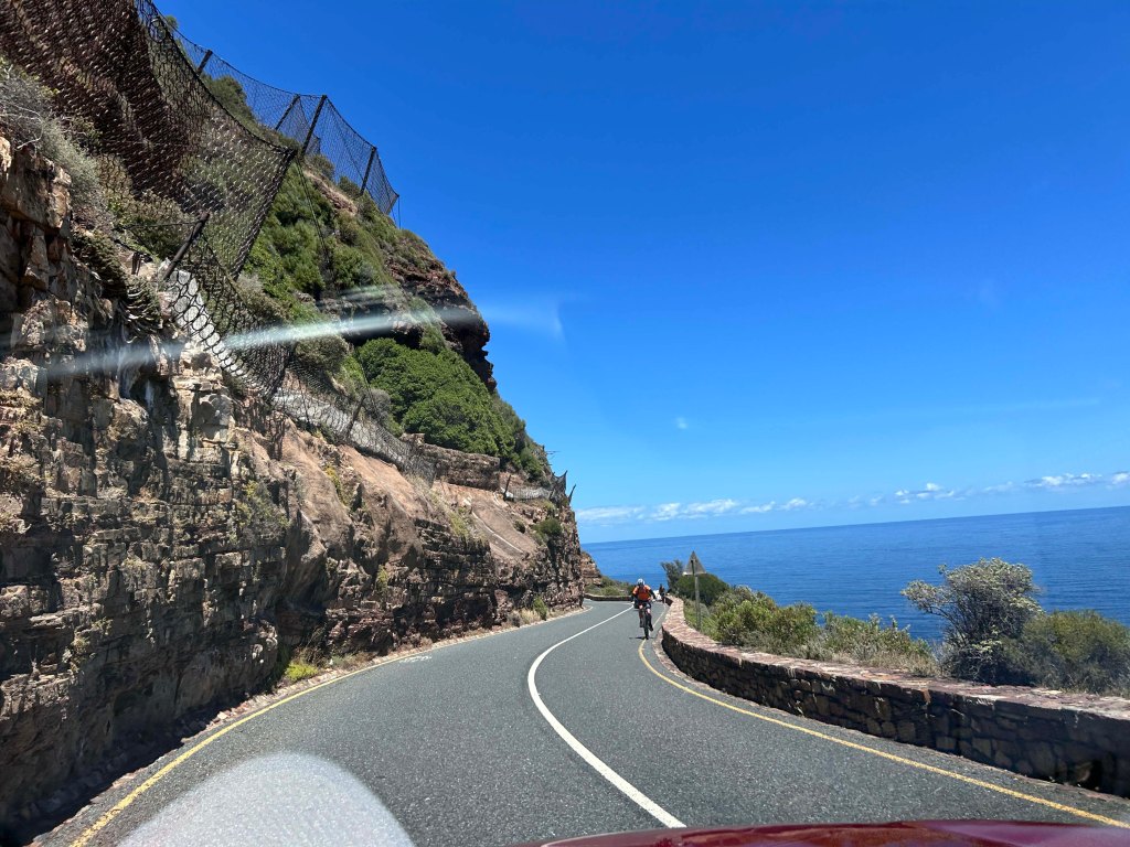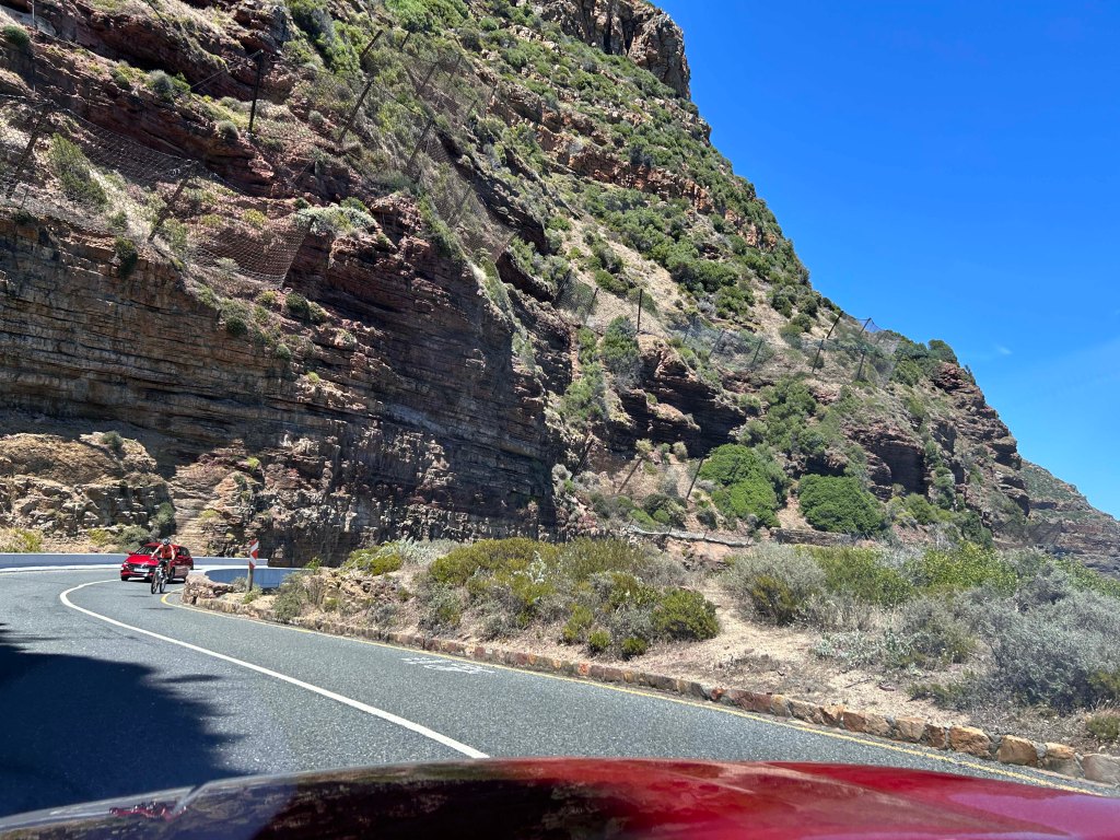 Seine Beliebtheit verdankt der Pass der unglaulichen Landschaft, die man von einer Straße aus sieht, die buchstäblich aus den fast senkrechten Feldwänden der Kap-Halbinsel gehauen wurde. Wir fahren den Pass sehr langsam, um die wunderschöne Aussicht in aller Ruhe genießem zu können.