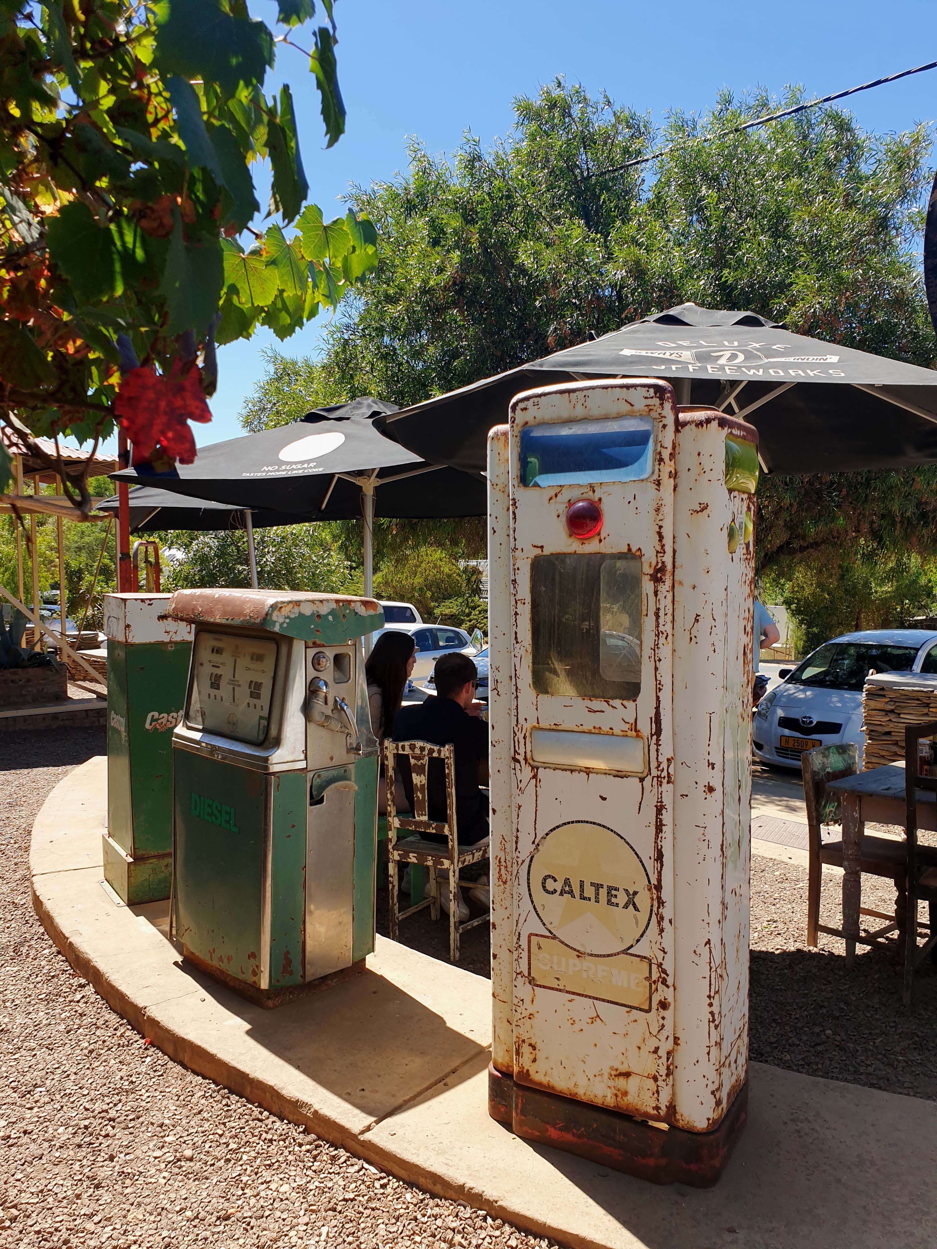 Diesel&Creme ist mit alten Zapfsäulen und Emailschildern dekoriert.