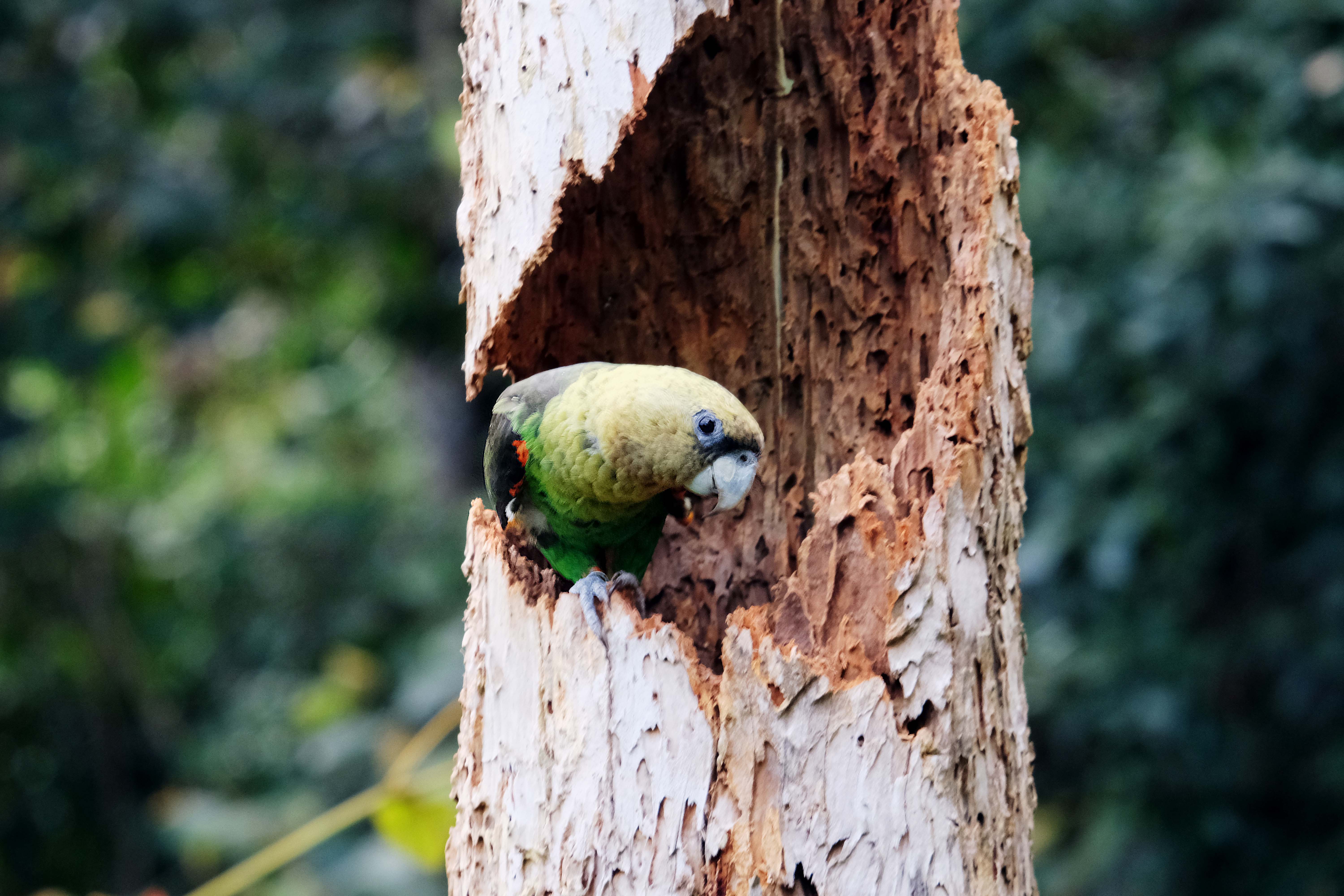 Kaum sind wir im Park angekommen , begrüßen uns auch schon die ersten Gelbbrustaras in der Hoffnung, eine Nuss zu ergattern.