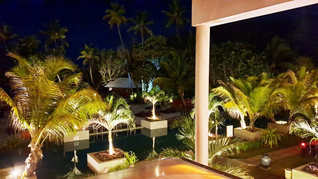 Unser Zimmer liegt im Erdgeschoss und erlaubt einen direkten Strandzugang. Nachts hört man nichts außer Meeresrauschen.