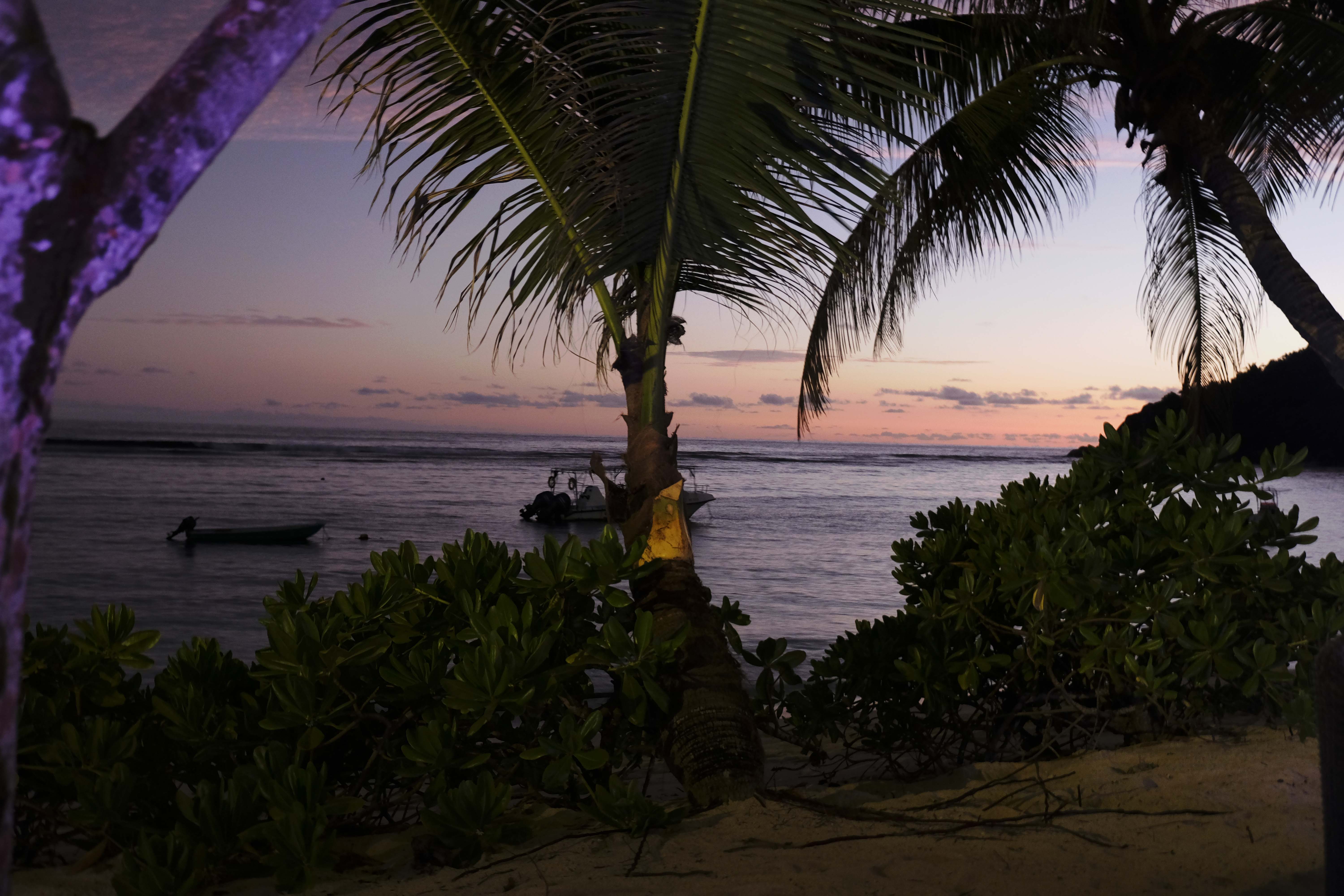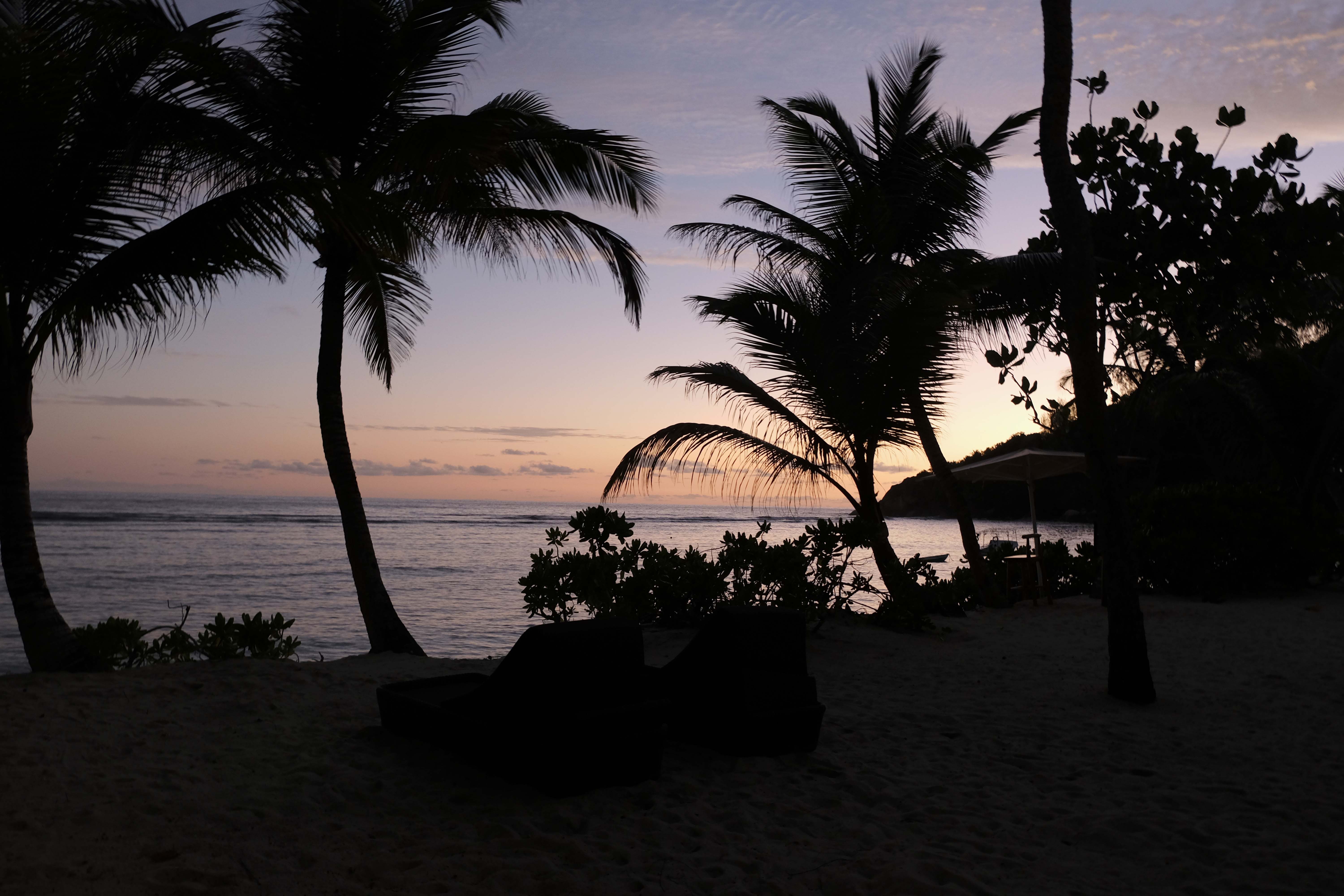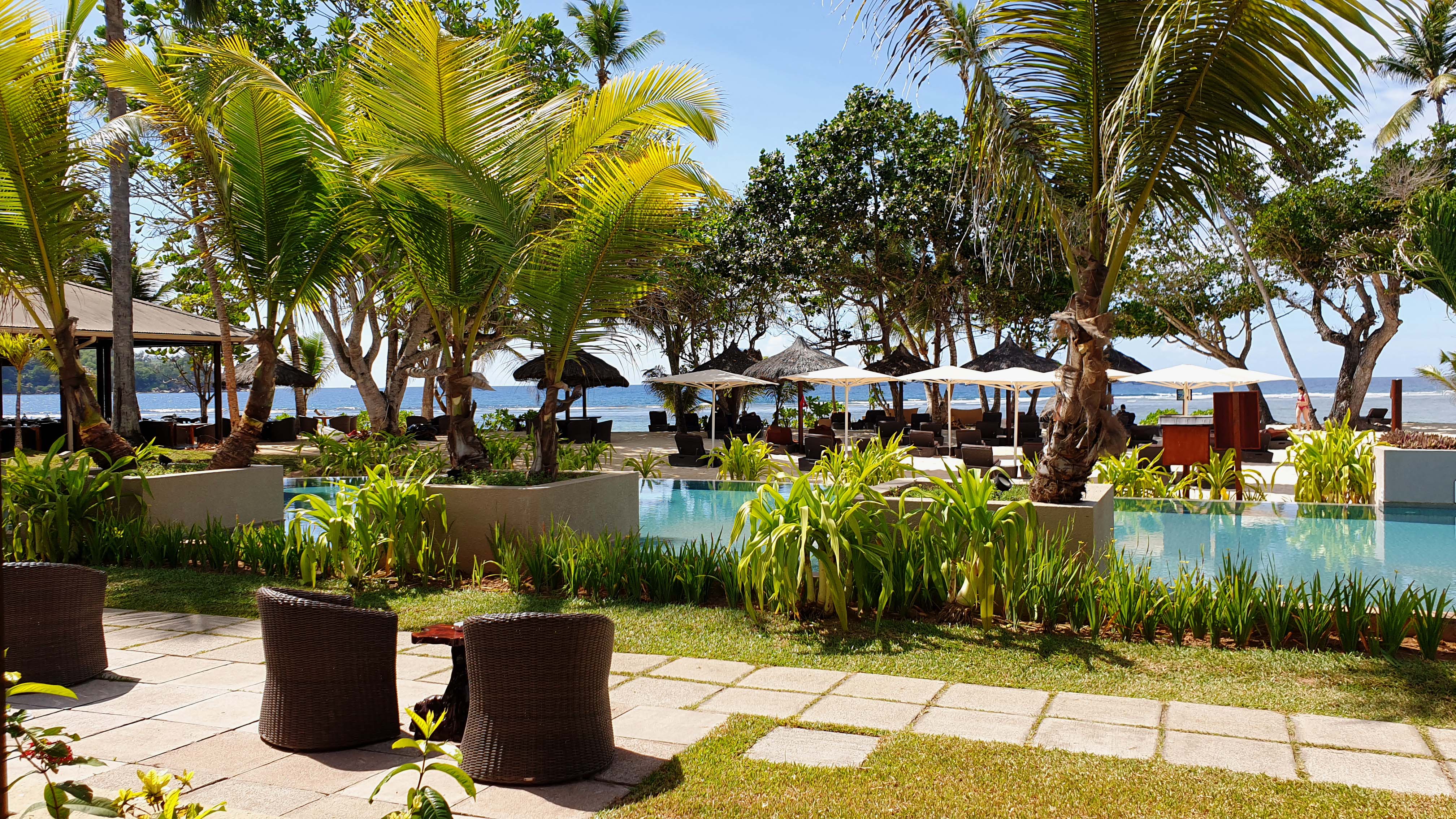 Nur wenige Meter trennen uns vom Strand. Palmen und Takamaka-Bäume sorgen für einen angenehmen, natürlichen Schatten. Der Blick auf das Meer ist grandios, auch wenn hier richtig schönes Baden durch das vorgelagerte Riff maximal bei Flut einigermaßen möglich ist.
