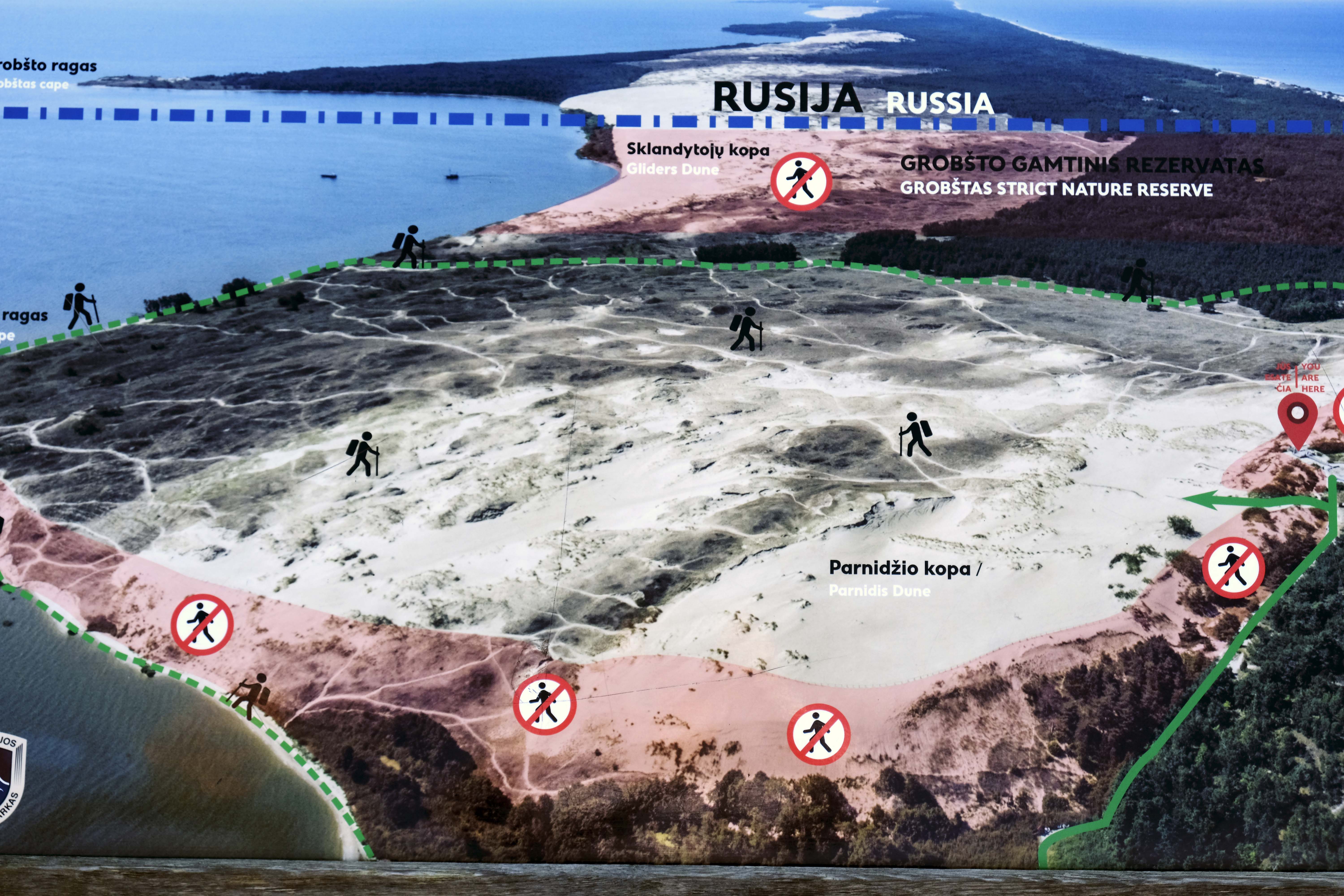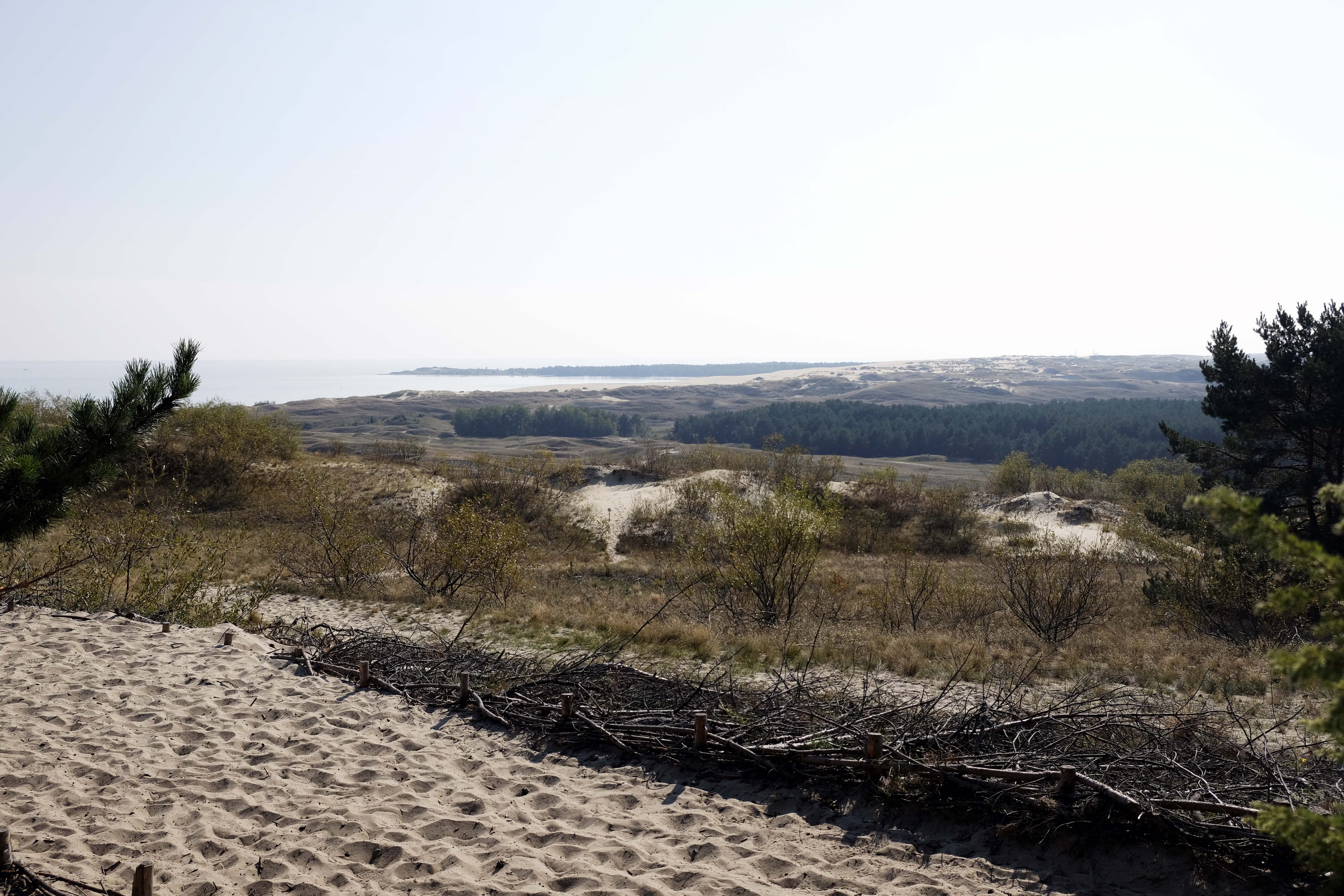 Wir besuchen die etwa 150 Meter hohen Große Düne, die einen herrlichen Panoramablick auf die Dünen, die Ostsee rechts und das Kurische Haff links bietet. Auch kann man in Richtung Süden den Grenzverlauf zur russischen Enklave Kaliningrad erahnen.