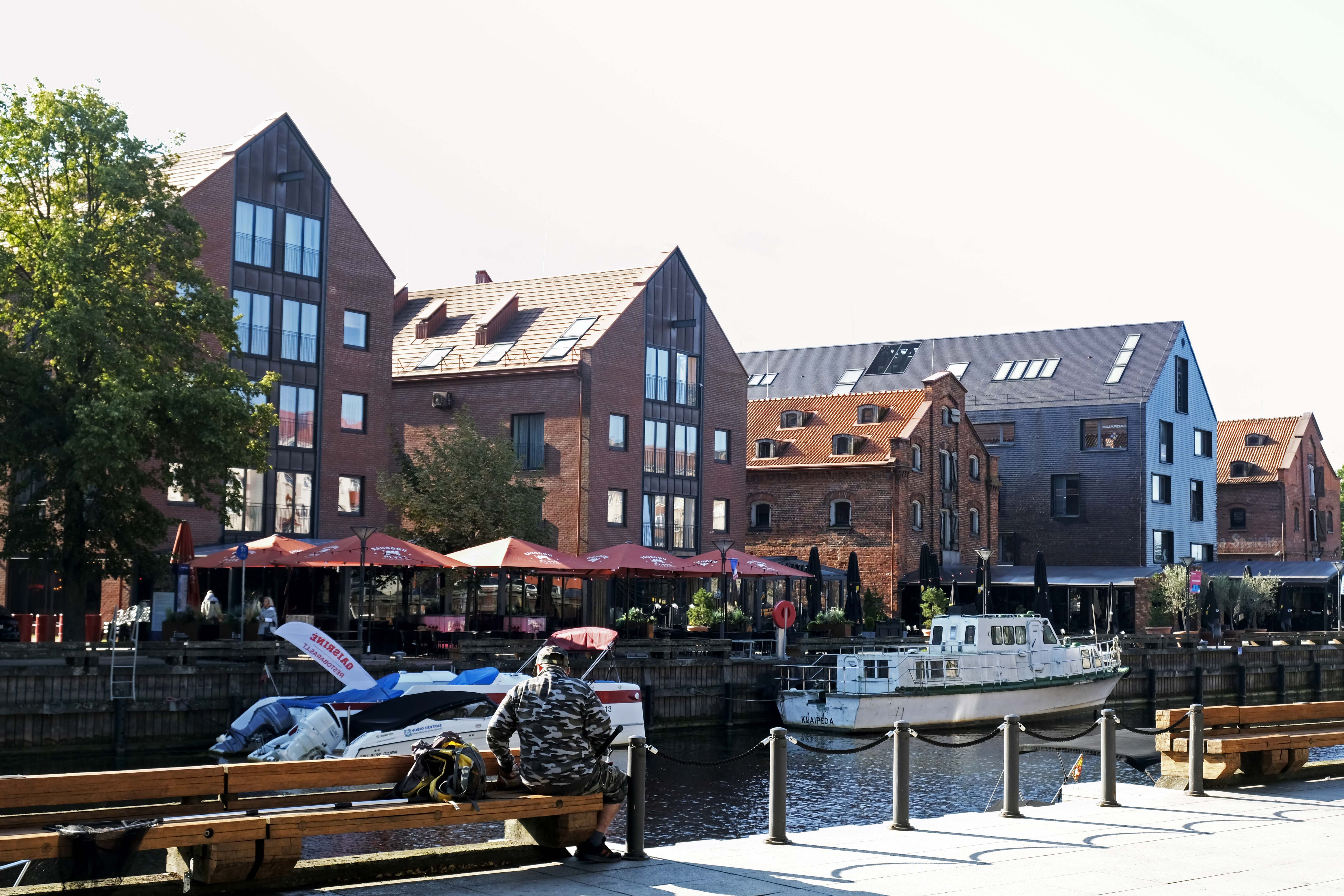 Am Ufer der Dana hat sich ein schickes Ausgehviertel etabliert mit vielen Cafés und dem restaurierten historischen Dreimaster Meridiana, zugleich Wahrzeichen von Klaipeda. 1947 im finnischen Turku gebaut, fungierte das hölzerne Schiff bis 1969 als Segelschulschiff. Nach einer Havarie musste es grundlegend renoviert werden.