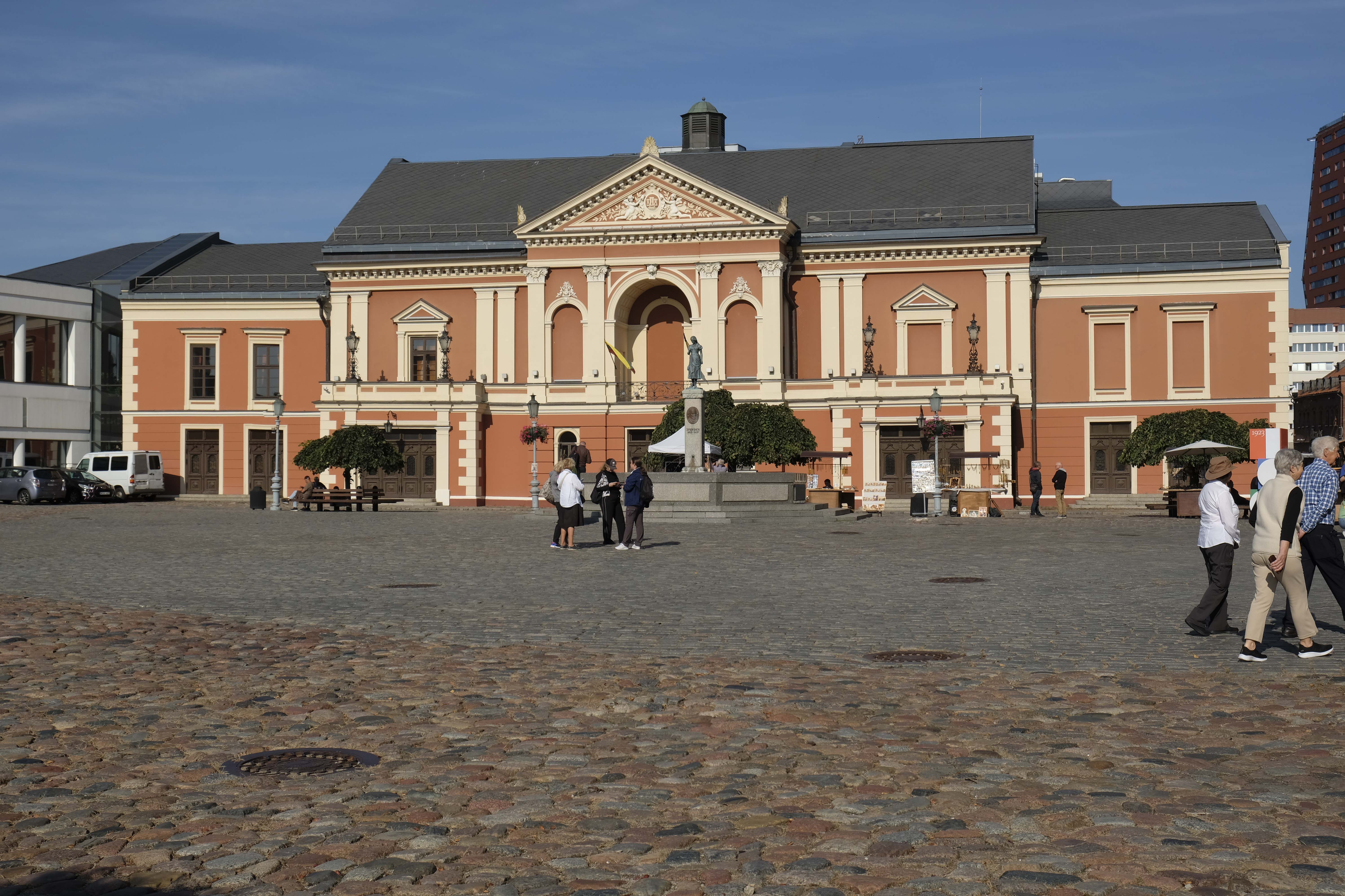 Auf dem Opernplatz befinden sich das Opernhaus mit neuem und altem Teil sowie ein kleiner Markt.