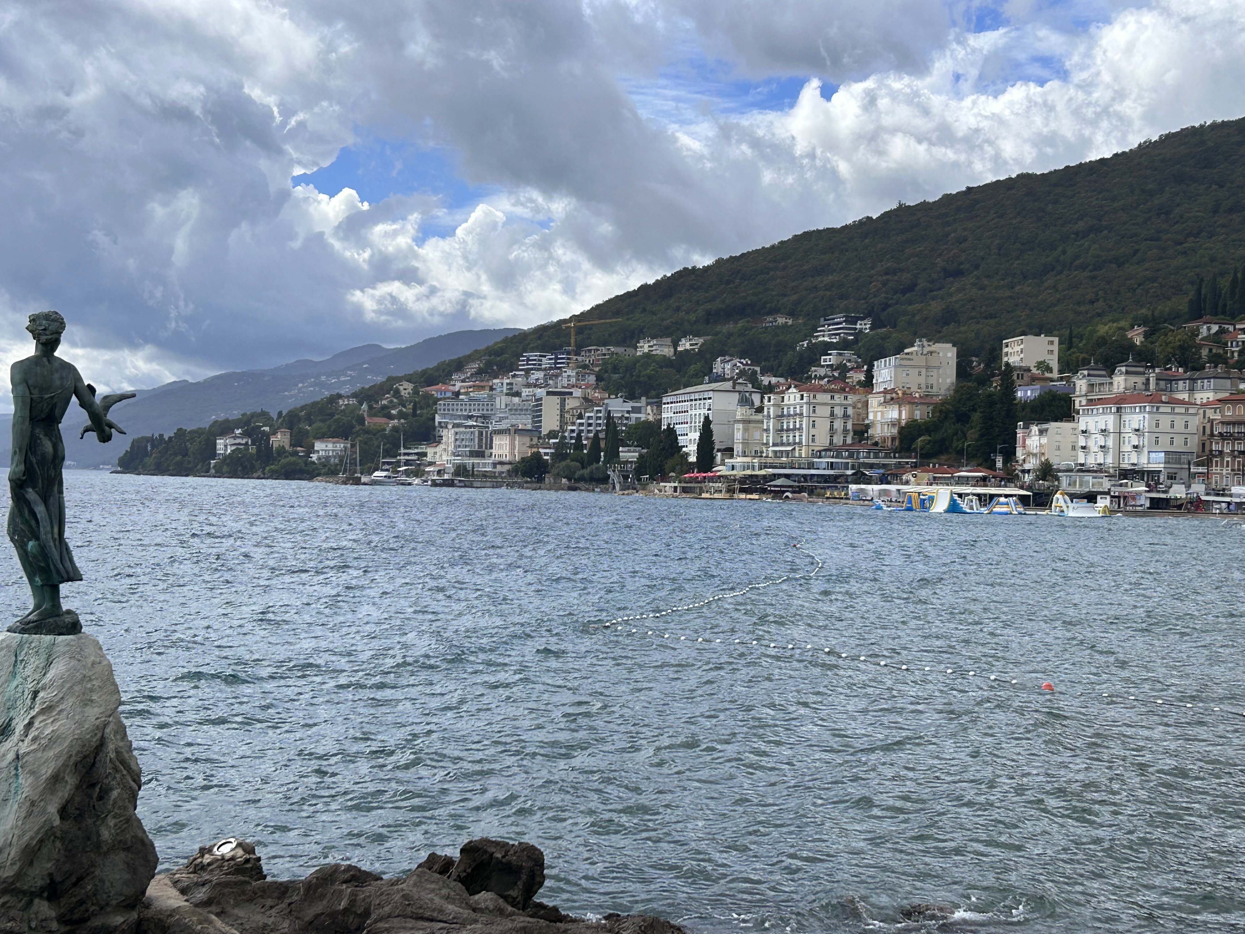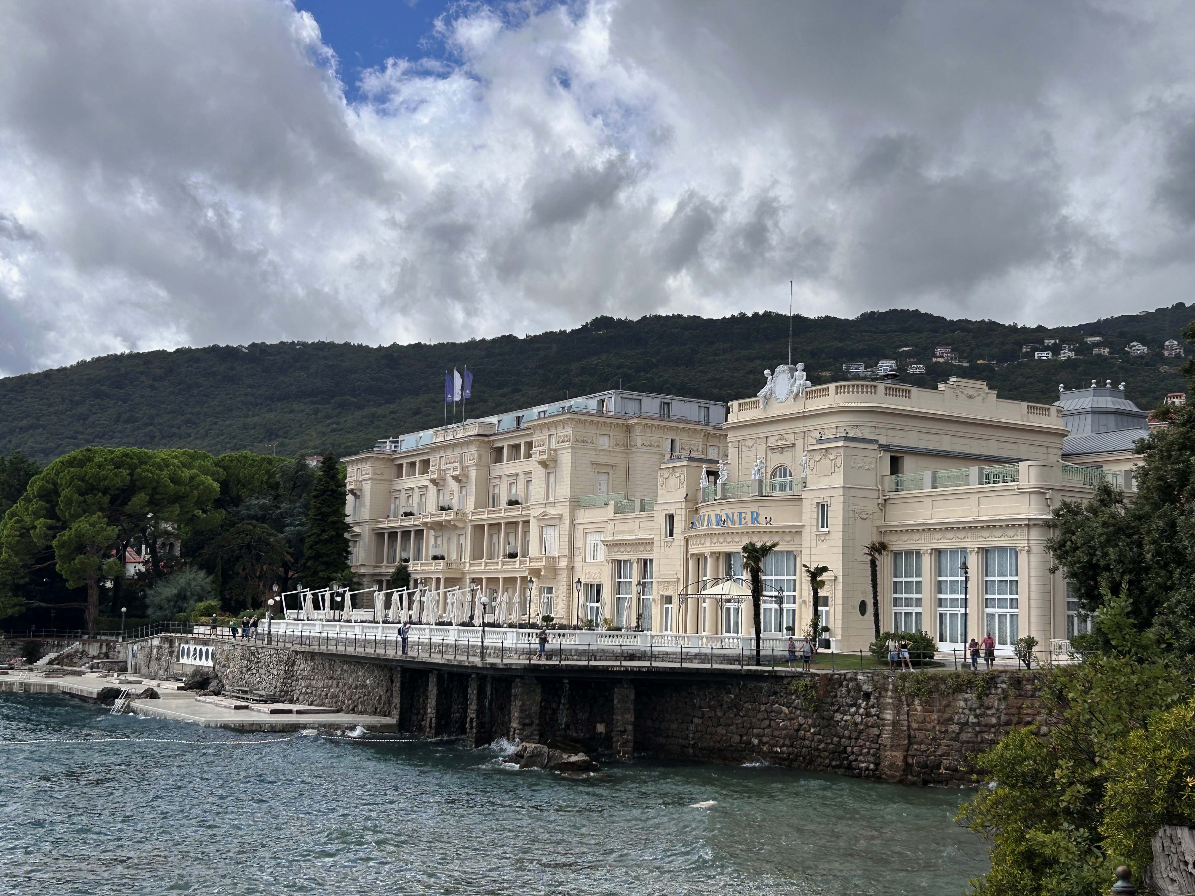 Wir machen einen Ausflug zum benachbarten Küstenort Opatija. Opatija erfuhr seine Blütezeit während der k.u.k. Zeit noch unter dem italienischen Namen Abbazia. In der guten, alten Zeit fuhr der Wiener Adel vor allem im Winter zur Erholung an die Kvarner Riviera.