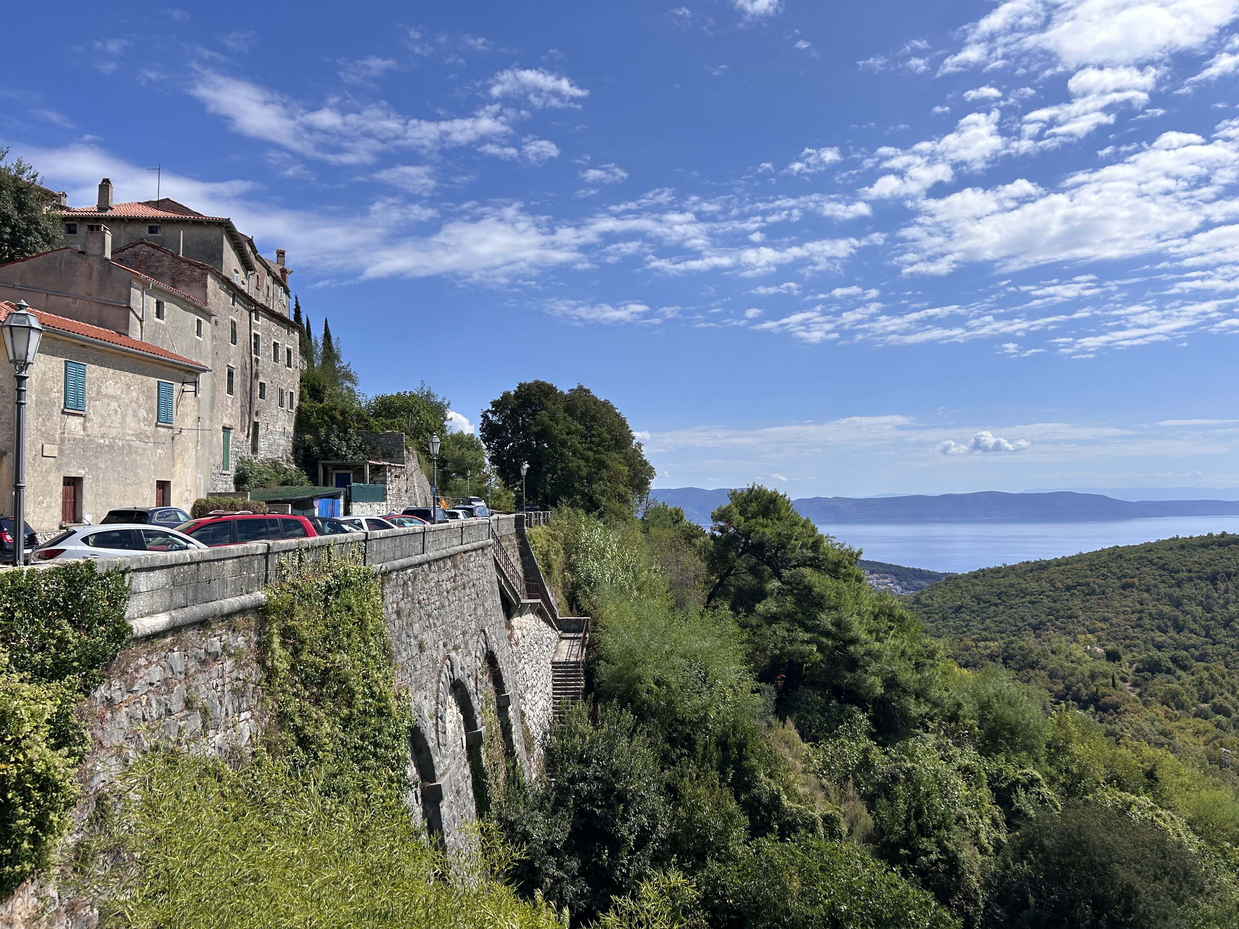 Die Fahrt von Rovinj nach Lovran an der Kvarner Riviera führte uns durchs bergige Hinterland, vorbei an Olivenplantagen, kleinen Bergdörfern mit Blick auf die dahinterliegenden Berge.