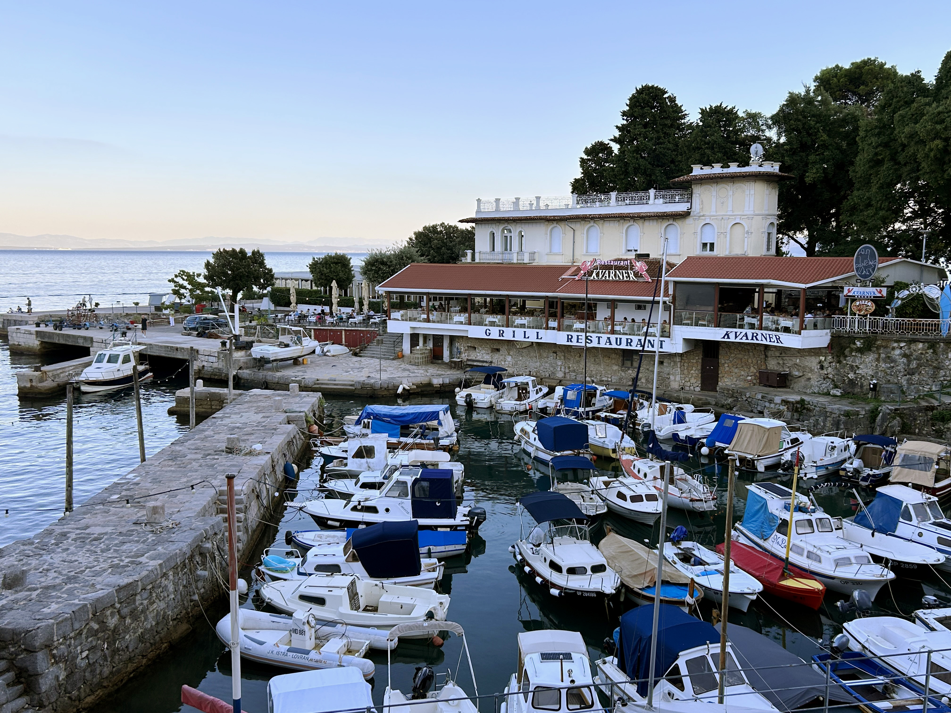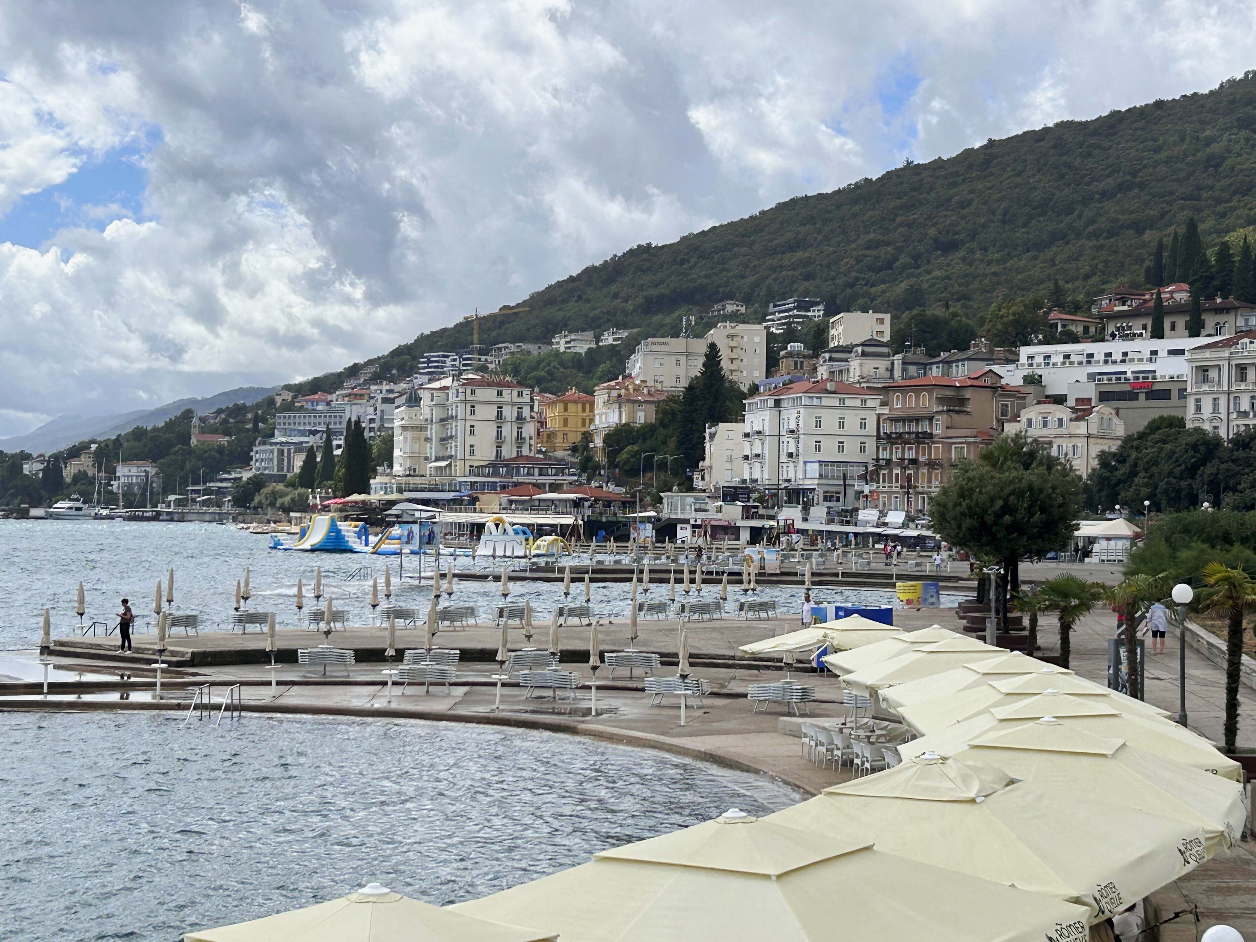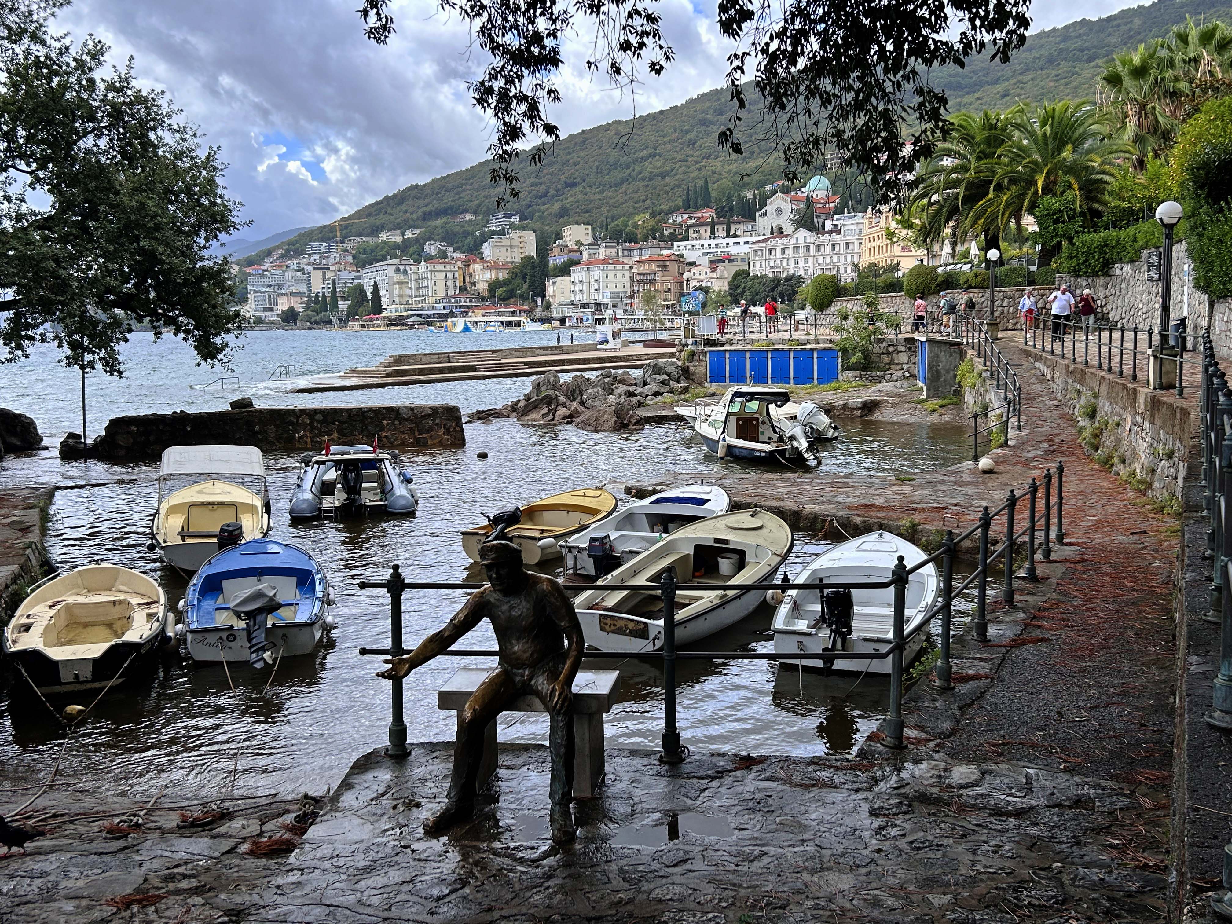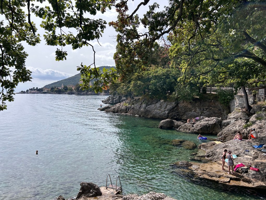 Schließlich erreichen wir den beschaulichen KuK-Ort Lovran („Lorbeerstadt“) und ziehen in die Villa Astra in genialer Lage am Uferweg „Lungomare“, der ca. 17km von Lovran über Opatja bis nach Volosko (kurz vor Rijeka) verläuft.