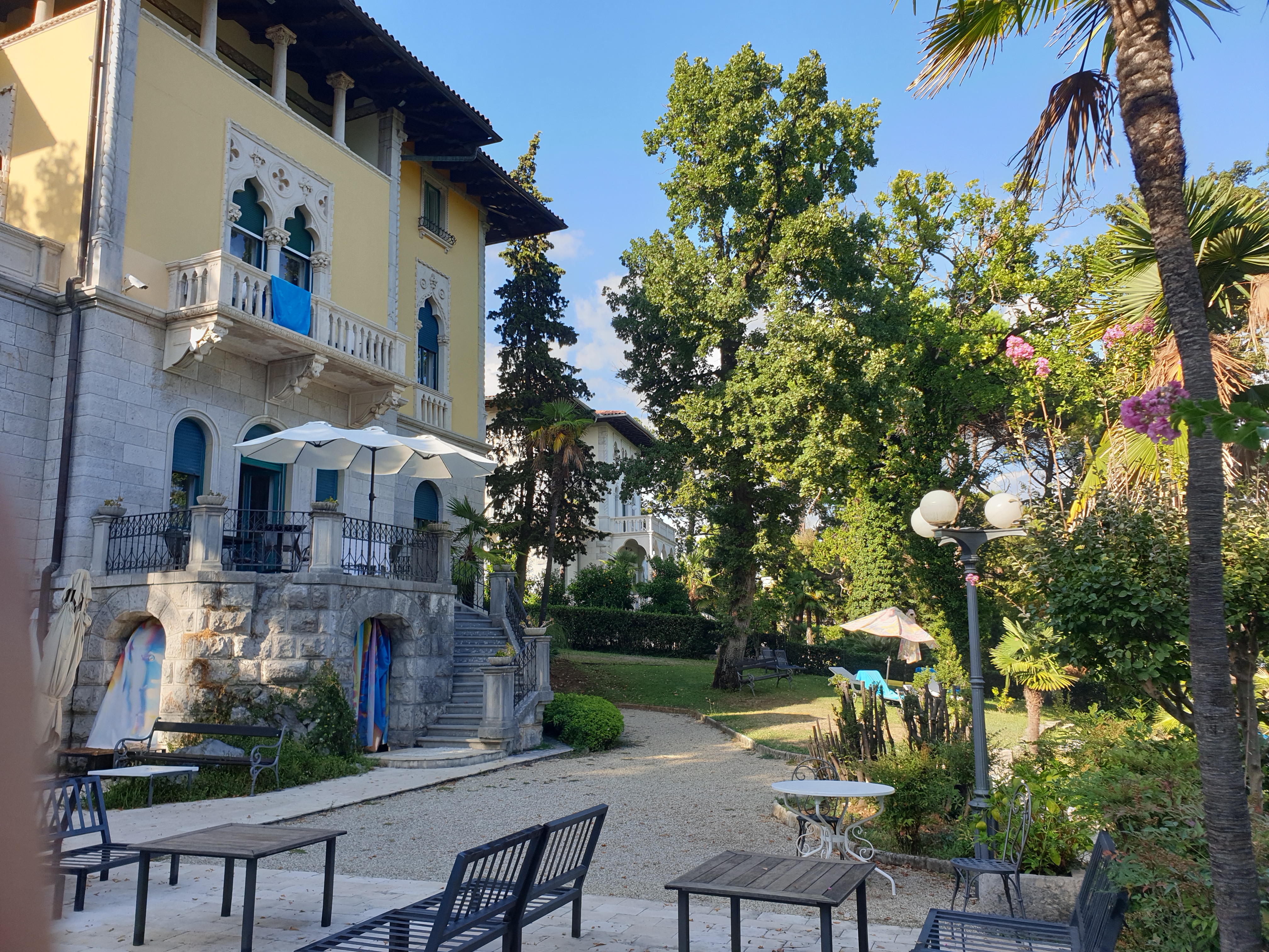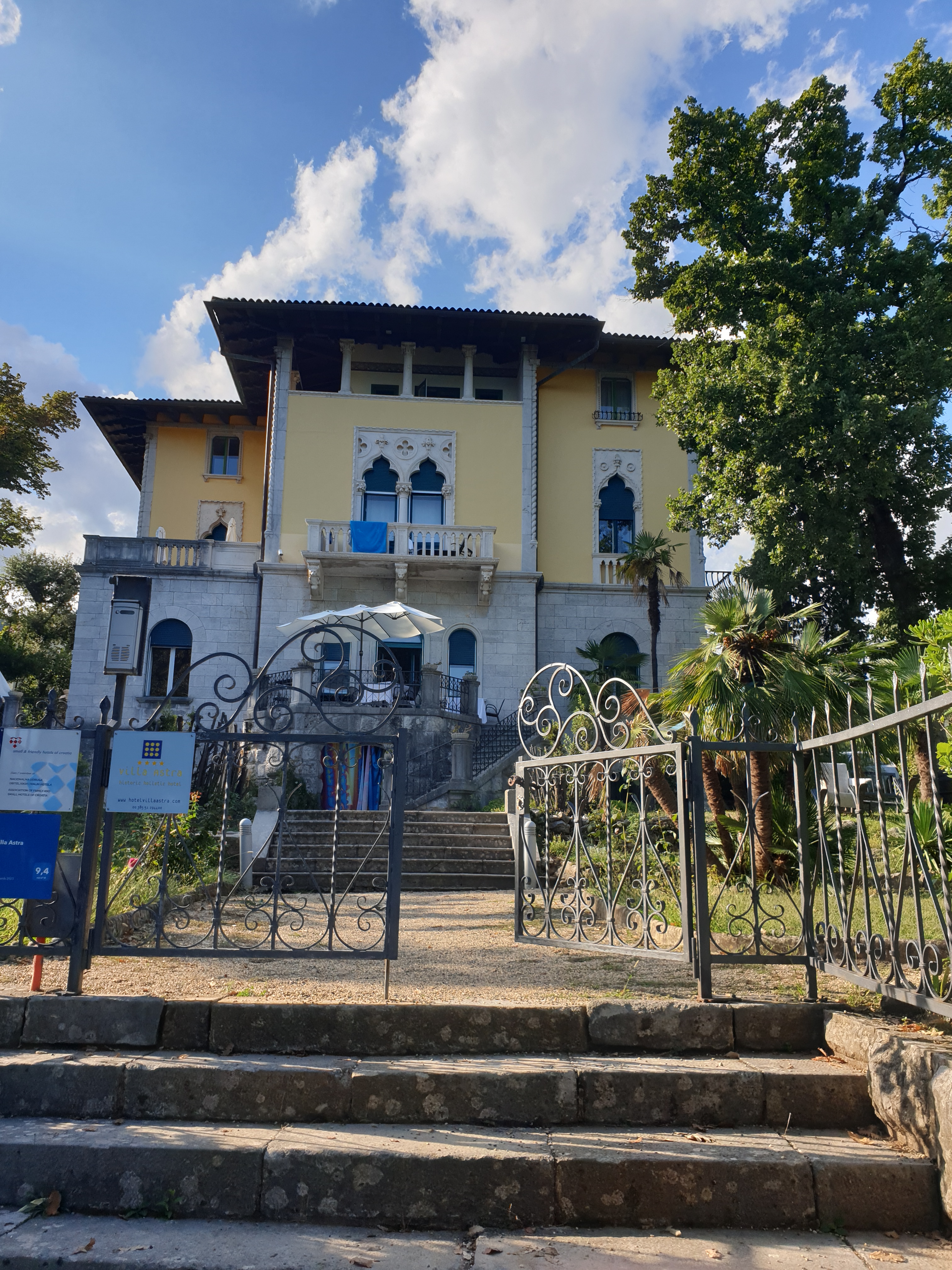 An diesem Lungomare zwischen Lovran und Opatja befindet sich unser Hotel, die imposante Fin-de-Siécle Villa Astra, in der wir die nächsten Tage verbringen. Die Villa stellt ein Gesamtkunstwerk dar: Architektur, individuelle Einrichtung und der ausgezeichnete Service harmonieren perfekt. Die Betreuung durch den Hausherren ist einzigartig und reicht von Informationen zur Geschichte über Beratung zur optimalen Erholung bis zu excellenten Restaurant Tipps.