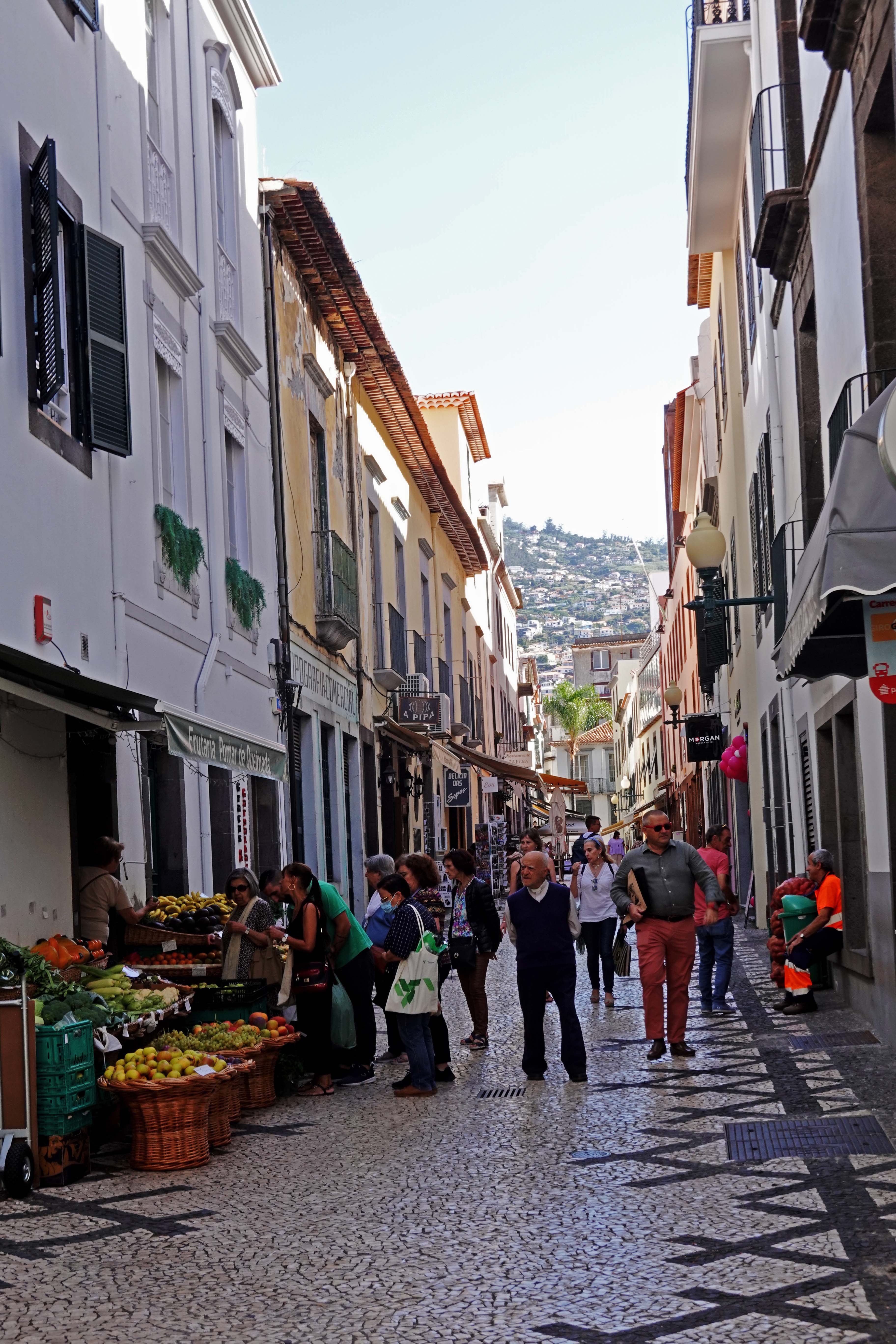 Die Hauptstadt Funchal ist auf Tourismus ausgerichtet, seit der Flughafen Anfang der 60er Jahre eröffnet wurde. Sie lockt mit vielen Attraktionen. Neben den herrlichen Parkanlagen in Monte, die wir gestern besichtigt haben, gehören ein Besuch der Kathedrale, der Altstadt (Zona Velha) und der Markthalle zum Pflichtprogramm. Wir starten an der wunderschönen Markthalle, der Mercado dos Lavradores , die sich in der Altstadt Zona Velha befindet.
