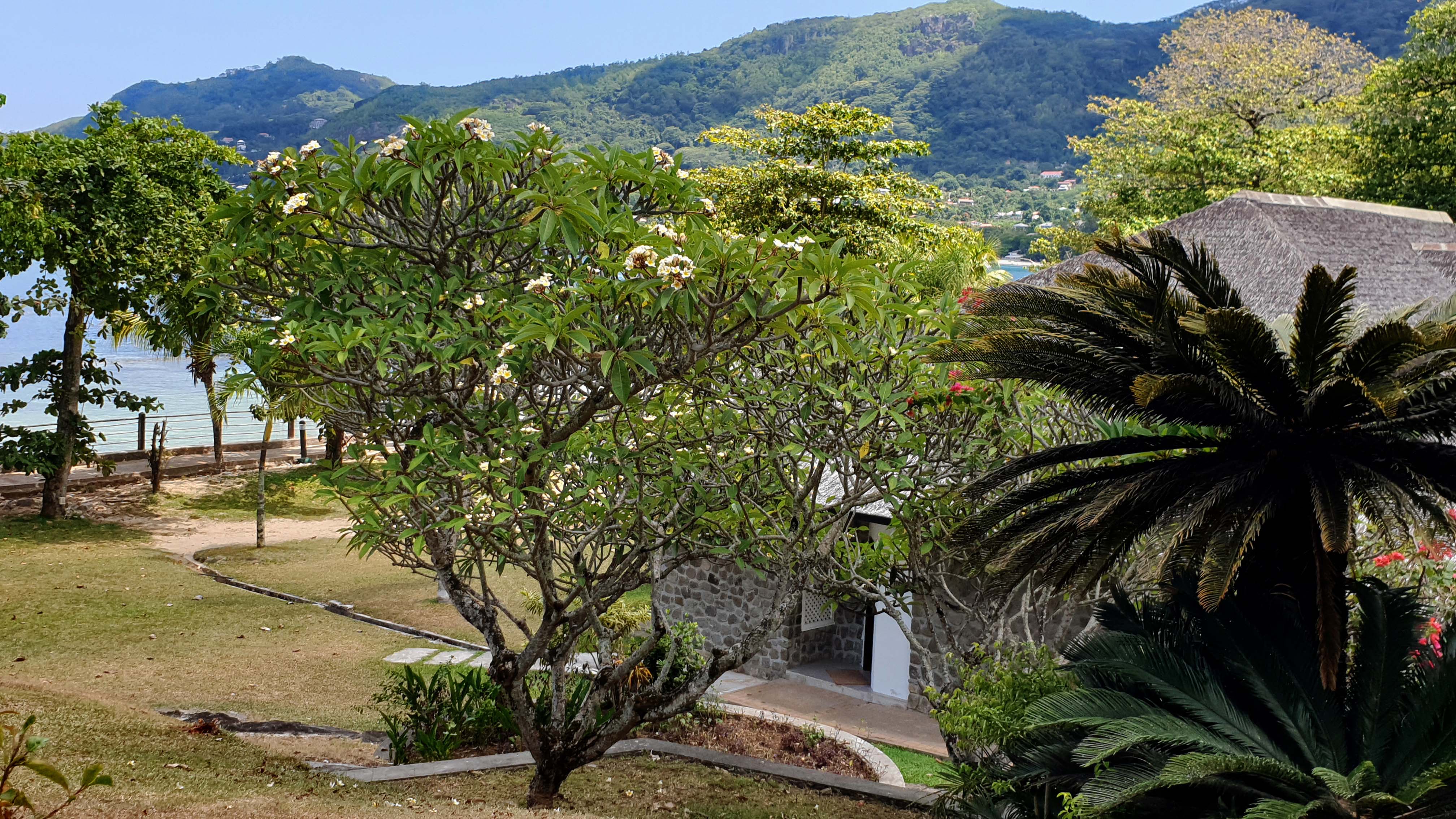 Der Blick von unserem Balkon auf die einmalige Bucht von Beau Vallon.