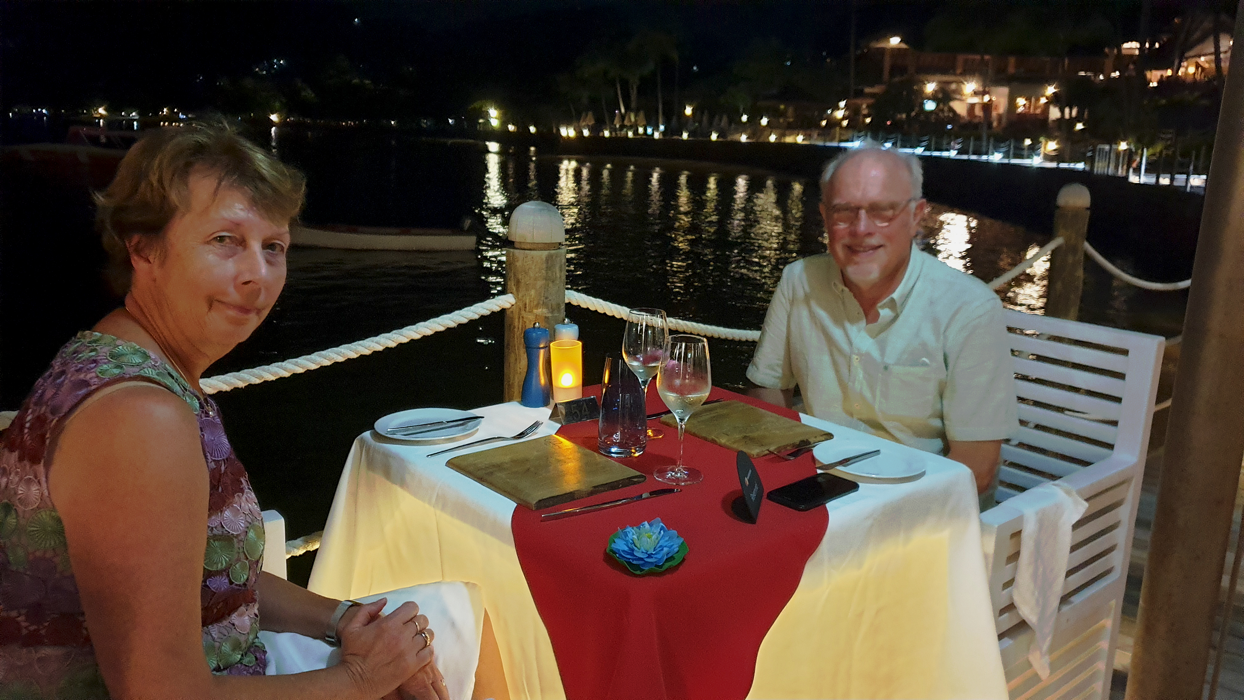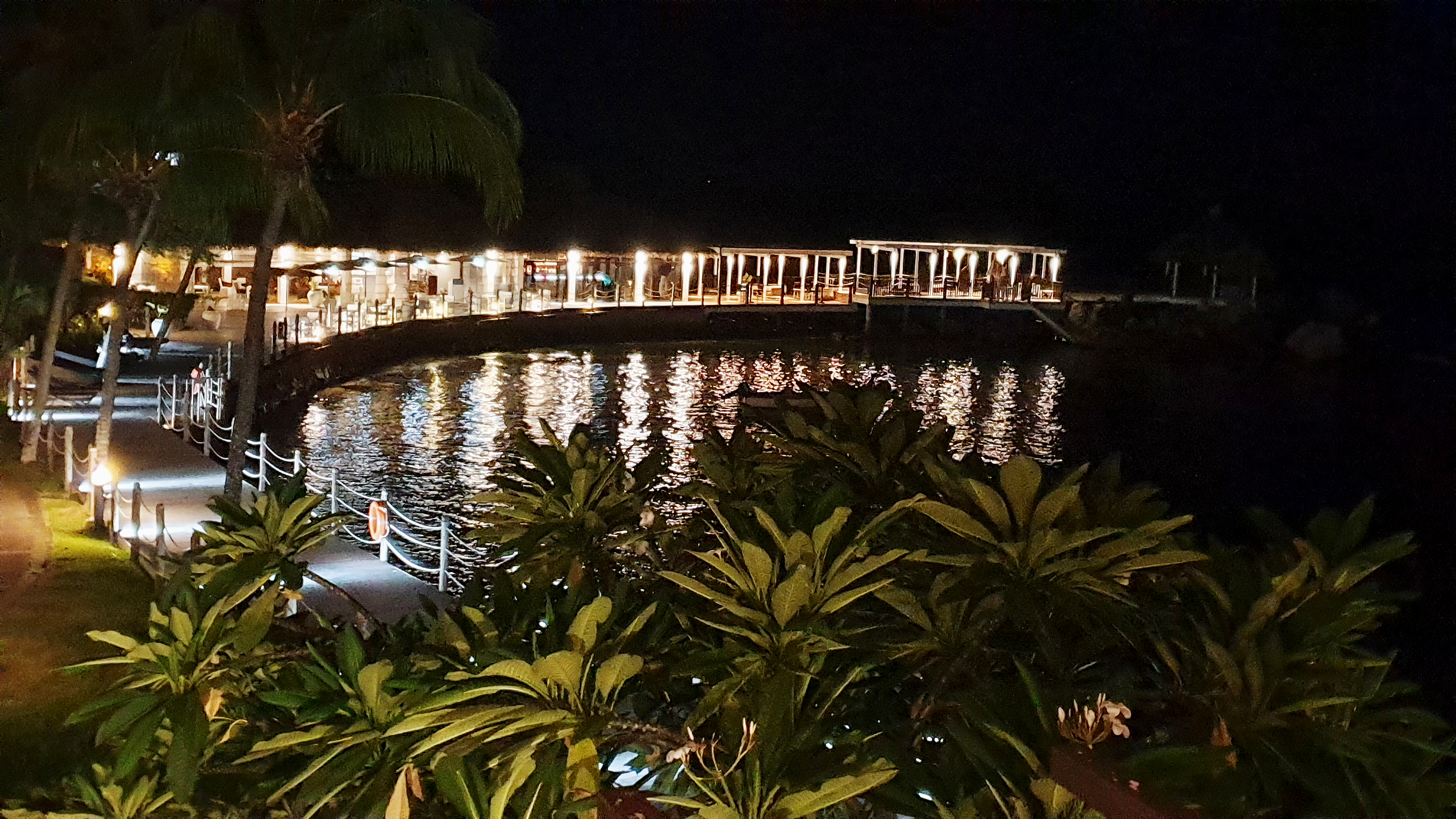 „Paris-Seychellen“ mit der Sunset-Bar ist eindeutig unser Lieblings- restaurant. Man sitzt unter freiem Himmel direkt am Wasser – schöner geht es nicht. Das Essen und auch der Wein sind sehr gut auch wenn wir uns beim letzteren wegen der sehr hohen Preise etwas zurückhalten.