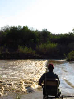 Jabulani hat uns die vier Tage quer durch das Reservat geführt. Ob Flüsse, Schlamm- oder Geröllpiste, nichts konnte ihn stoppen, um uns alle Tiere nahezubringen und um uns die schönsten Ecken des Game-Resorts zu zeigen. Beeindruckt hat uns seine detaillierte Kenntnisse der Vogelwelt. Immer wartete er nicht nur mit genauen Bezeichnungen wie Yellow Brested, Red Headed, Male or Female usw. auf, sondern er konnte sogar die Rufe nachmachen. Nur das Alter der Vögel konnte er nicht immer angeben.