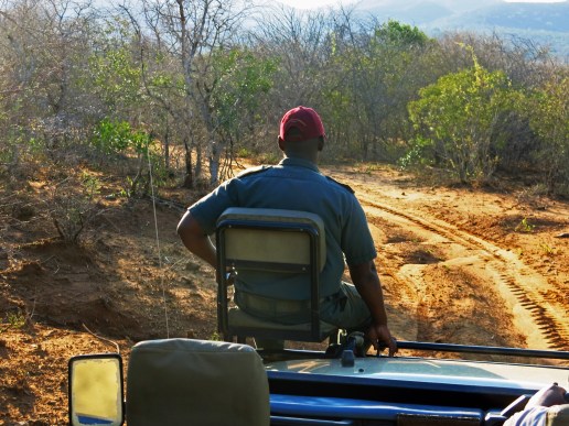 Die Mkuze Falls Game Lodge ist der Höhepunkt unserer Reise. Es ist ein Private Game Resort. Was heißt das? Morgens weckt uns um 04:30 Uhr unser Ranger Jabulani. Um kurz vor 05:00 Uhr gibt es Kaffee und Gebäck und dann starten wir zu unserem Morning-Drive, ausgestattet mit Fernglas, Fotoapparat, Hut, Sonnencreme, Jacke und Sonnenbrille. Und los geht’s. Wer noch nicht wach ist, wird in kürzester Zeit durch den Achterbahn-Kurs geweckt.