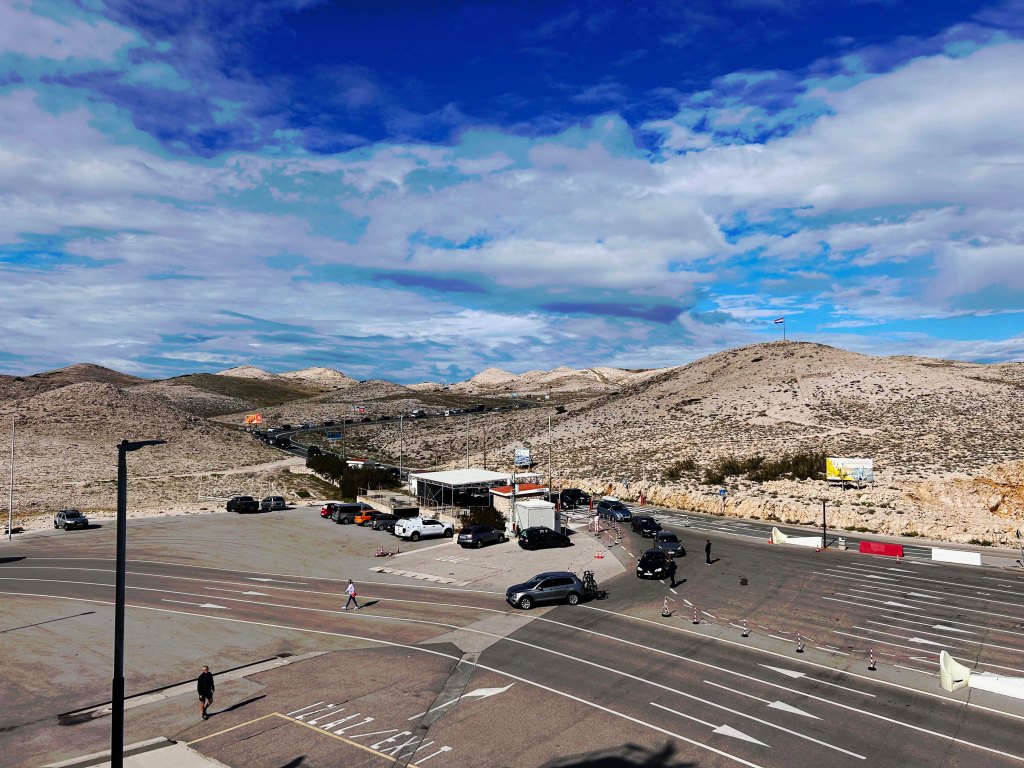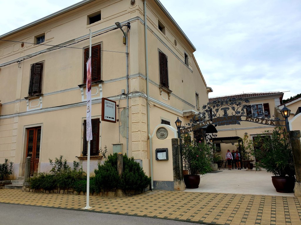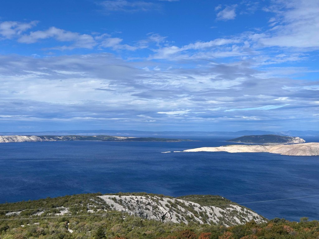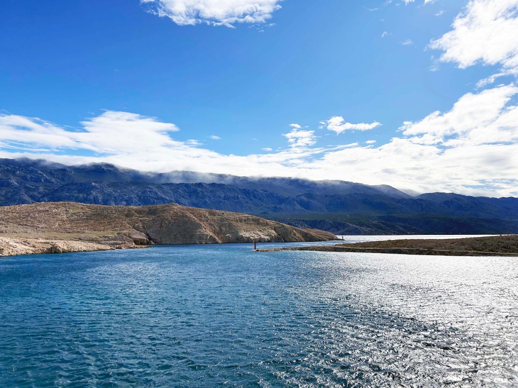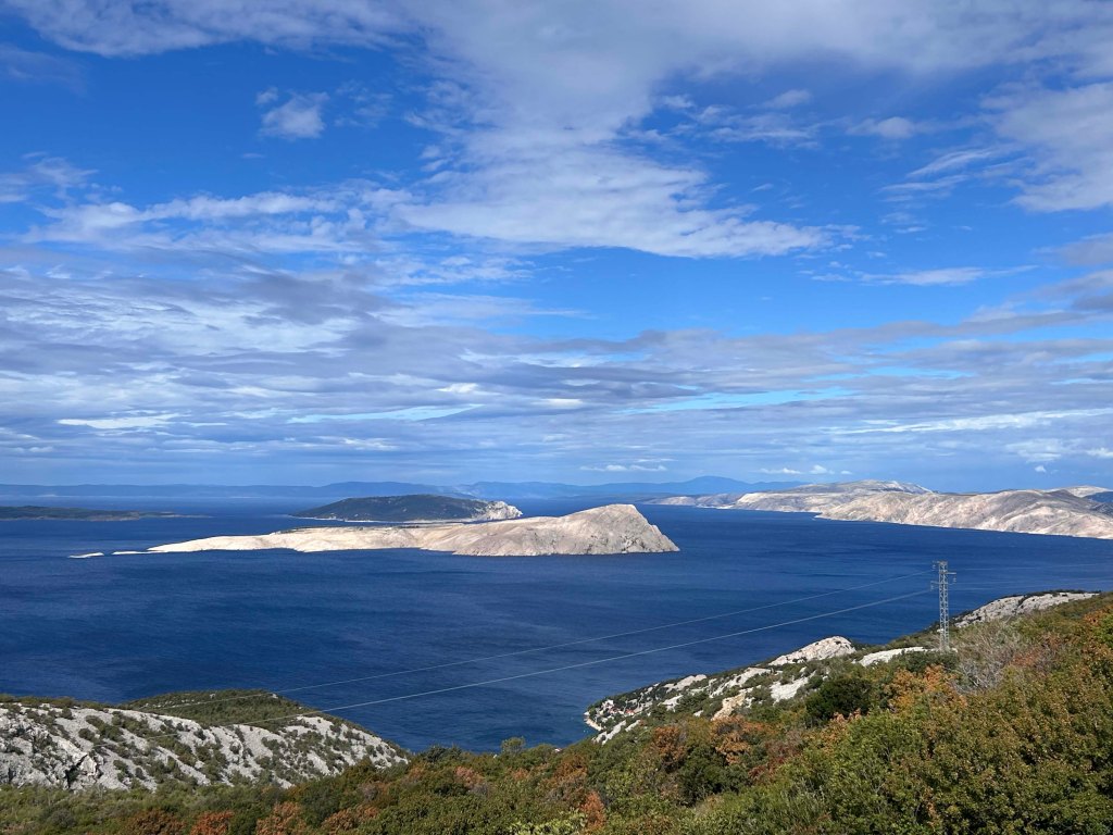 Wir fahren bei sehr windigem, aber schönem Wetter nach Motovun. Zunächst geht es mit der Fähre zum Festland und dann an der Küste entlang bis Rijeka, ehe wir ins Landesinnere Richtung Motovun abbiegen.