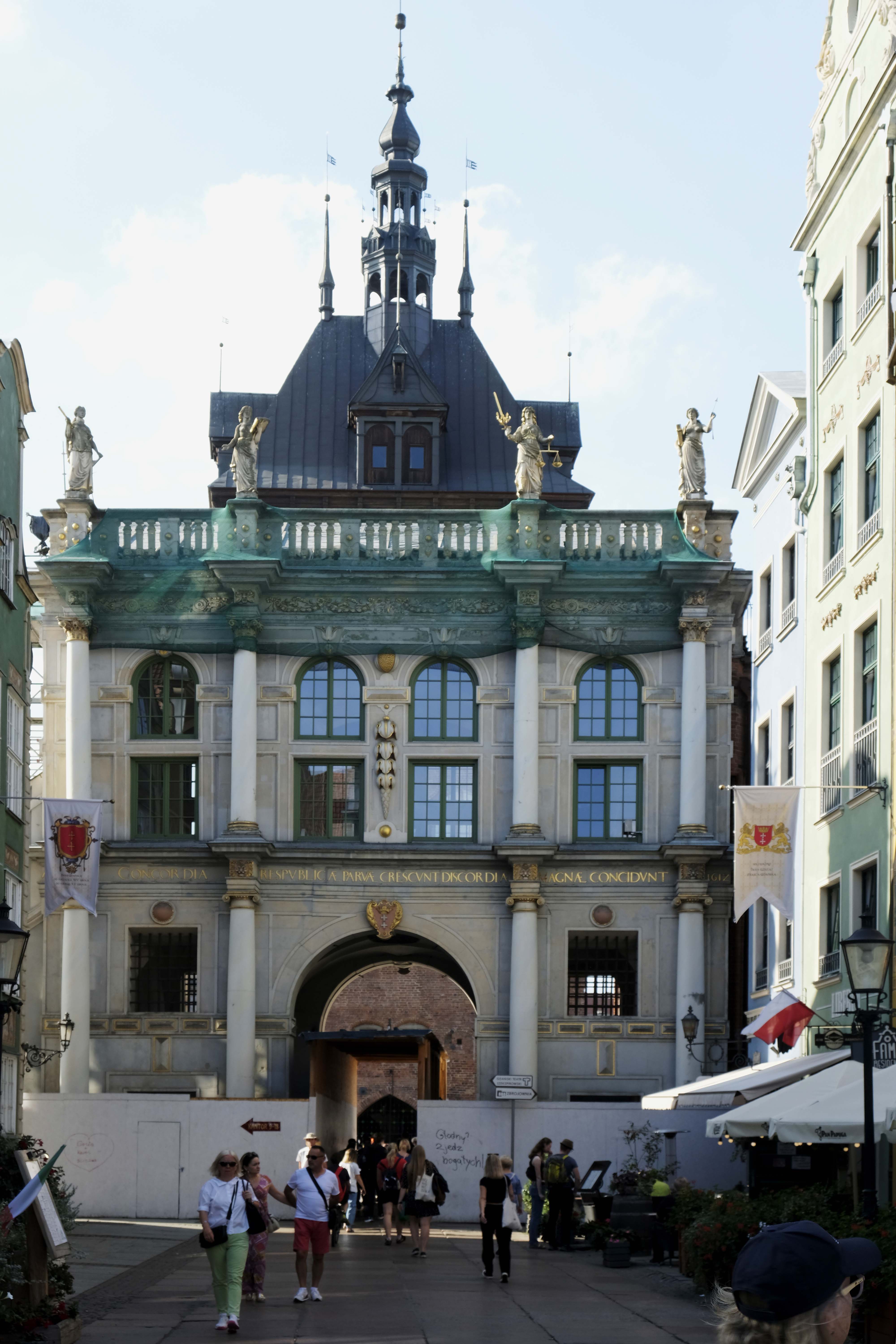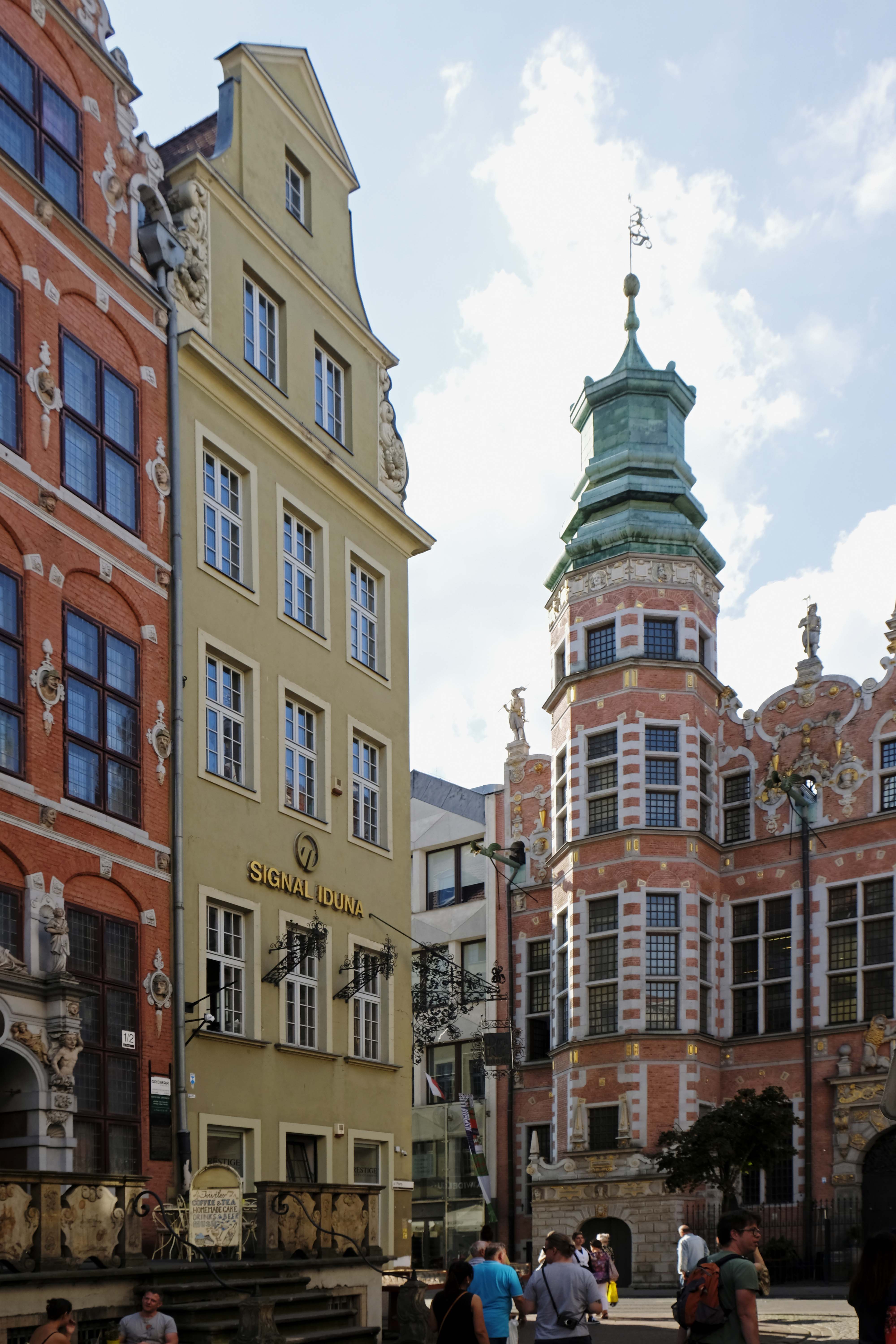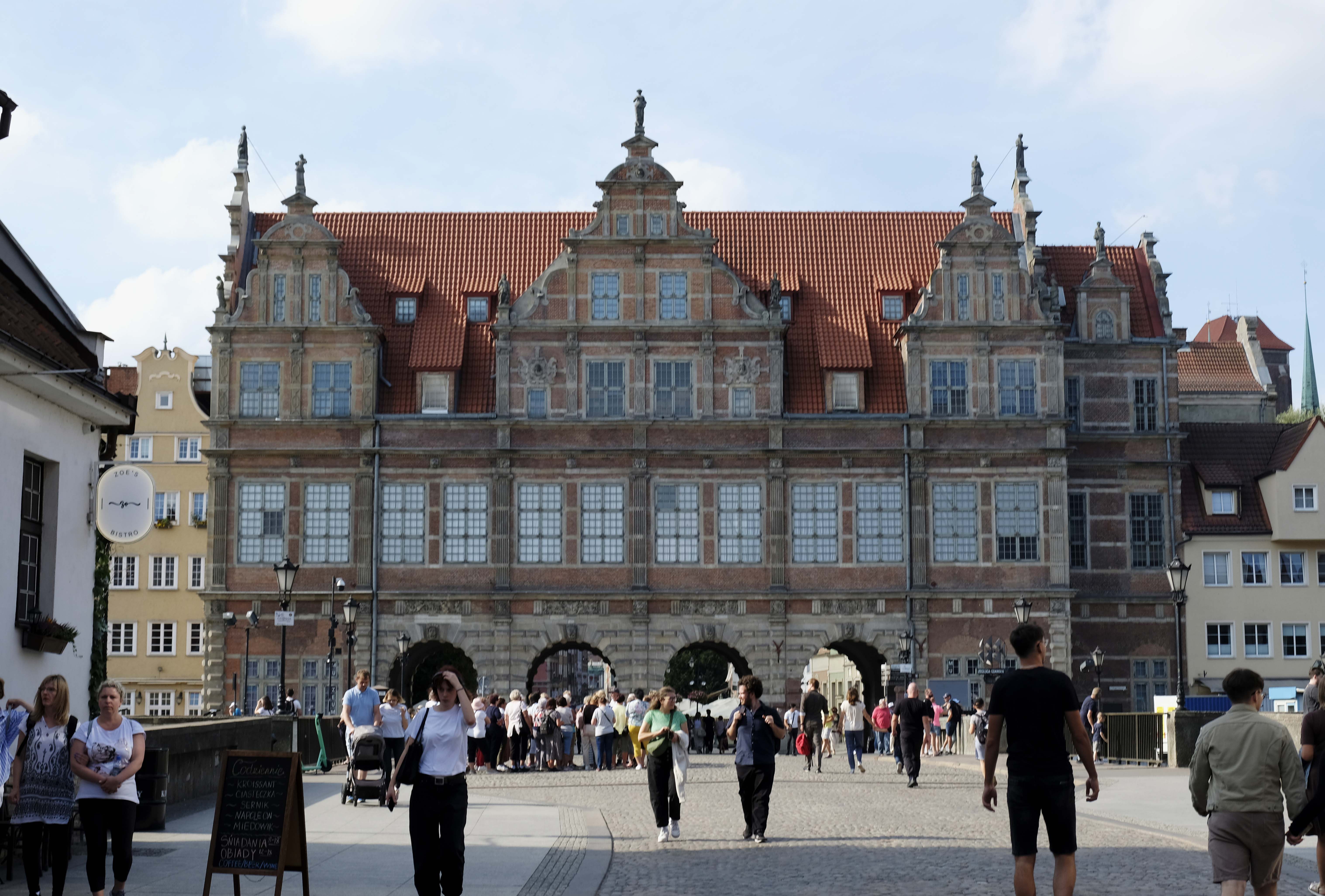 Der schöne Kaufmannspalast des Artushofes aus dem 15. Jahrhundert liegt hinter dem langen Markt.