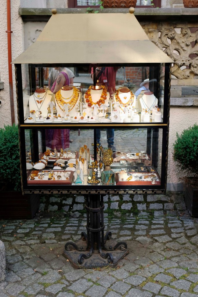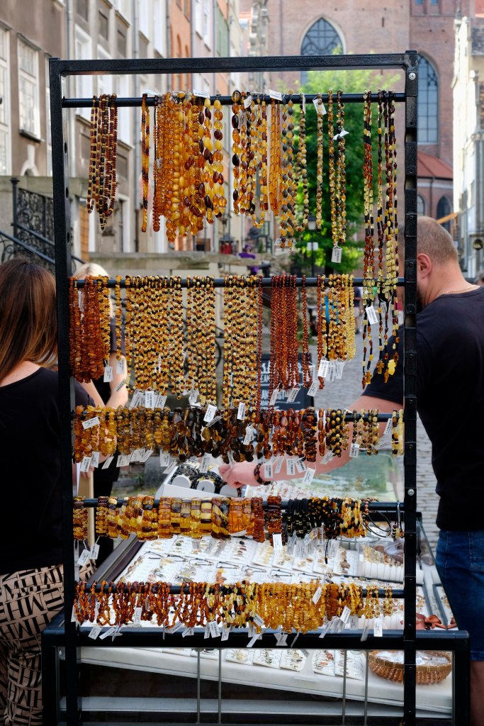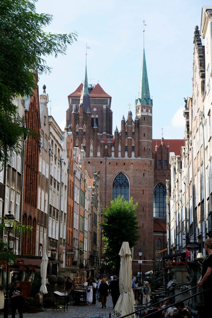 Durch ein weiteres überbautes Tor gelangt man in die kleine mittelalterliche Gasse Mariacka. Sie wird von zahlreichen Bernsteinläden gesäumt. Besonders schön sind hier auch die Ensemble der hanseatischen Giebel ausgebaut und dekoriert. Am Ende der Straße gelangt man zur Marienkirche.
