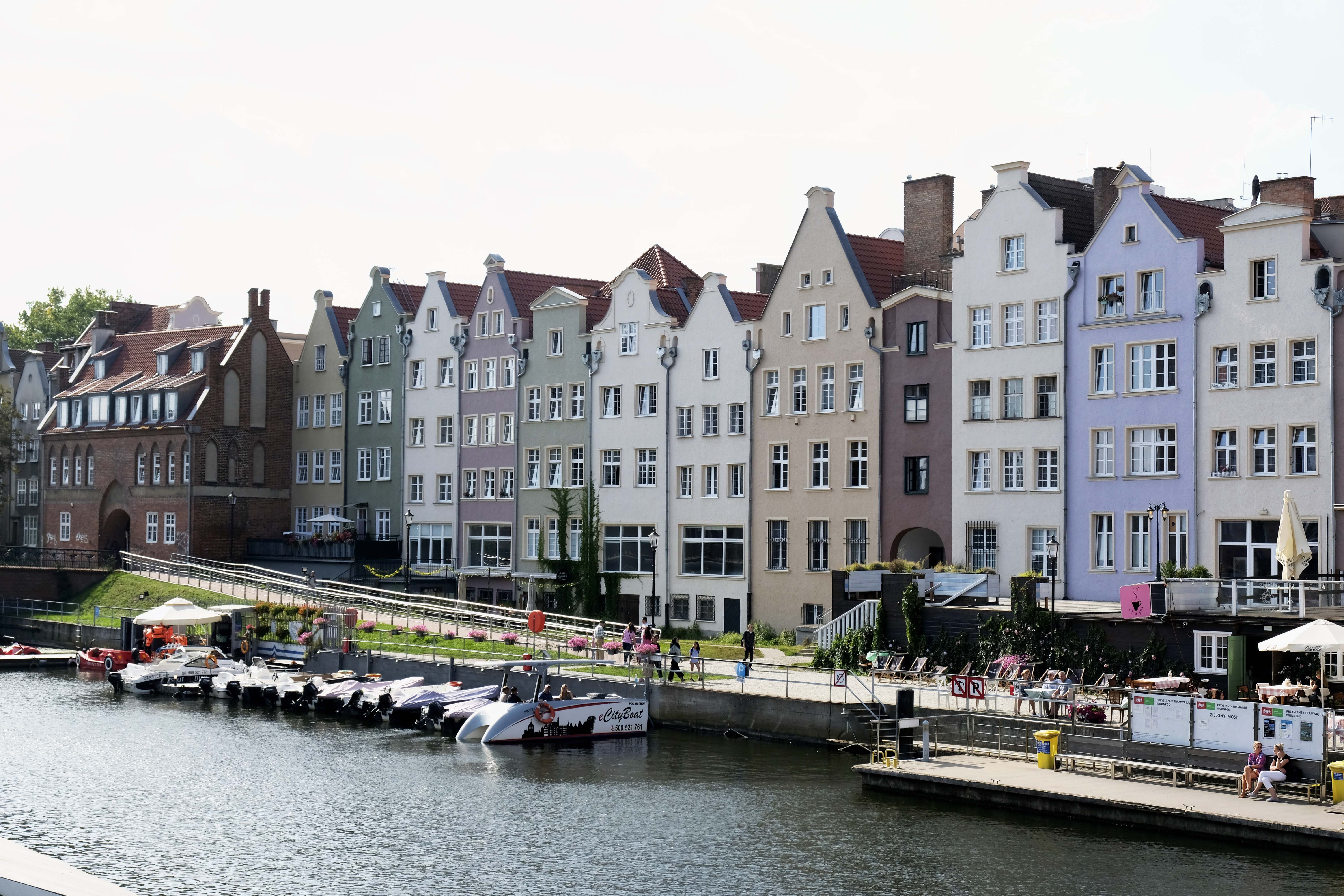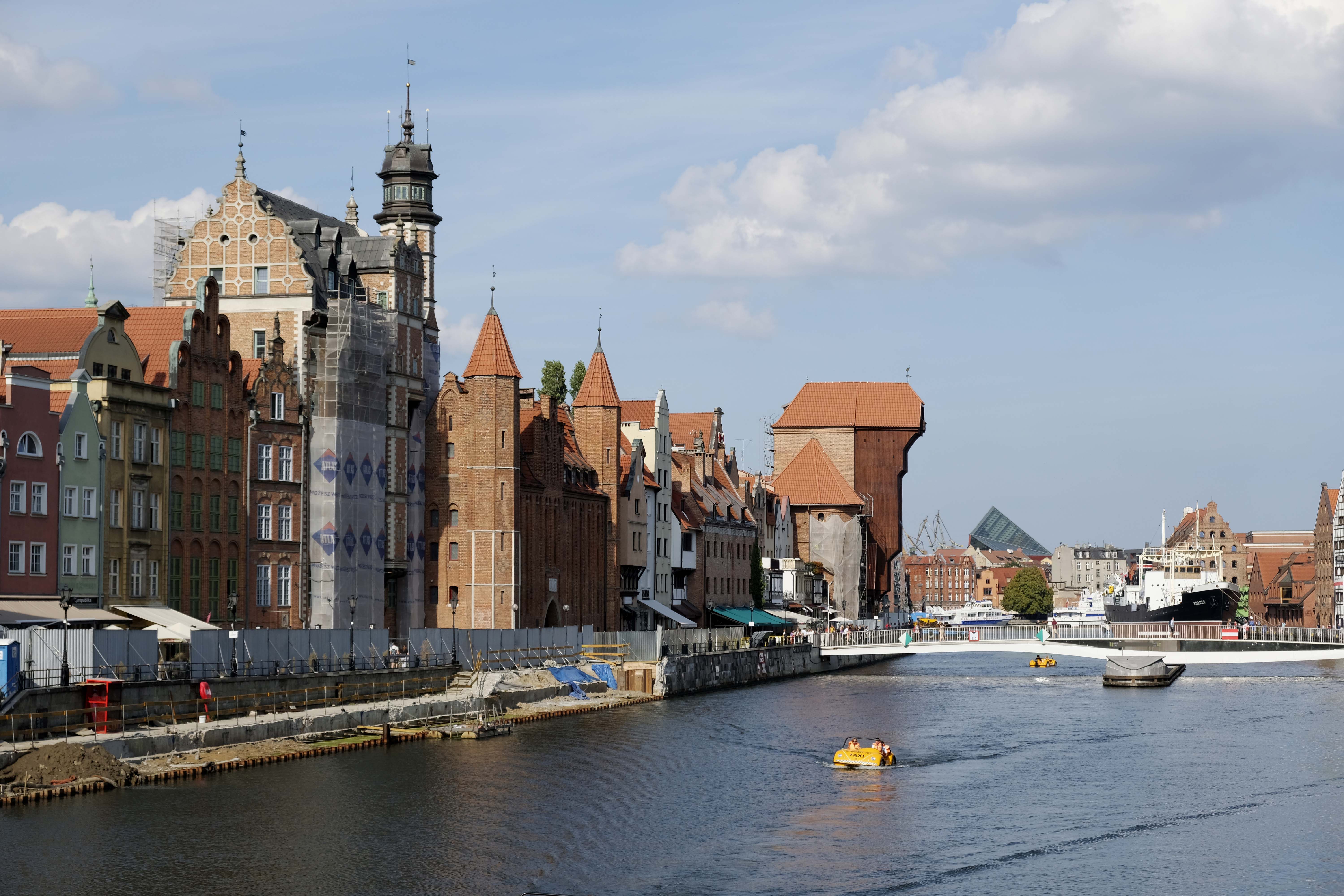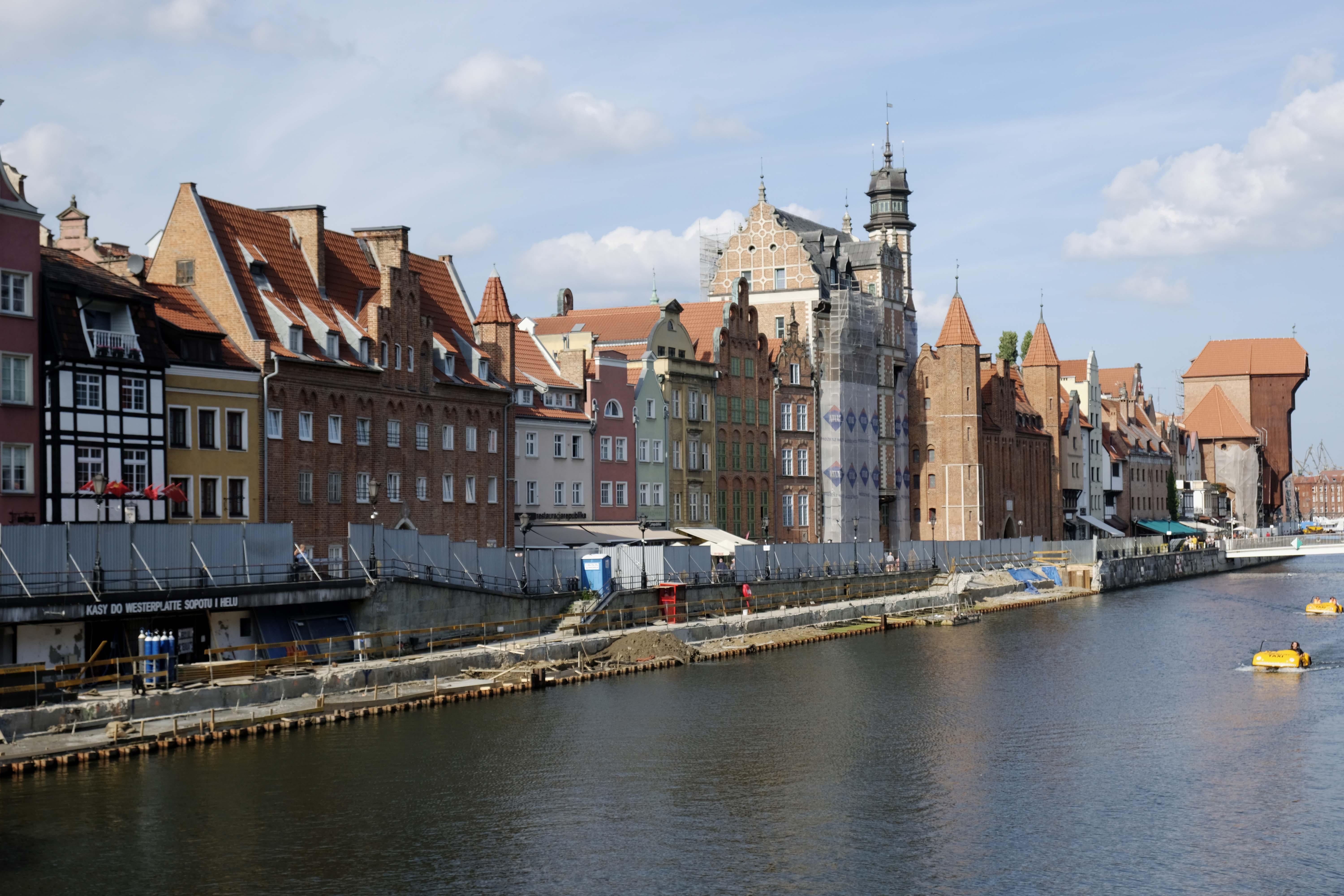 Entlang des Ufers des durch die Stadt fliessenden Flusses Motlawa laden zahlreiche Cafés, Restaurants und Pilsbars ein. Hier ist auch das Wahrzeichen Danzigs, das Krantor, zu finden.
