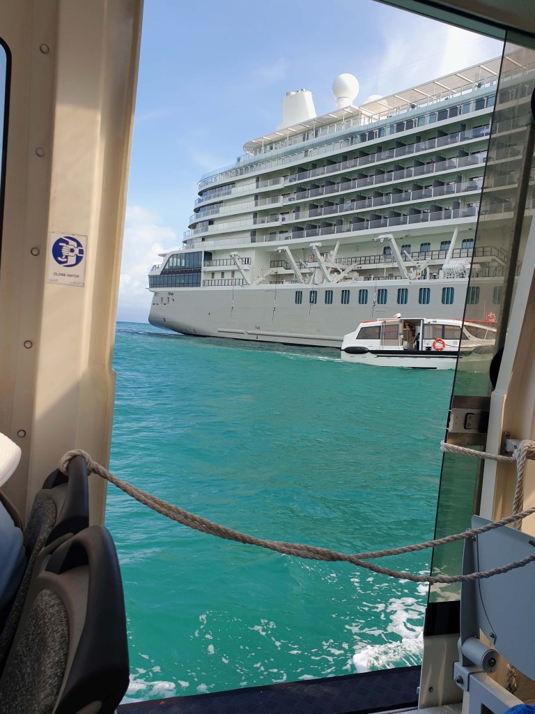 Unser Schiff liegt weit draußen und wir tendern zum wunderschönen Yachthafen mit der Waterfront voller Märkte, Cafés und exklusiver Boutiquen sowie einem kleinen Naturkunde Museum.